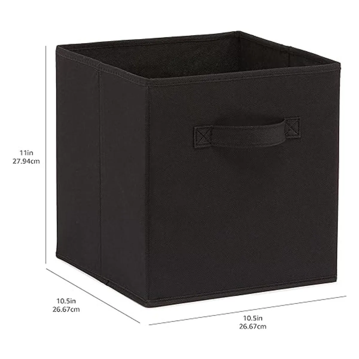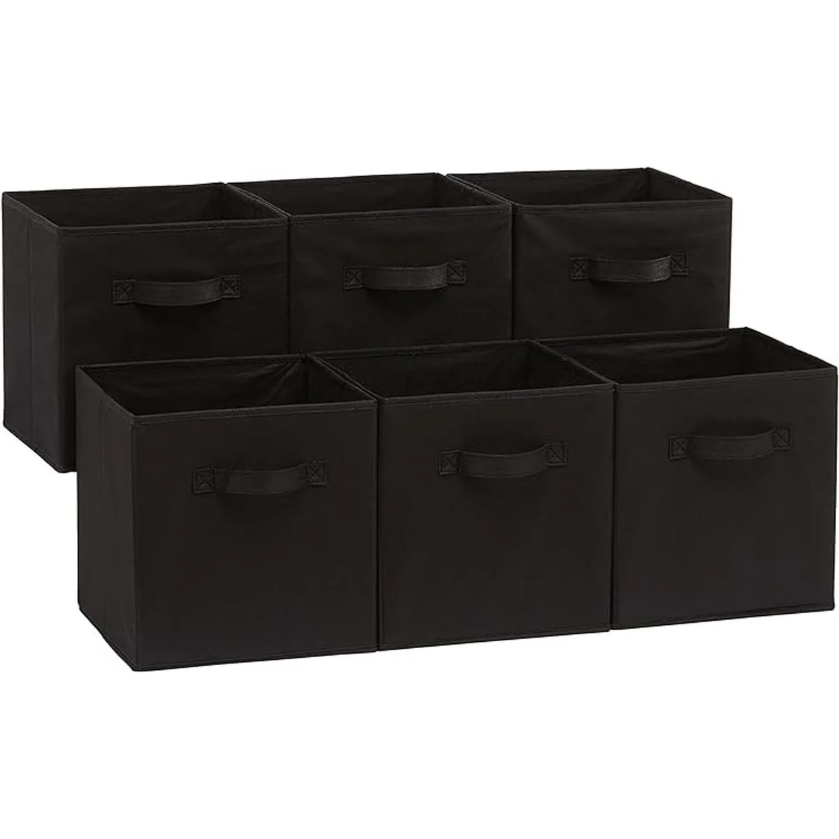 Organizador de cubos de almacenamiento de tela plegable con asas, color negro, paquete de 6