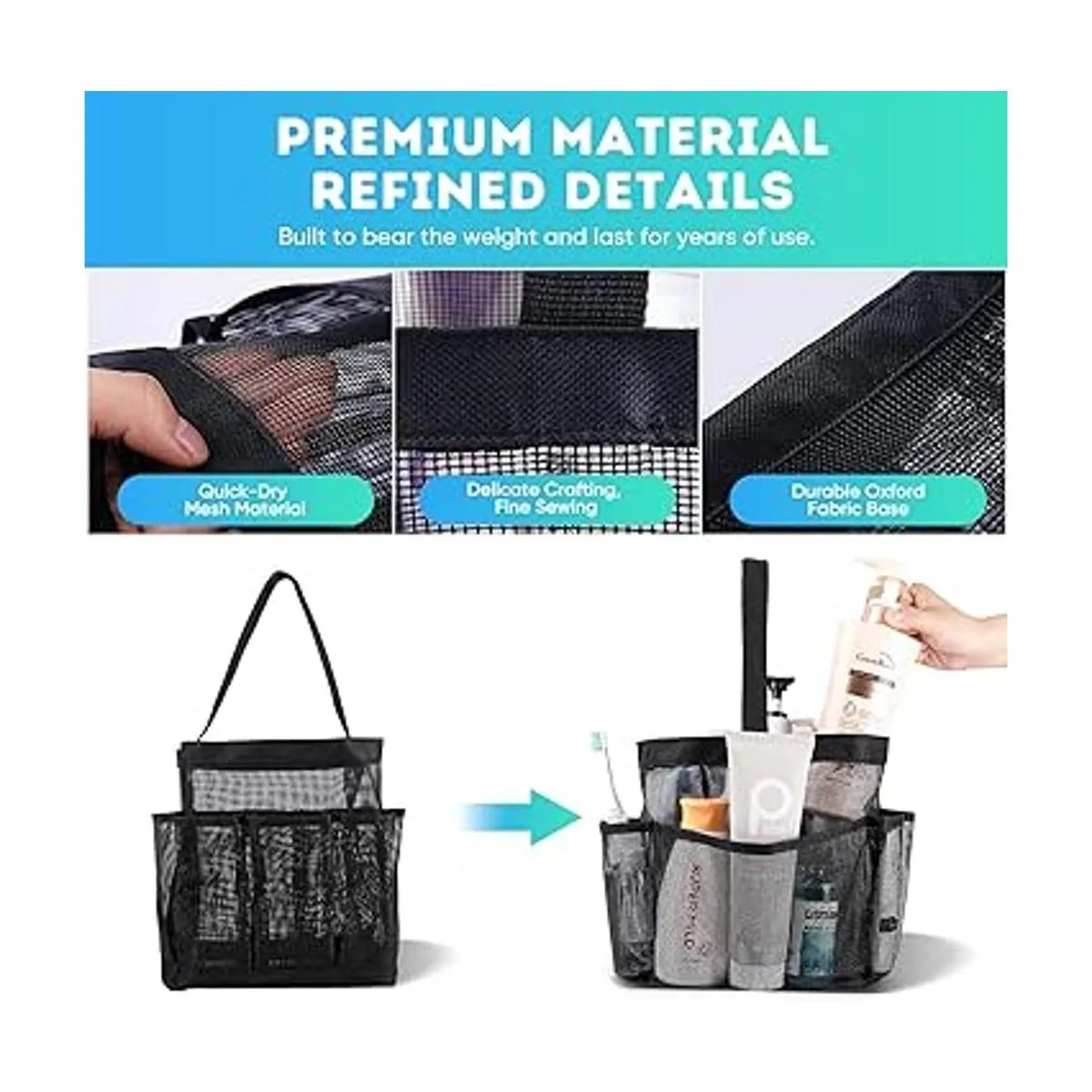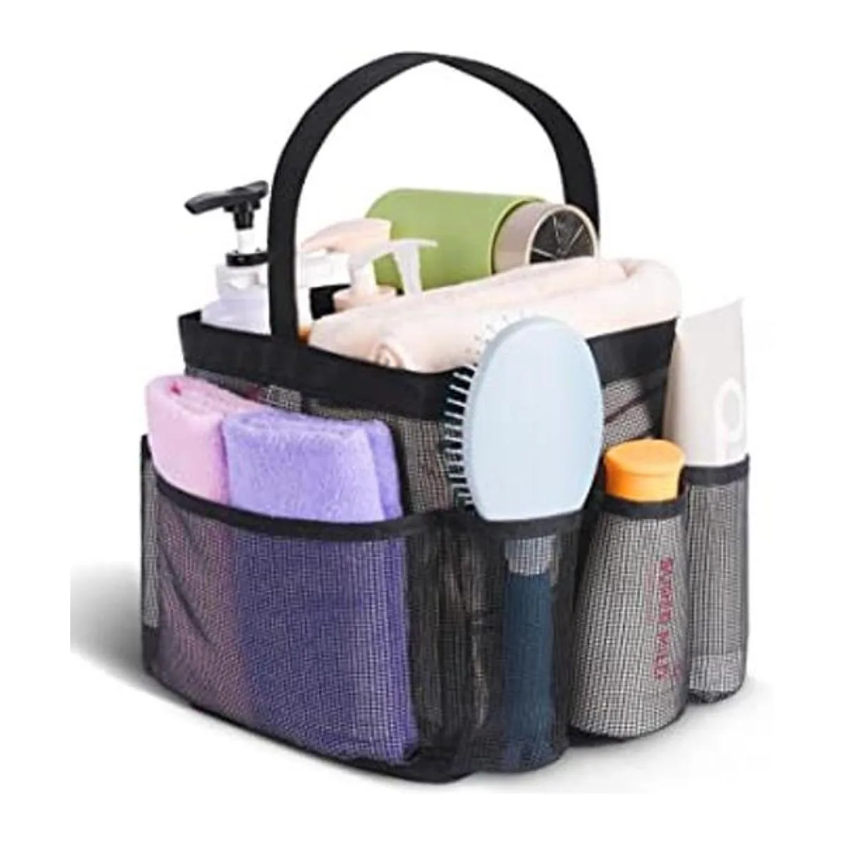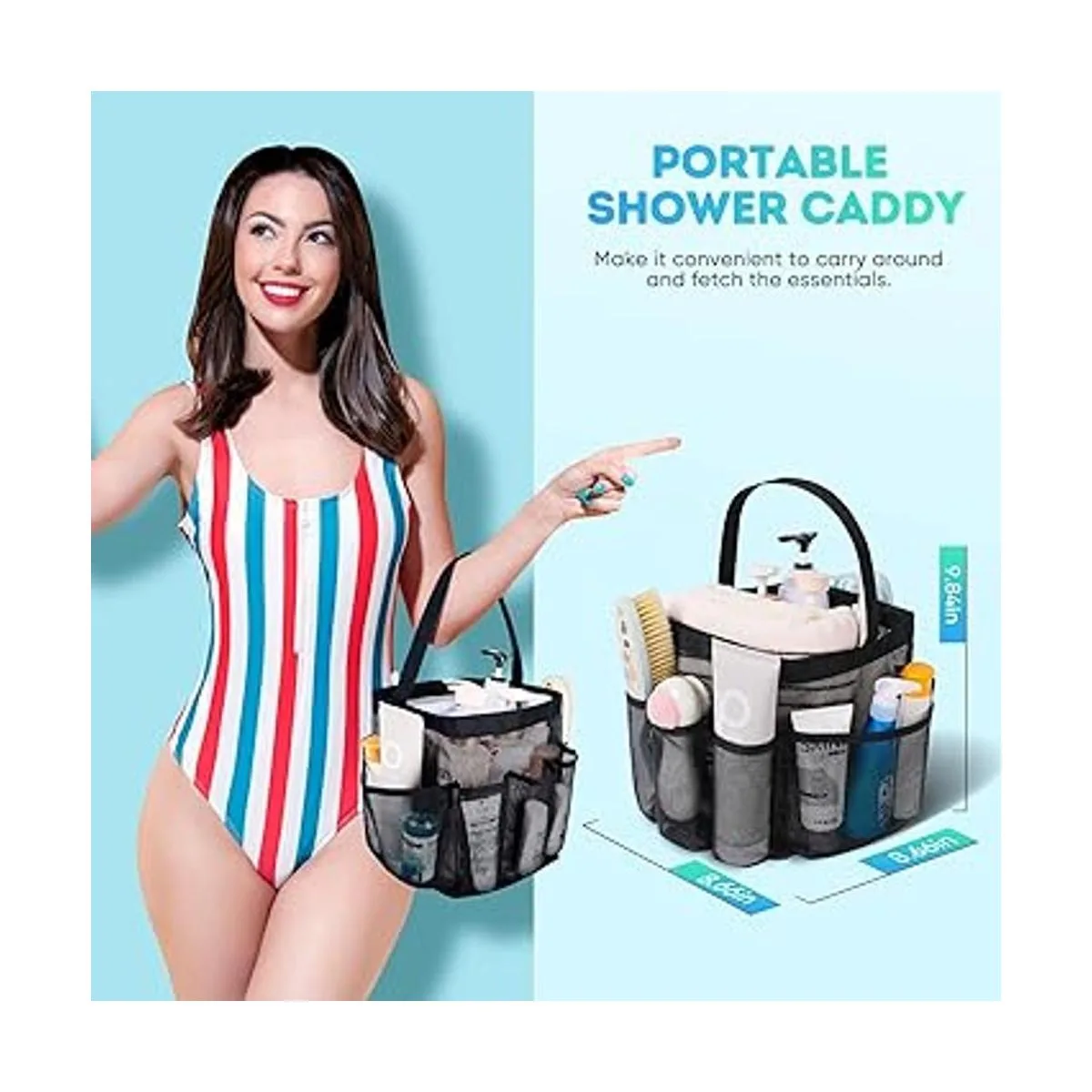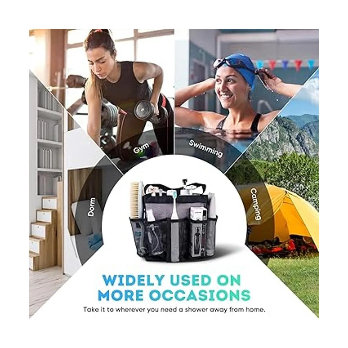 Organizador de ducha de malla portátil para dormitorio universitario, artículos esenciales de habitación, organizador de ducha portátil con 8 bolsillos de gran capacidad, bolsa de ducha para playa, natación, gimnasio