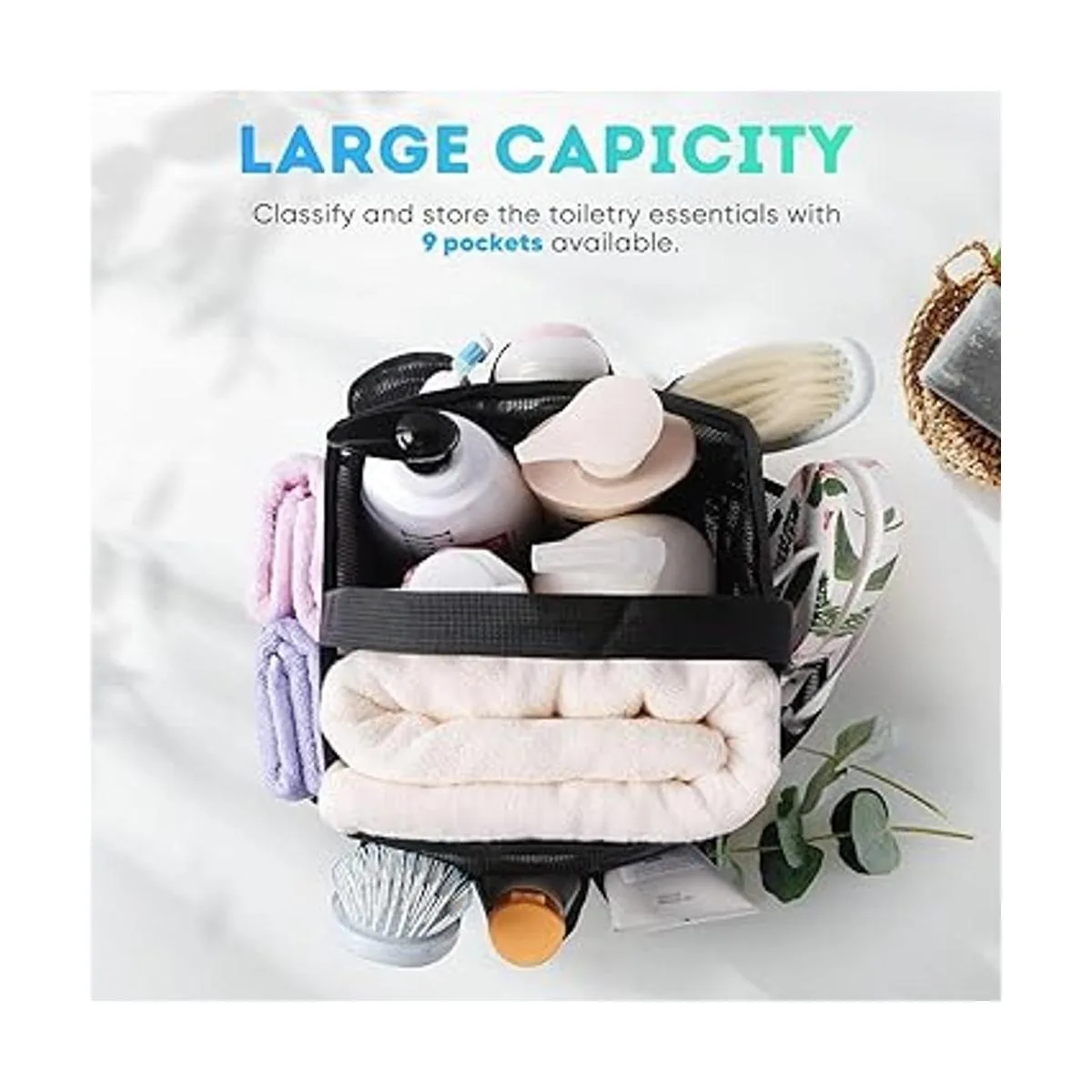 Secado rápido, fácil de limpiar: obtén acceso rápidamente al artículo necesario almacenado en el organizador de ducha portátil. La tela de malla transpirable es la elección perfecta para bolsas de ducha, que drenan el agua fácilmente y se secan rápidamente. Lavar y secar la bolsa de ducha en cualquier lugar seco y ventilado para prolongar la vida útil.
