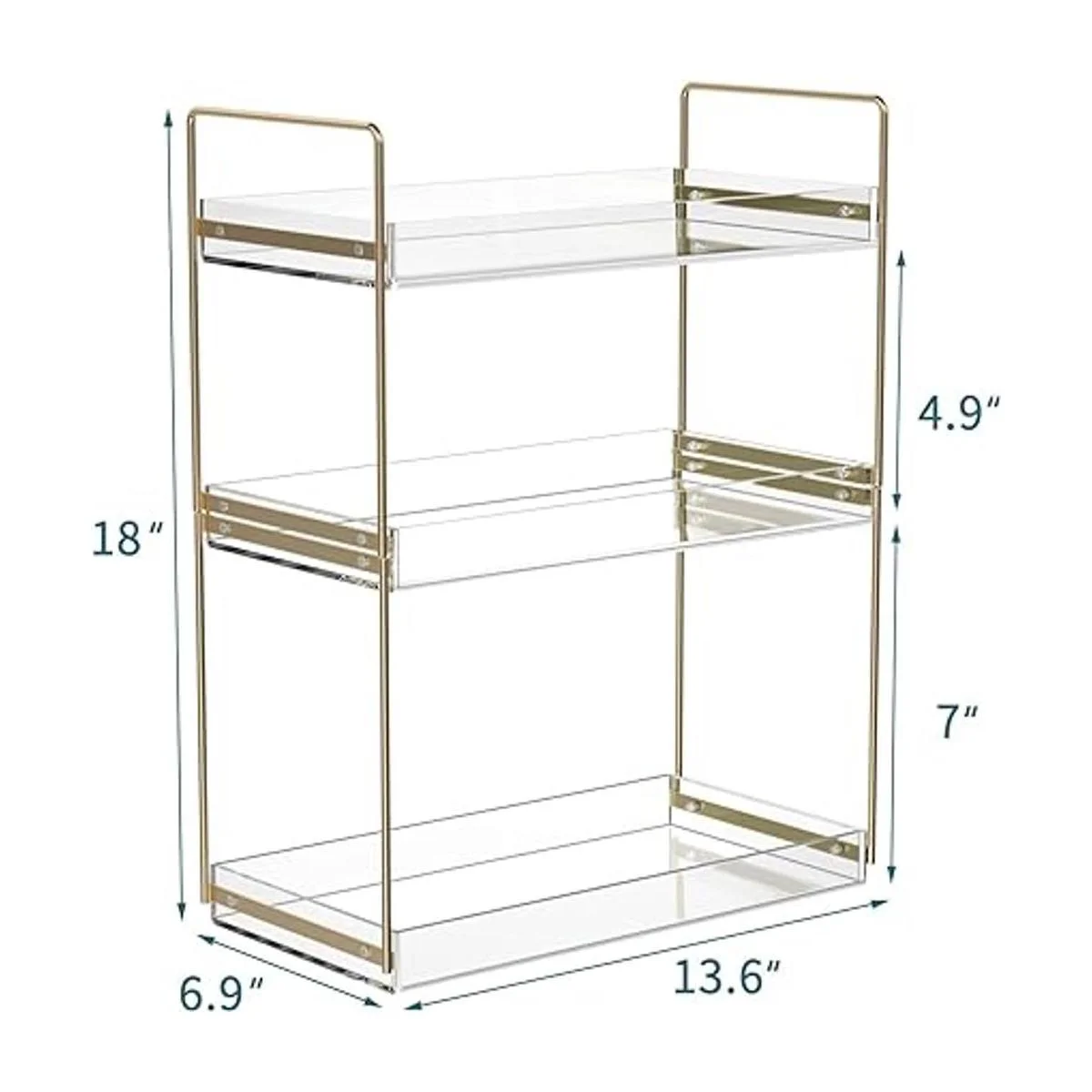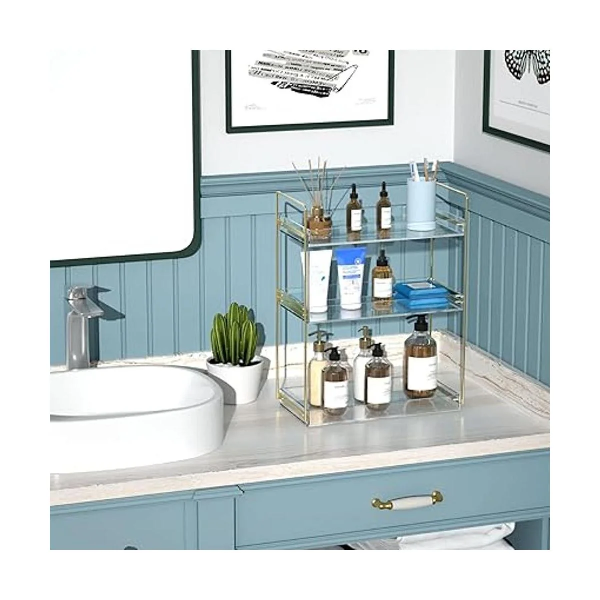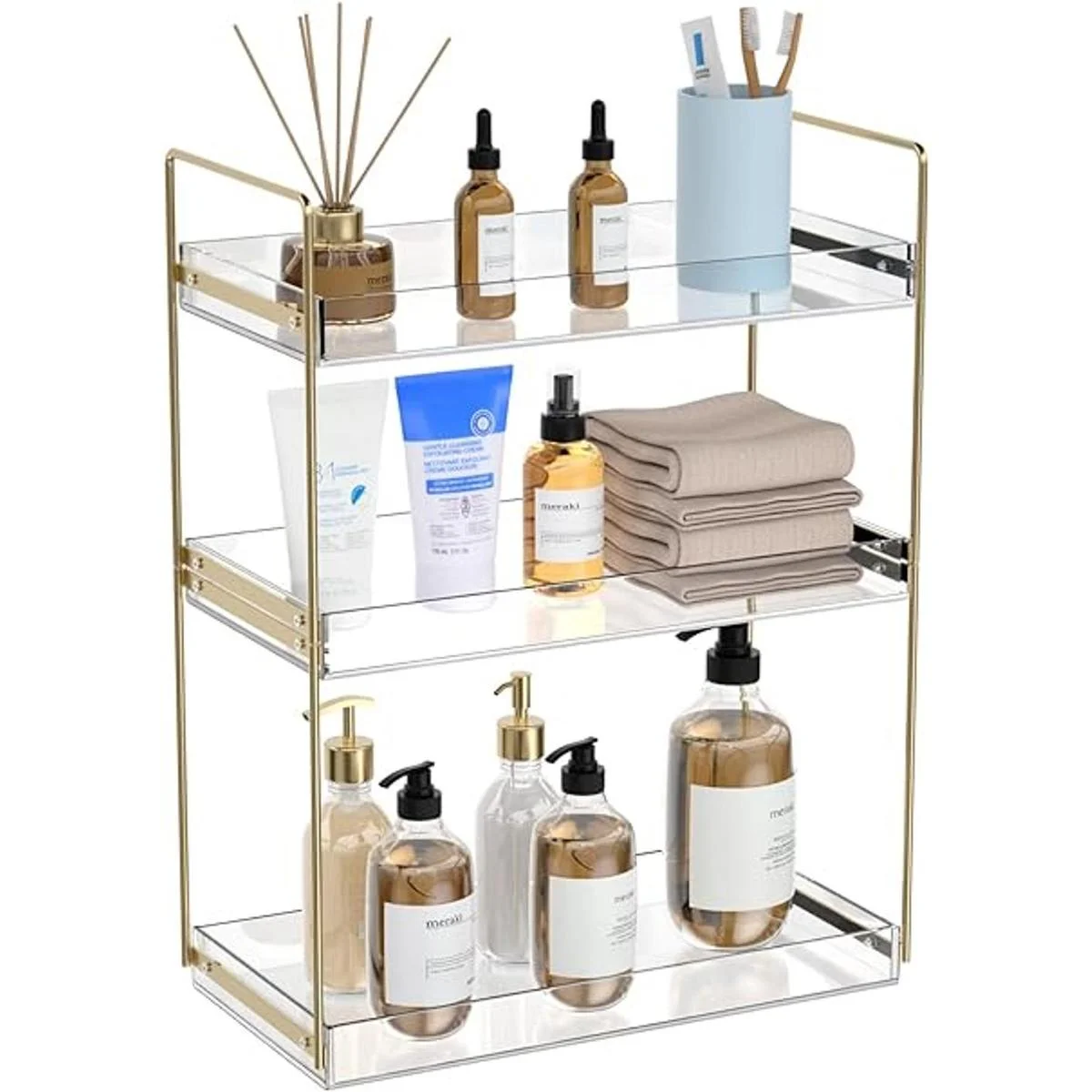 Organizador de encimera de baño, bandeja acrílica de 3 niveles para mostrador de tocador, organizador de cuidado de la piel, estante de pie para debajo del fregadero, soporte de almacenamiento para el hogar para loción, maquillaje, cosméticos, perfume, especias, dorado