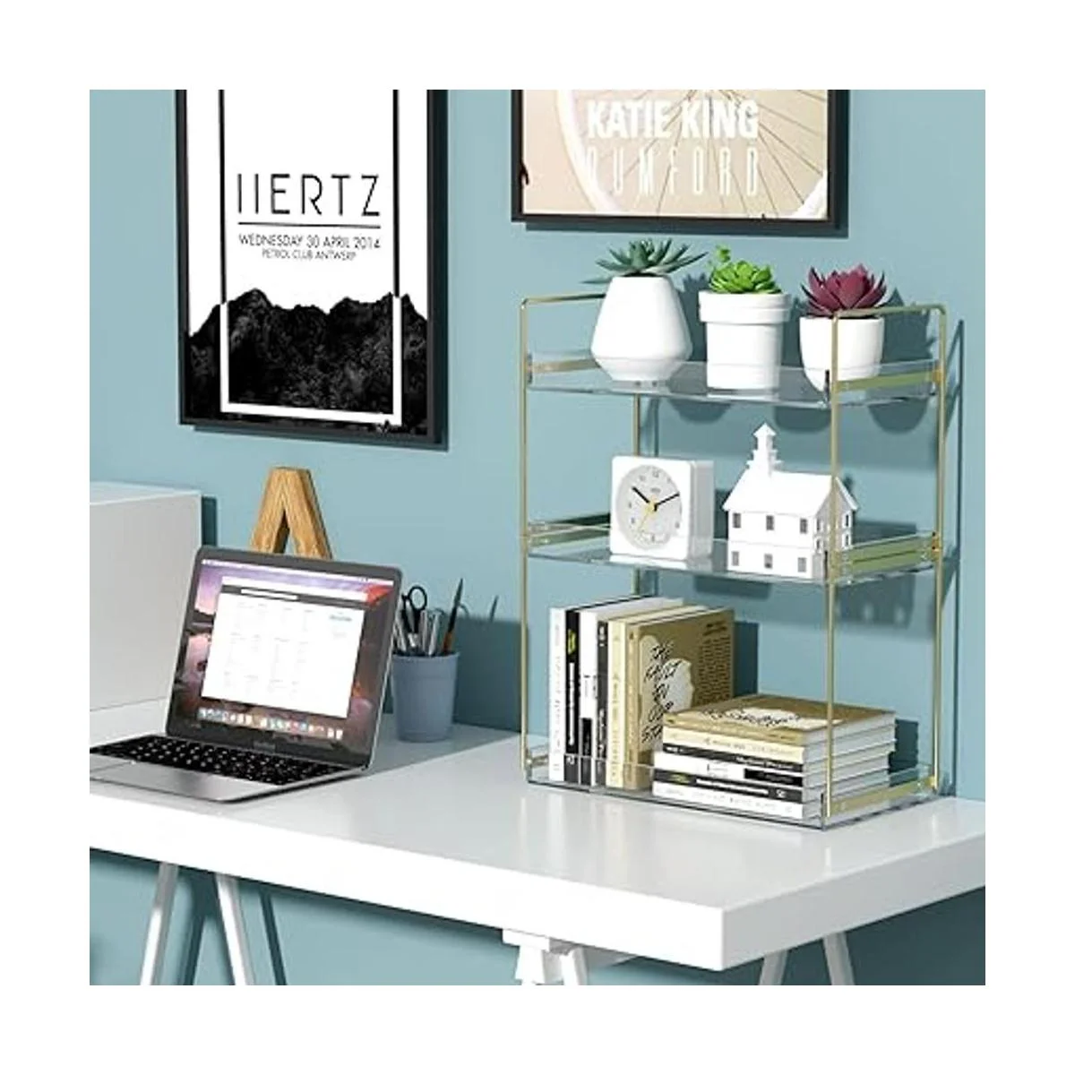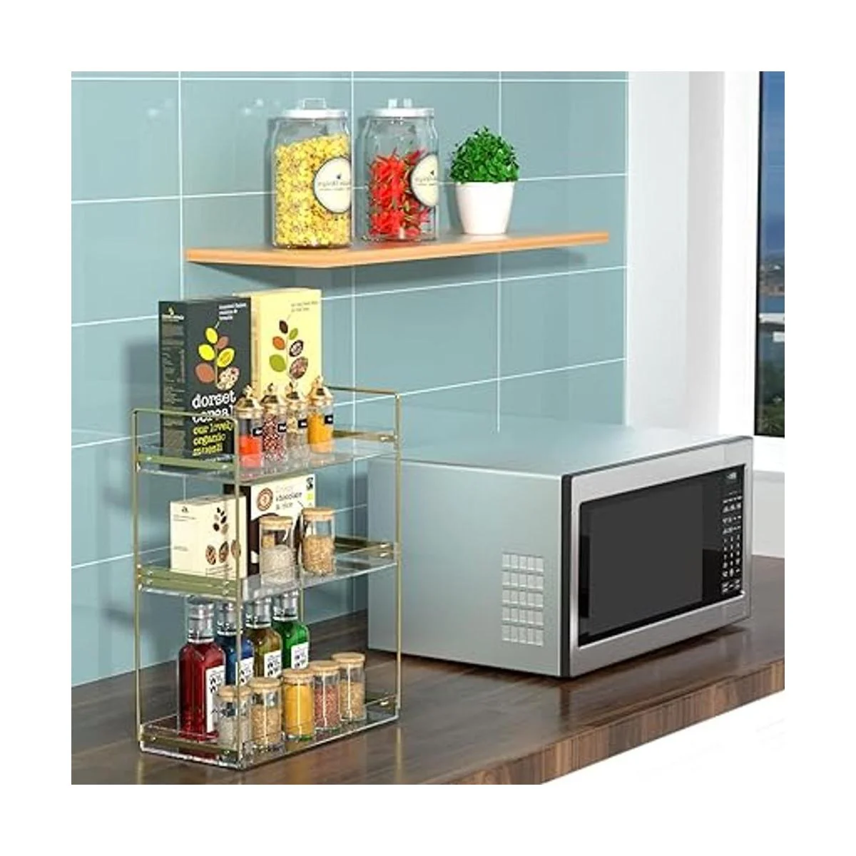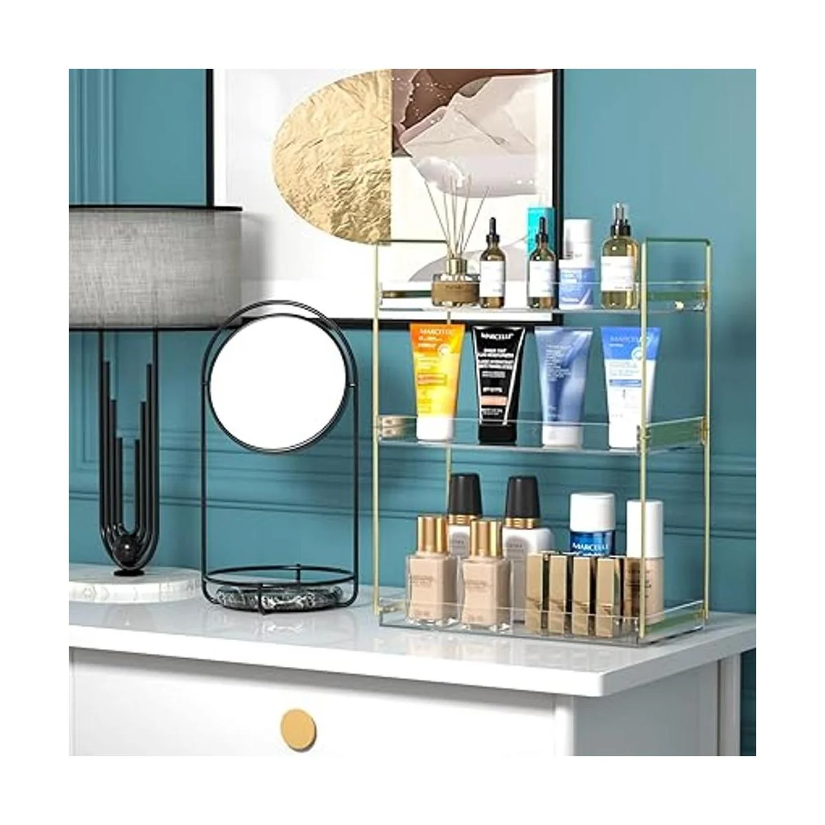 Organizador de encimera de baño, bandeja acrílica de 3 niveles para mostrador de tocador, organizador de cuidado de la piel, estante de pie para debajo del fregadero, soporte de almacenamiento para el hogar para loción, maquillaje, cosméticos, perfume, especias, dorado