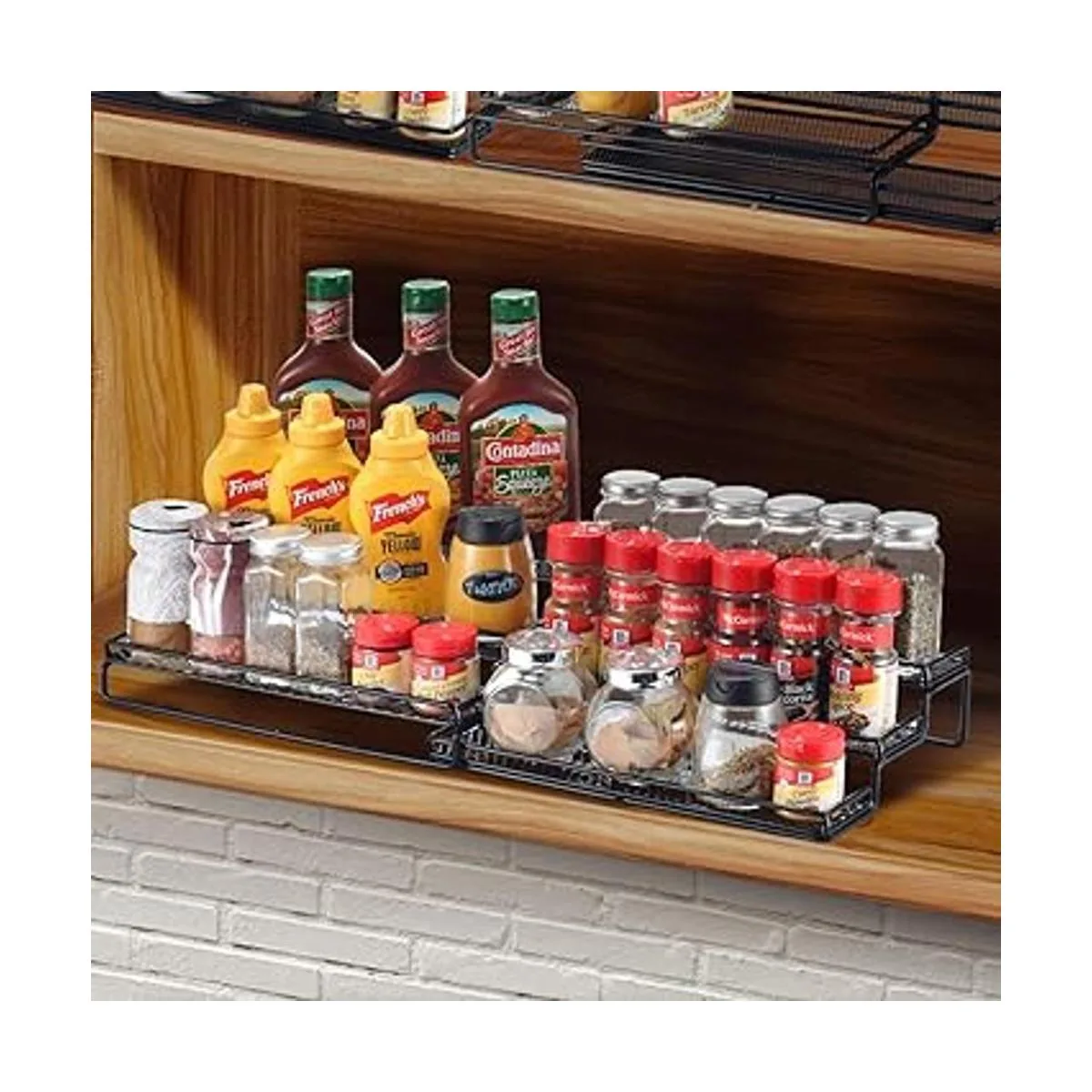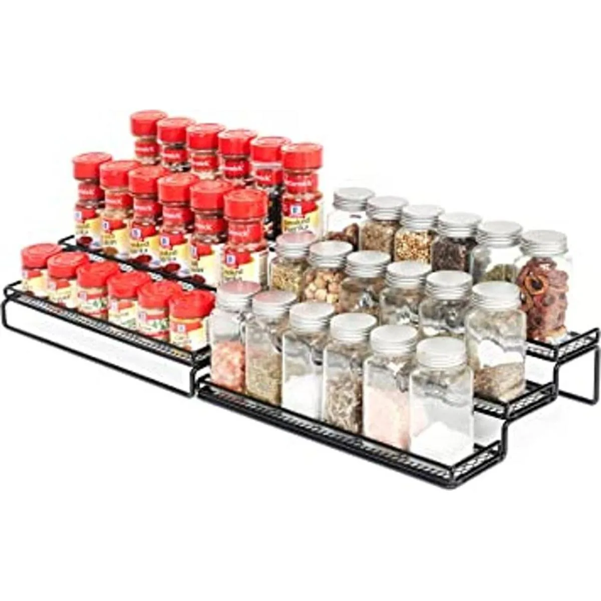 Los estantes expandibles pueden contener 36 tarros de especias, lo que te da una gran asignación de espacio de armario o despensa.