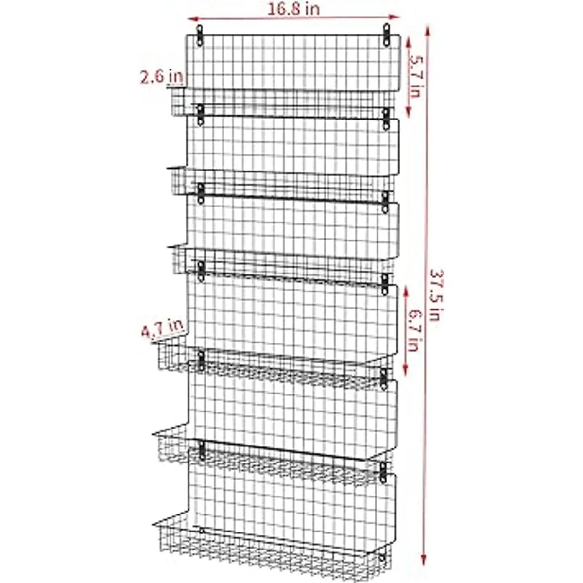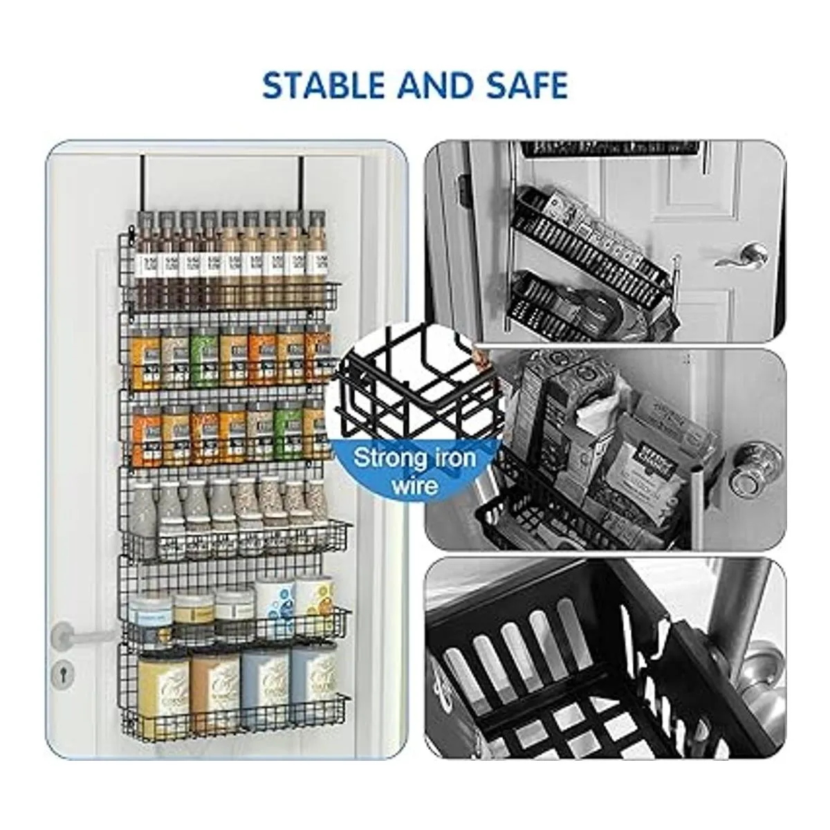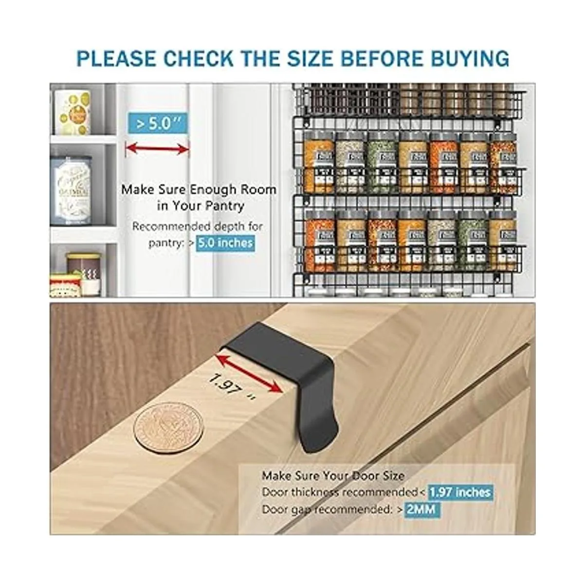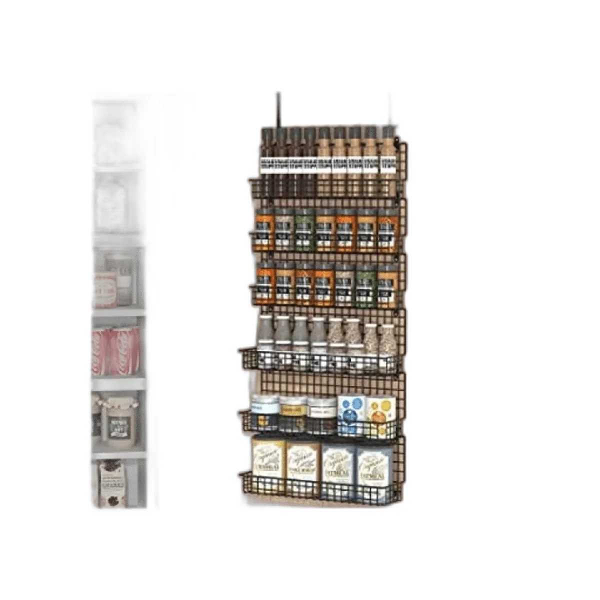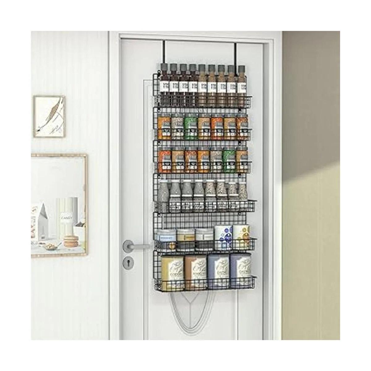 Organizador de especias de 6 niveles con gancho de puerta, montado en la pared y sobre la puerta, estantes de especias para gabinete de puerta de despensa de cocina, dos tamaños, gran capacidad, negro