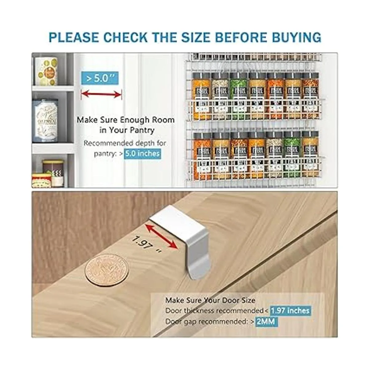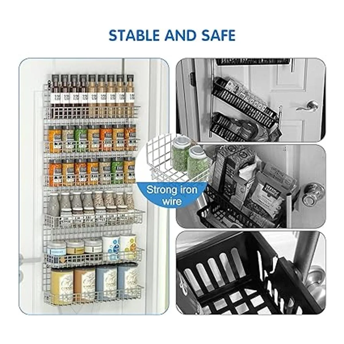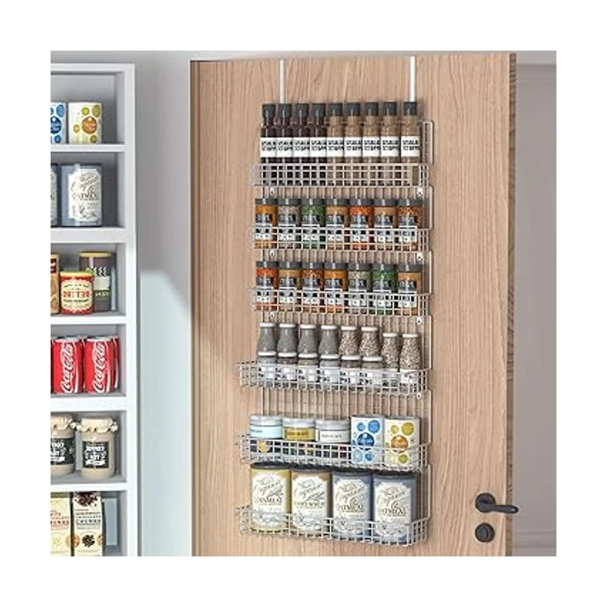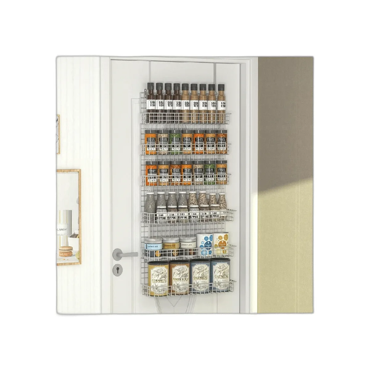 Organizador de especias de 6 niveles montado en la pared y sobre la puerta, para cocina, puerta de despensa, baño, dos tamaños, gran capacidad, plateado