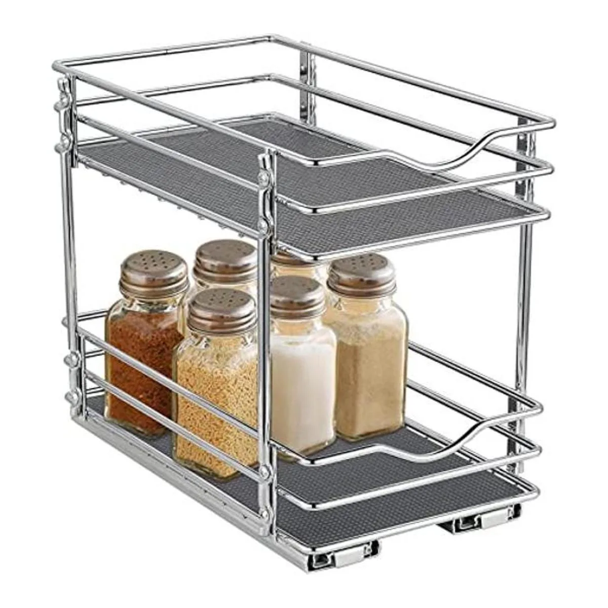 Estante de especias extraíble para armarios: el deslizamiento de rodamiento de bolas de tres secciones garantiza un deslizamiento suave. Las diapositivas totalmente extendidas te dan un acceso fácil y completo a todas las especias en los armarios de cocina superiores.
