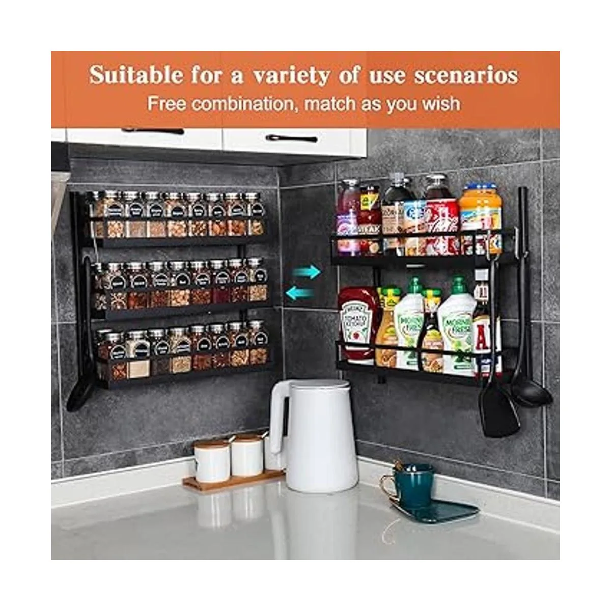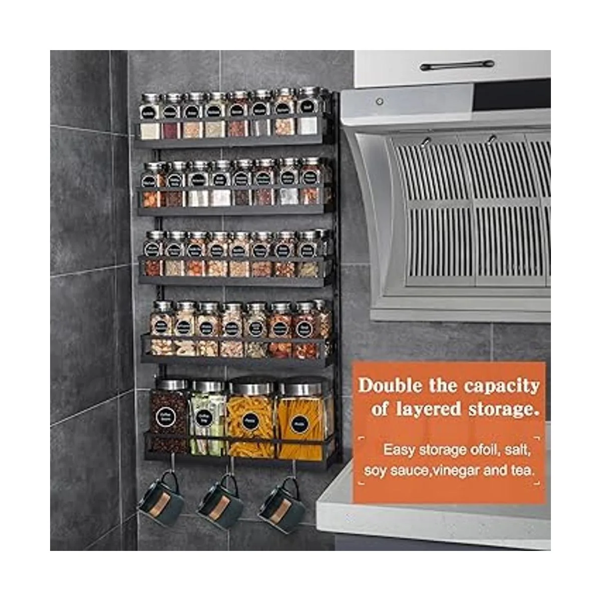 Organizador de especias Xcosrack para colocar en la pared, con 5 niveles de altura, ajustable, para colgar especias, para puerta de gabinete de cocina, despensa, doble uso, con ganchos