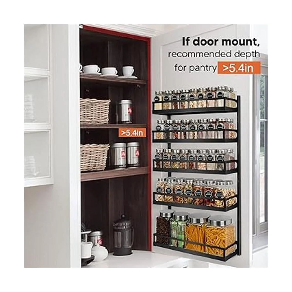 Diseño de doble uso: este organizador de especias no solo se utiliza como un solo estante de 5 niveles, sino como dos estantes separados de acuerdo a tus necesidades o tamaño de tu espacio. Colócalo en la pared o puerta o colócalo en el armario o despensa para mantener tu cocina más ordenada y ordenada.