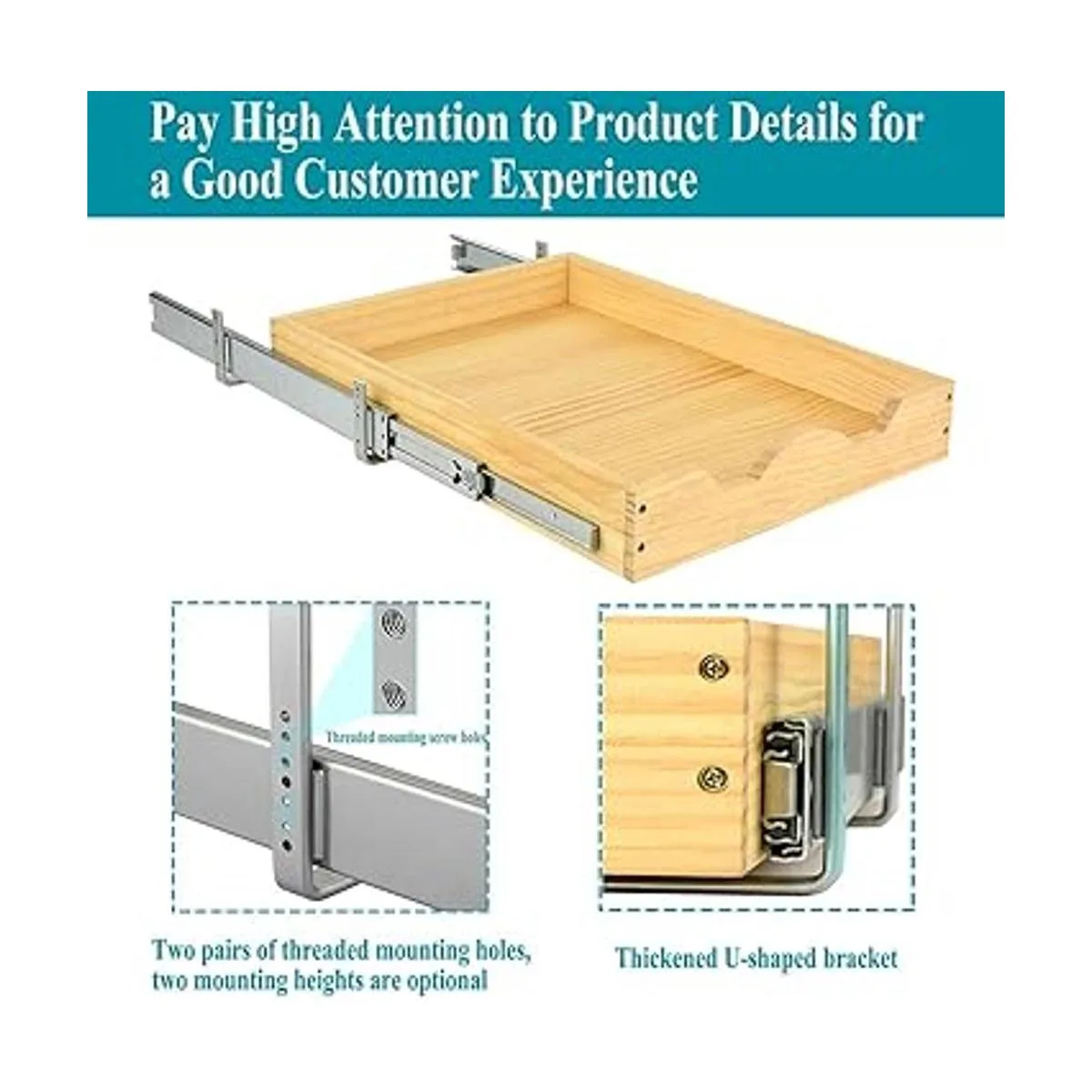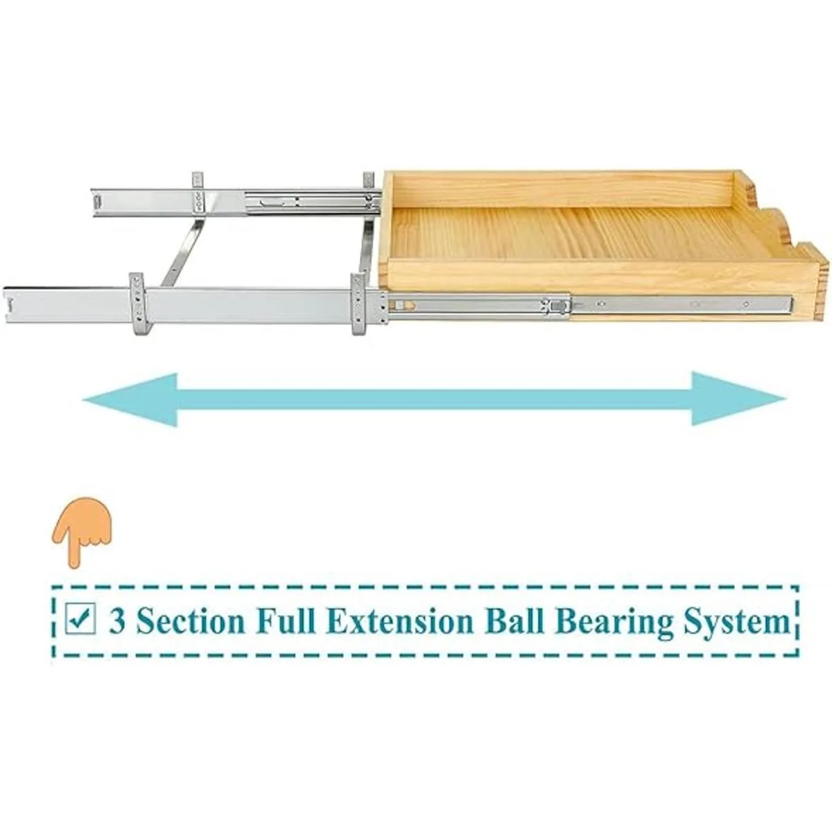 Fácil de instalar: viene con manual de instalación paso a paso y todos los accesorios necesarios para una instalación rápida y fácil. Tanto el cajón superior como el inferior de madera se deslizan completamente de forma independiente en deslizadores de rodamientos de bolas de precisión para que puedas llegar a tus artículos fácil y rápidamente.