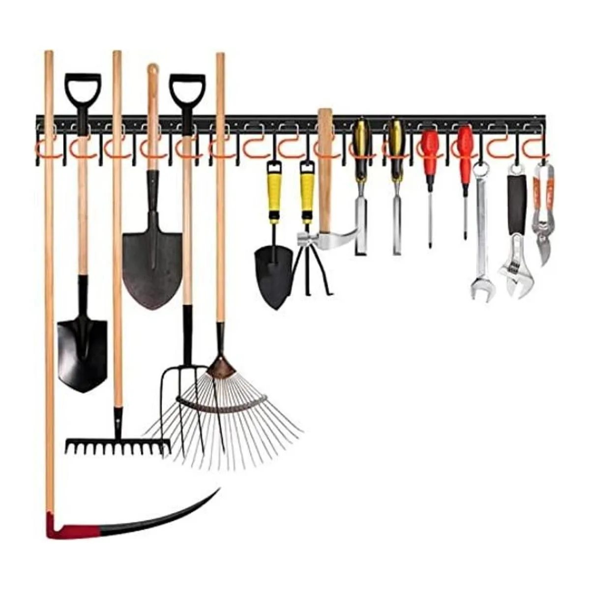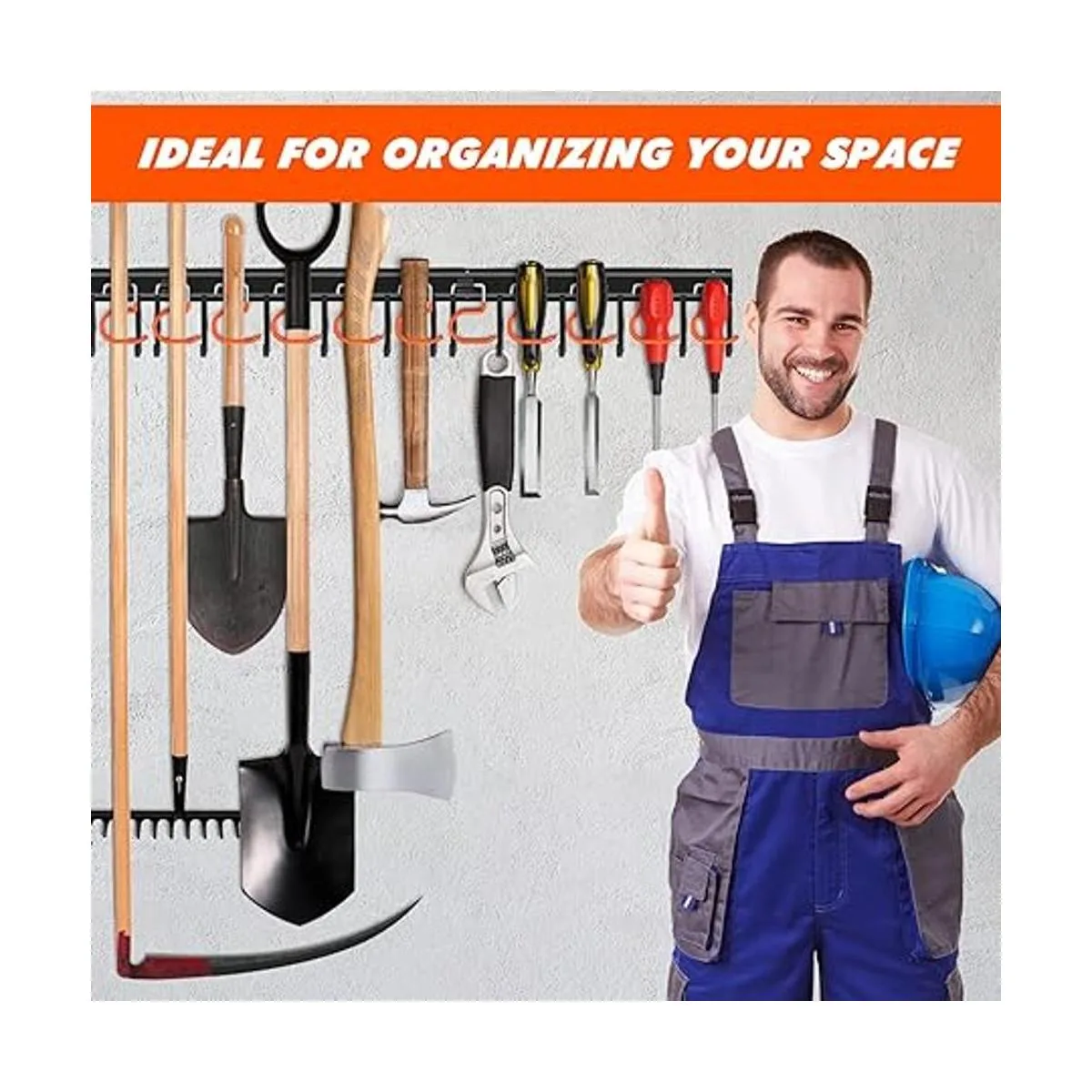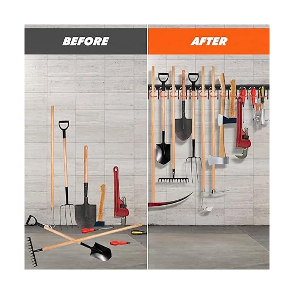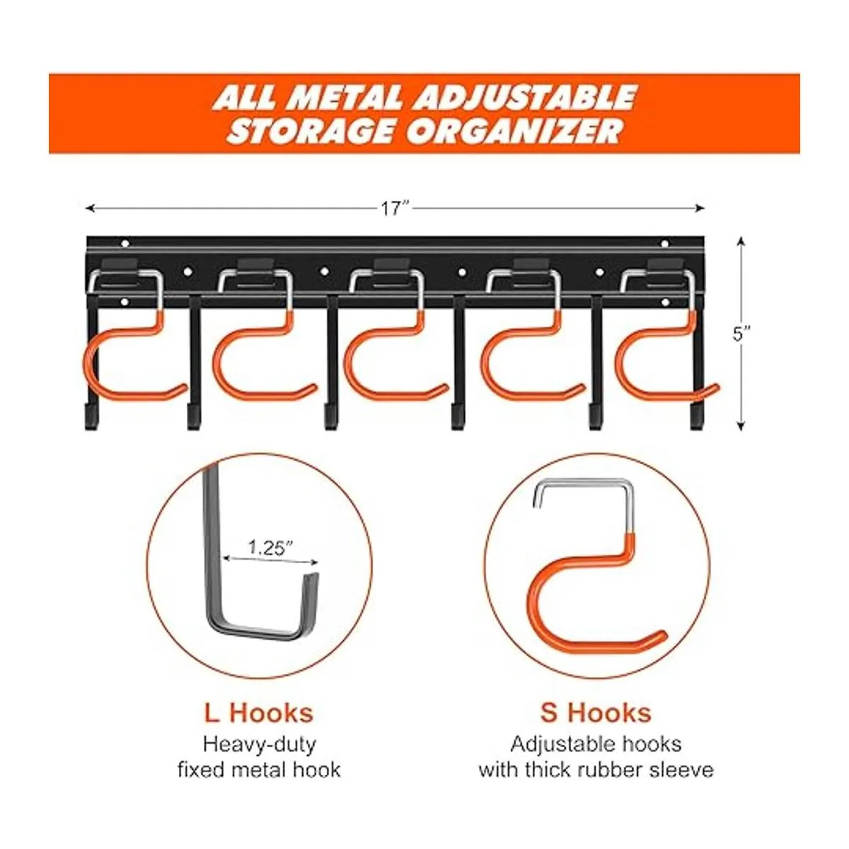Organizador de herramientas de jardín de metal de 51 pulgadas, organizador de herramientas de garaje ajustable para montaje en pared, organizador de garaje y almacenamiento con ganchos resistentes para herramientas para pared de garaje, cobertizo, jardín