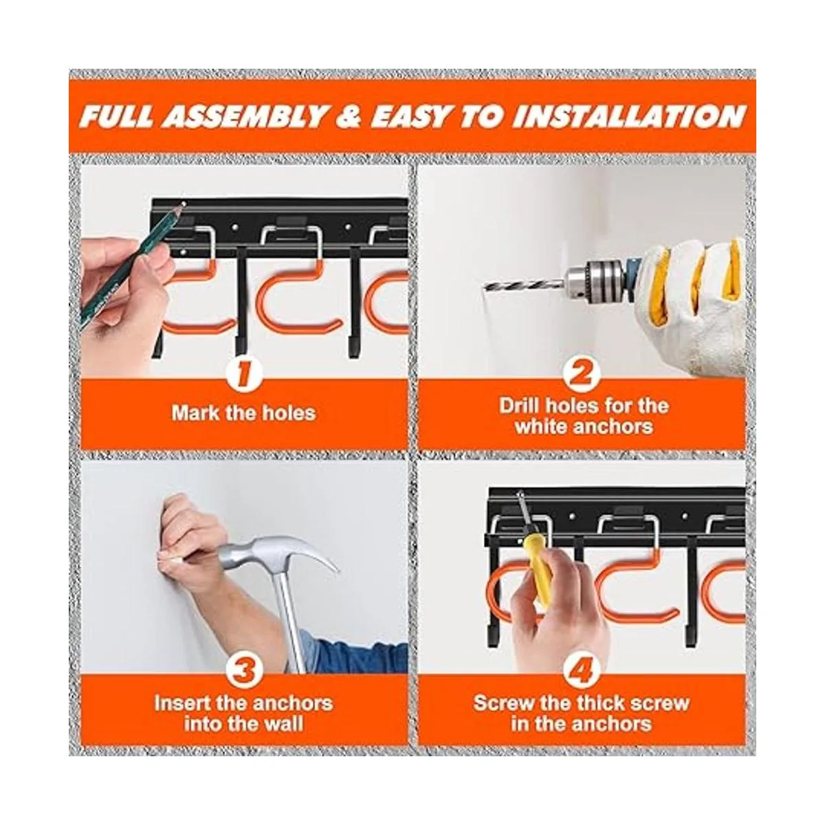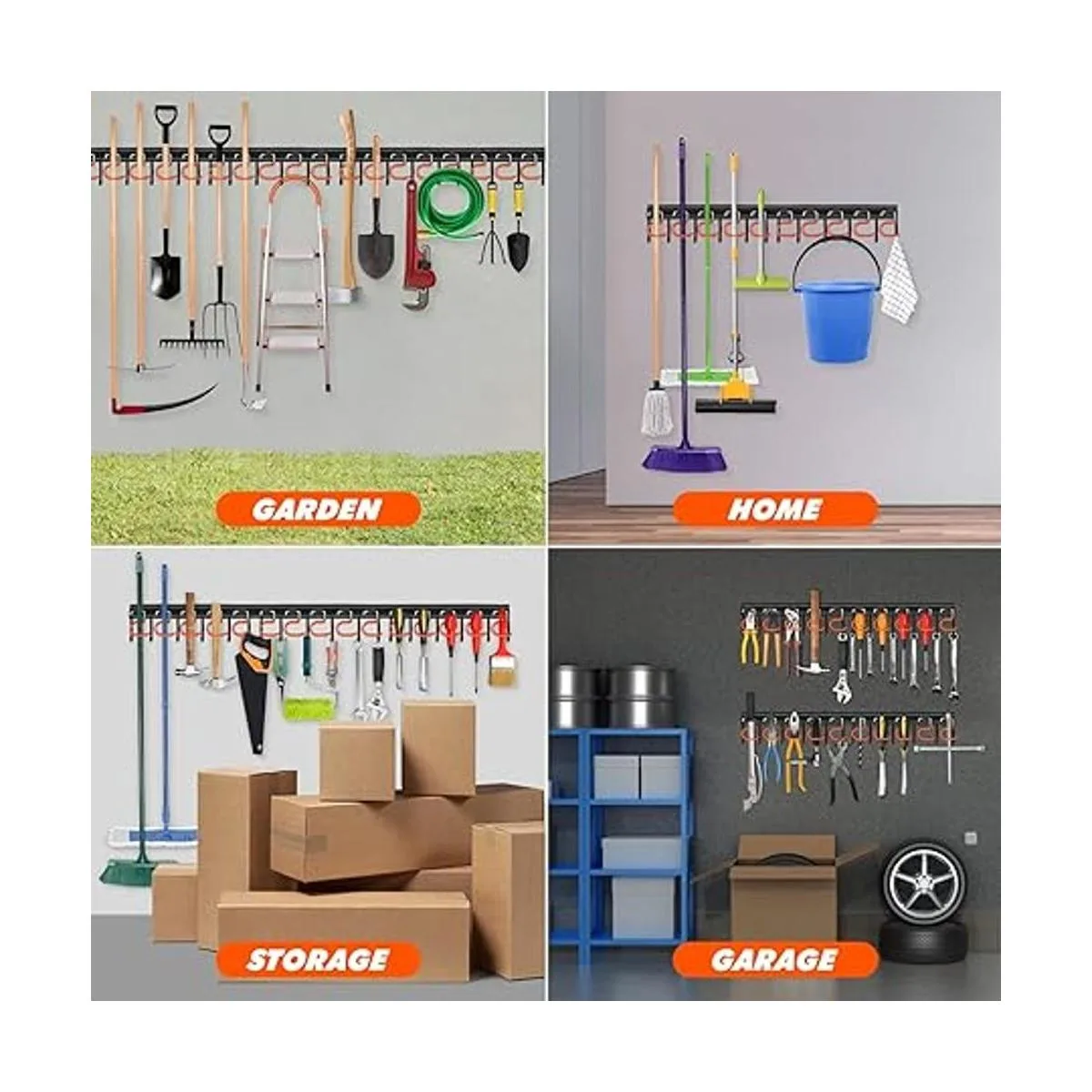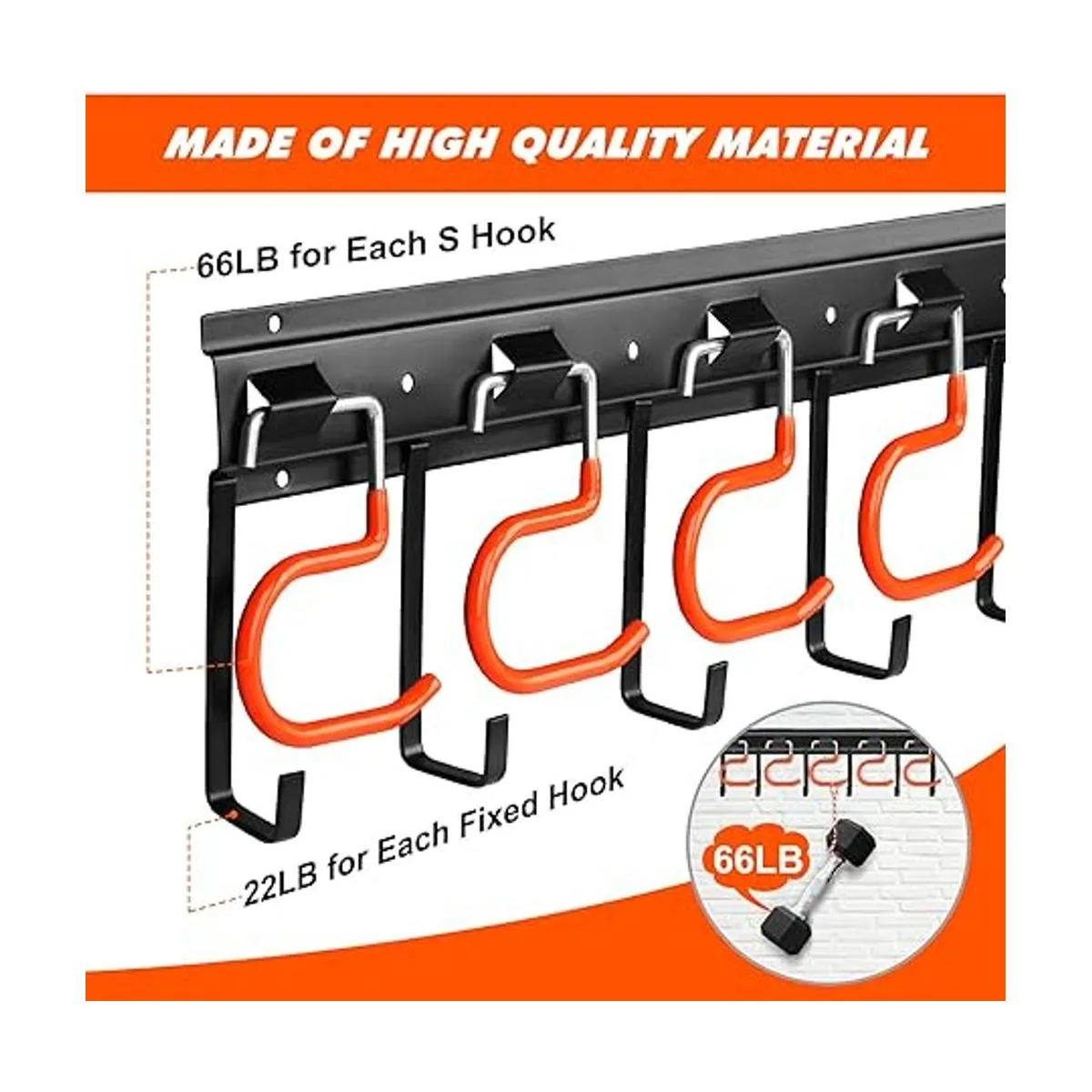 Montaje libre: el soporte de pared organizador de herramientas de garaje que obtienes será un cuerpo completo con ganchos ya montados, no necesitas pasar más tiempo montándolo, nuestro sistema de almacenamiento de garaje está compuesto por 3 soportes de herramientas de 17 pulgadas, puedes montarlo en la pared como ganchos de 17 a 51 pulgadas de largo de acuerdo a tus necesidades.