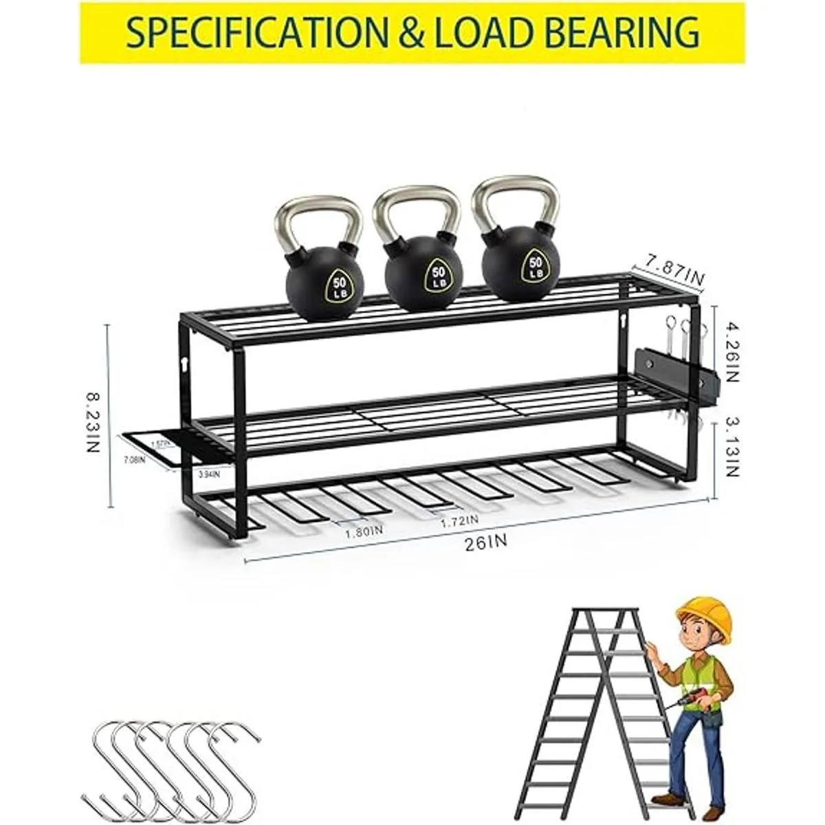 Experto en ahorro de espacio: el organizador de herramientas eléctricas montado en la pared es de 26 pulgadas de ancho, 8.2 pulgadas de alto y 7.8 pulgadas de profundidad. Puedes montar este estante de herramientas en paredes de garaje y tablero de clavijas, tus herramientas eléctricas de mano se pueden colocar en el nivel inferior y otras herramientas como estaciones de carga, baterías, cajas de herramientas, taladros, martillos, etc. Se puede colocar en el nivel superior, aprovecha al máximo el espacio de pared para mostrar y colocar tu almacenamiento de herramientas eléctricas y manuales.