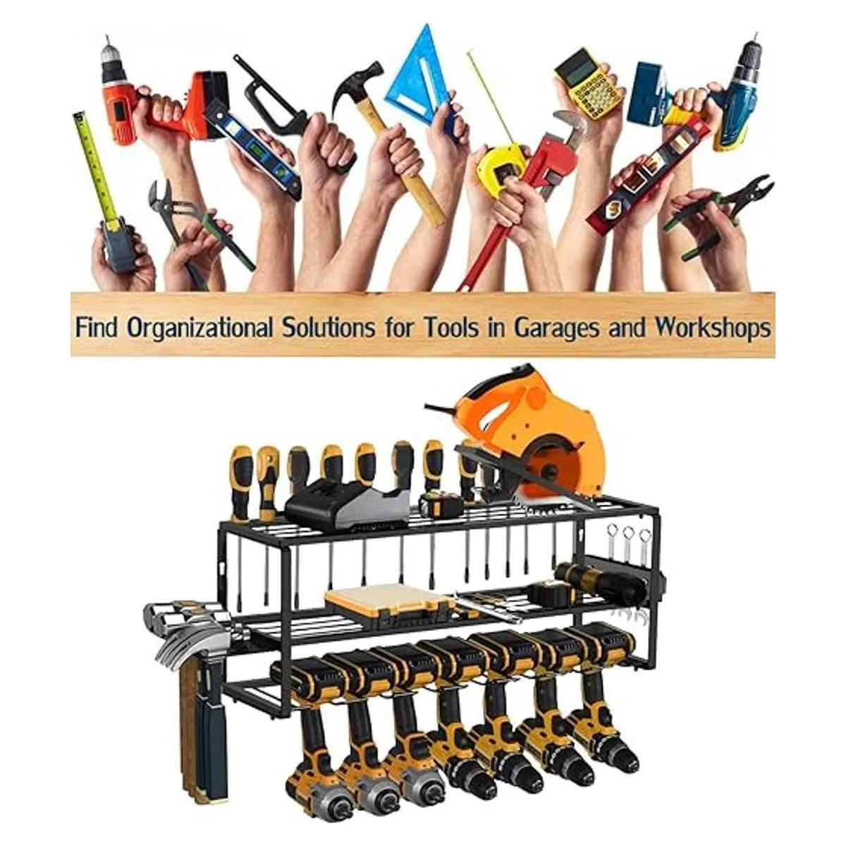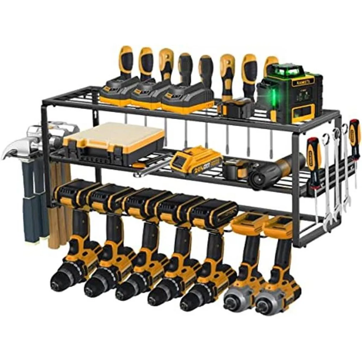 Organizador de herramientas eléctricas, organización de garaje con 7 soportes para taladros, organizadores de herramientas Spampur y estante de almacenamiento de herramientas eléctricas, soporte de pared, estante de herramientas de metal resistente, estante de almacenamiento de utilidad para taller inalámbrico