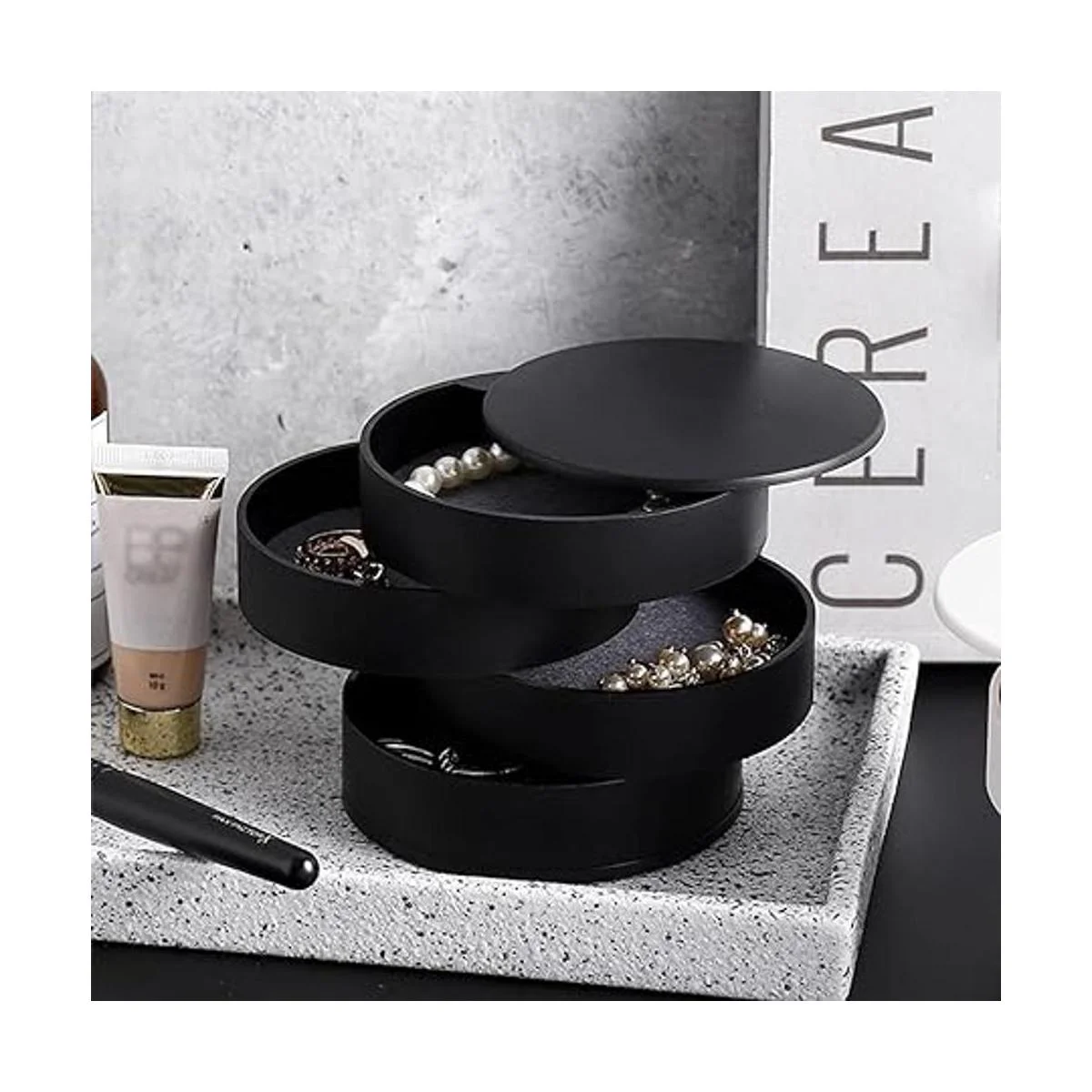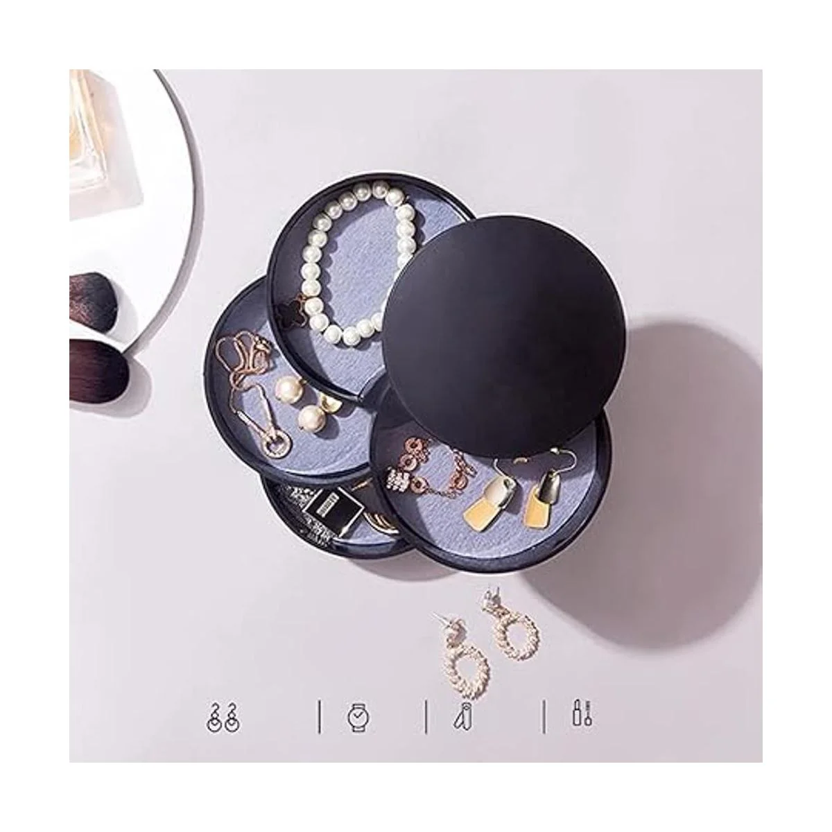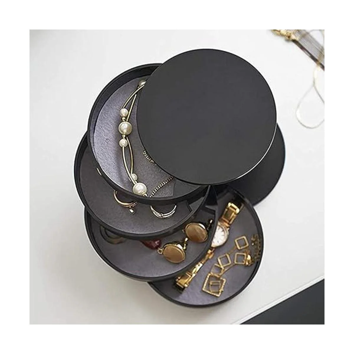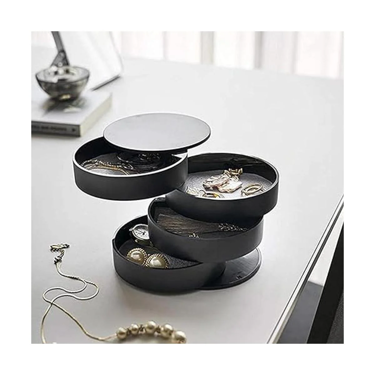 Organizador de joyería de 4 niveles Showcase Caja de almacenamiento giratoria para mujeres pulseras anillos pulseras pendientes negro