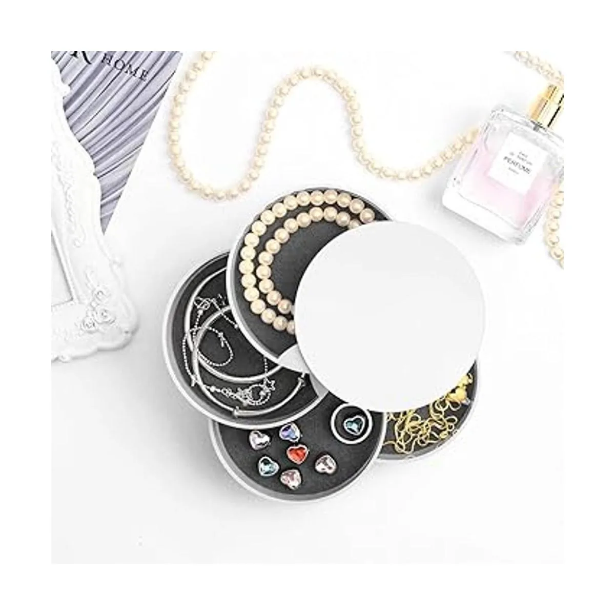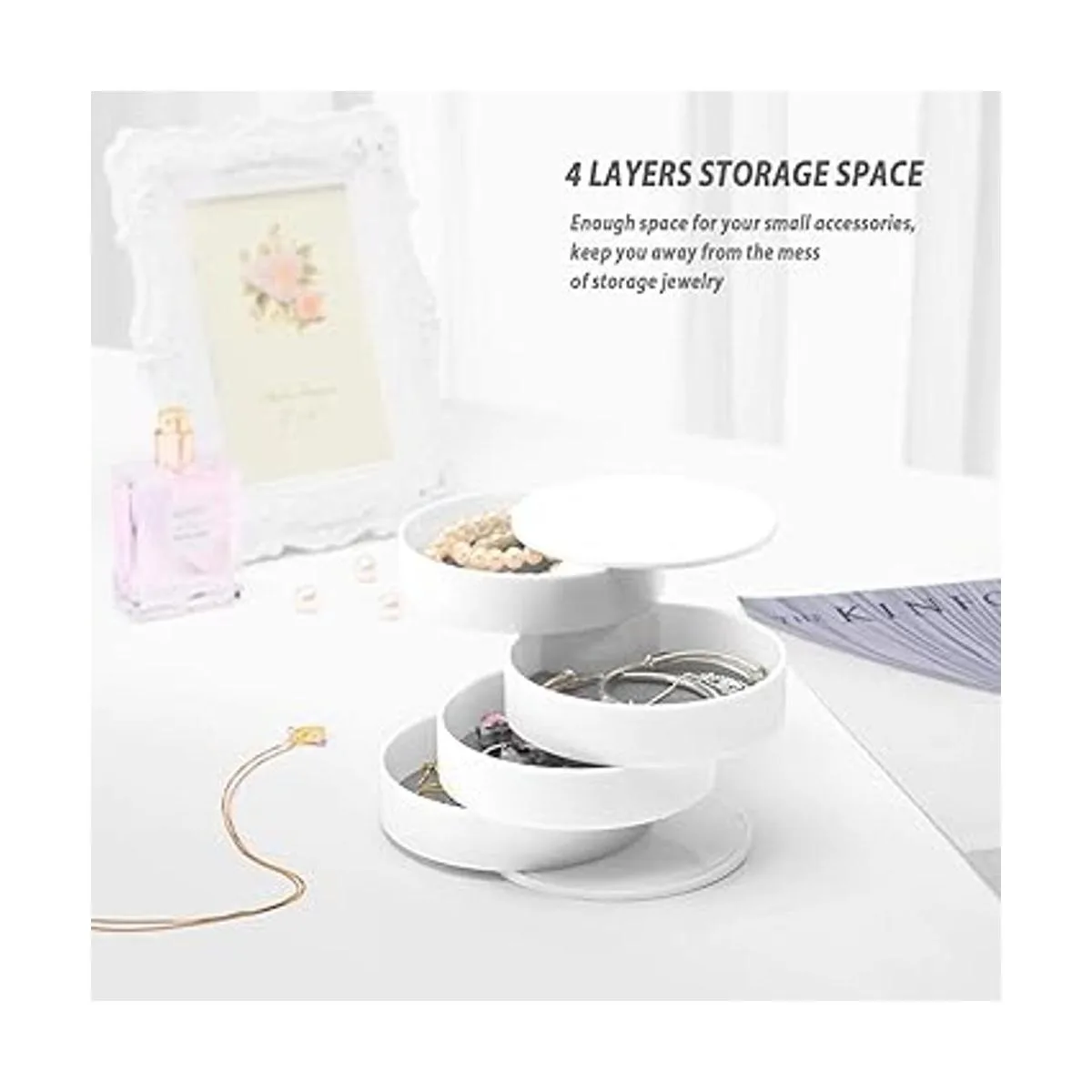 Organizador de joyería, pequeño soporte para aretes para mujer, caja de almacenamiento de joyas giratoria de 4 capas con tapa para anillos, pulseras