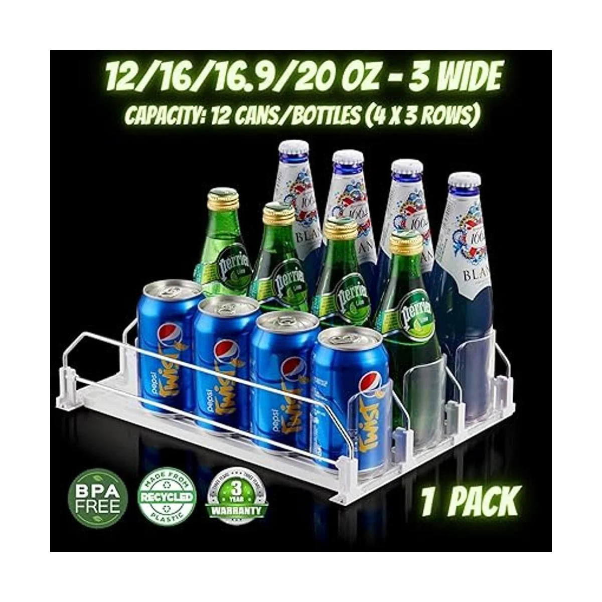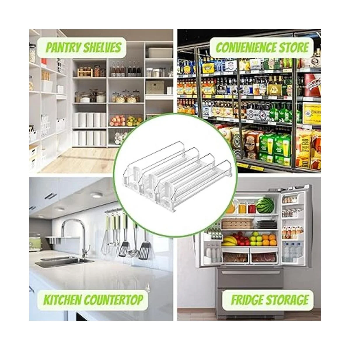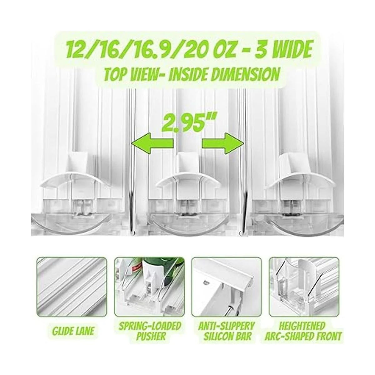 Mantiene las bebidas organizadas: el dispensador de latas de refresco es un dispositivo inteligente que llevará tus bebidas cerca para un fácil acceso en tu refrigerador. El diseño elegante se verá genial en cualquier refrigerador y puede acomodar tanto latas como botellas; adecuado para la mayoría de latas y botellas de tamaños estándar 12 onzas, 16 onzas, 16.9 onzas, 20 onzas.