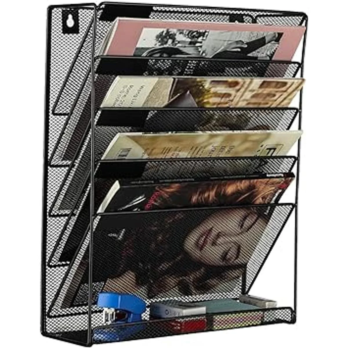 Organizador de malla de 6 niveles EasyPAG para guardar archivos, material de lectura, etc.; montaje en pared, Negro