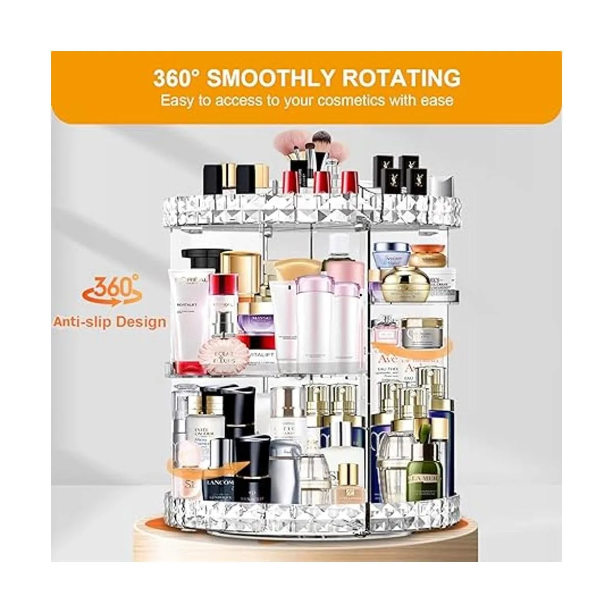 Rotación de 360: este organizador de maquillaje es transparente y tiene una base estable. Te ayuda a encontrar fácilmente cosméticos, y los cosméticos permanecen en su lugar cuando giras el organizador.