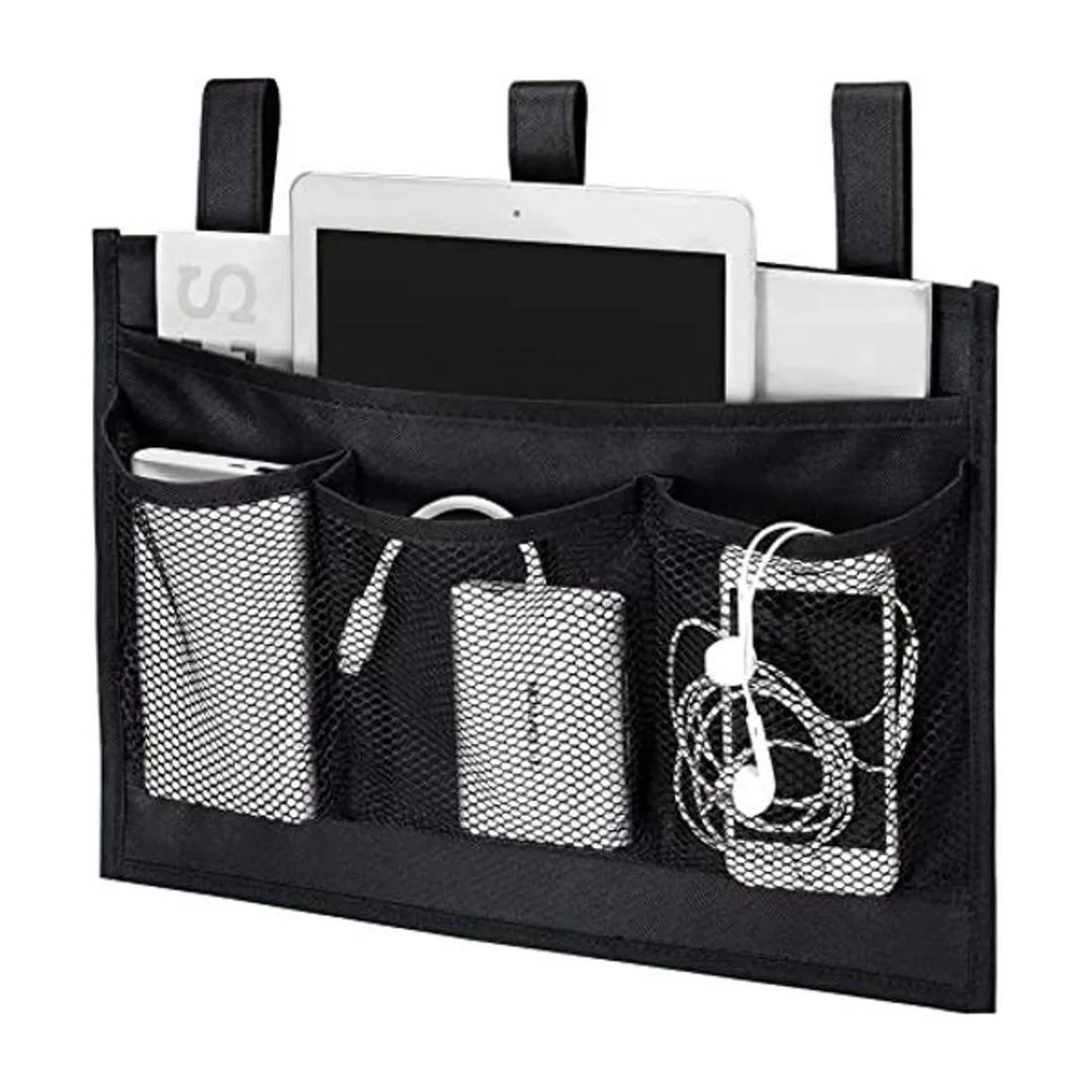 Organizador de noche, organizador de almacenamiento de noche, organizador de noche colgante, bolsillo para literacamas de hospital, organizador de dormitorio universitario para teléfonos remotos, dormitorio universitario, campamento, rieles de cama de bebé 4 bolsillos, negro