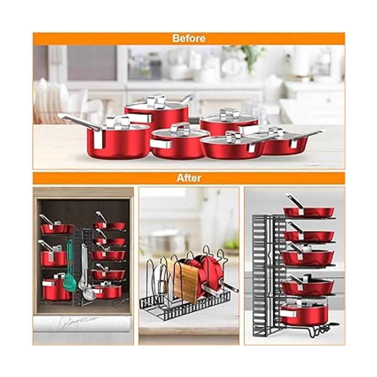 Un bonito regalo para cualquier persona: ya no tienes que preocuparte de que tu cocina sea un desorden y no puedas encontrar tus utensilios de cocina cuando lo necesites; en cualquier inauguración de la casa, cumpleaños o vacaciones con este increíble organizador de sartenes diseñado para crear espacio en cualquier cocina para una mejor vida