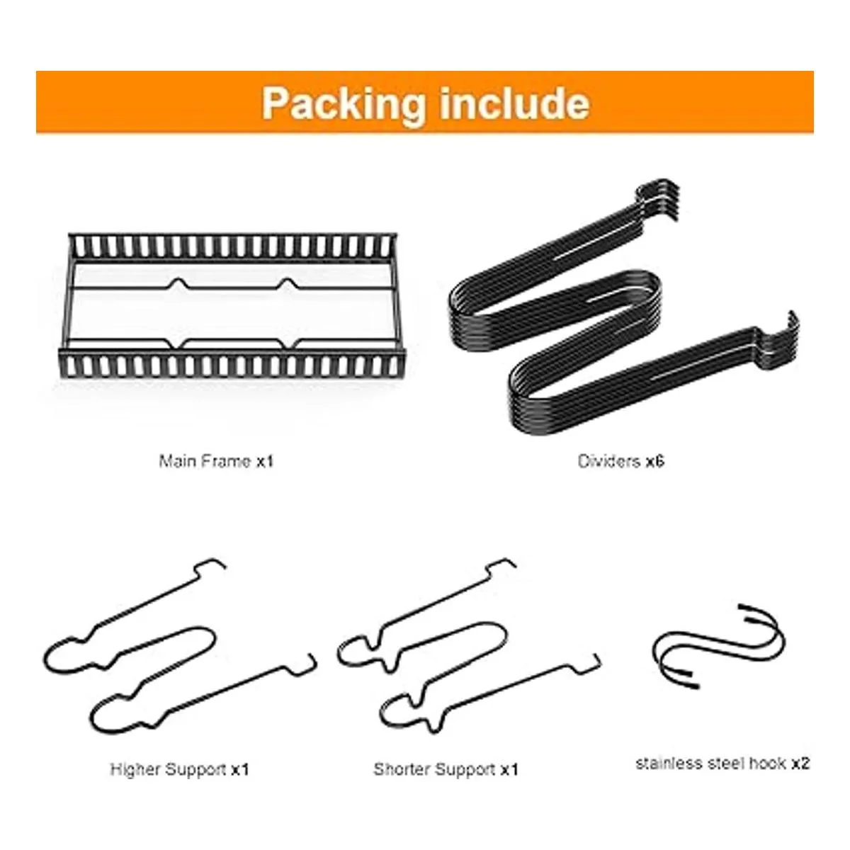 2 ganchos adicionales: el organizador de armario de cocina adopta una estructura de alambre de acero de alta resistencia ampliada y gruesa y nueva tecnología de revestimiento de alta tecnología, duradero, anticorrosión. Dos ganchos resistentes también están incluidos en el juego para que puedas colgar cualquier herramienta, muy práctico