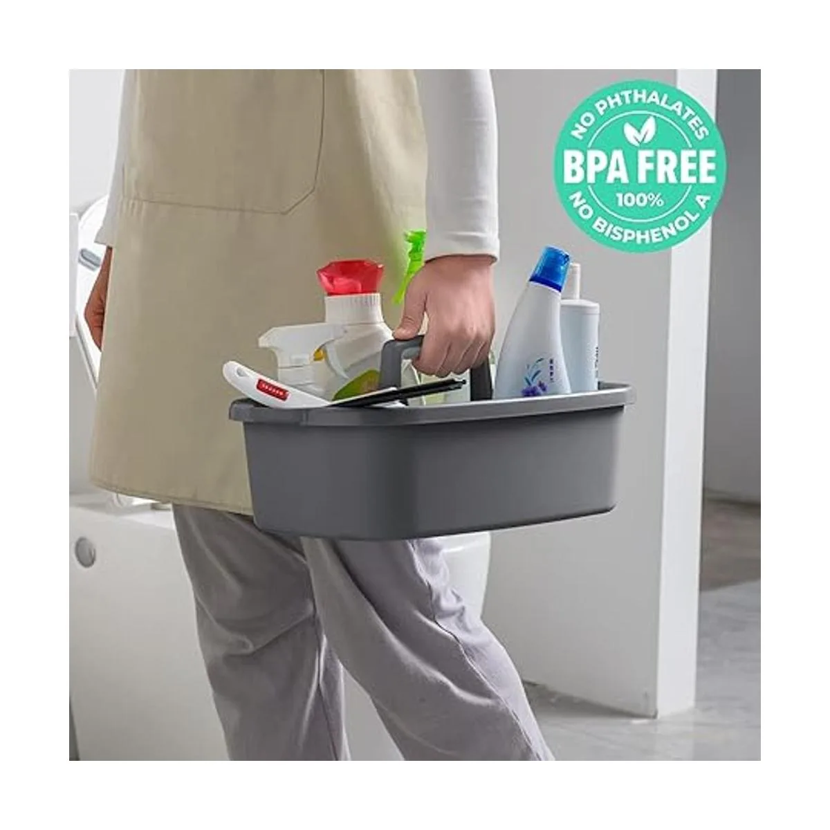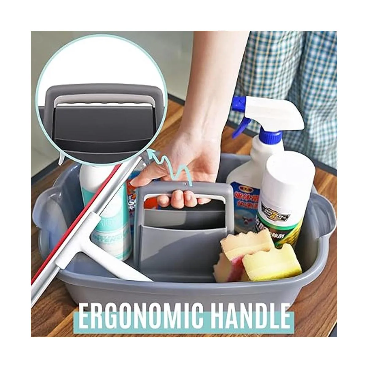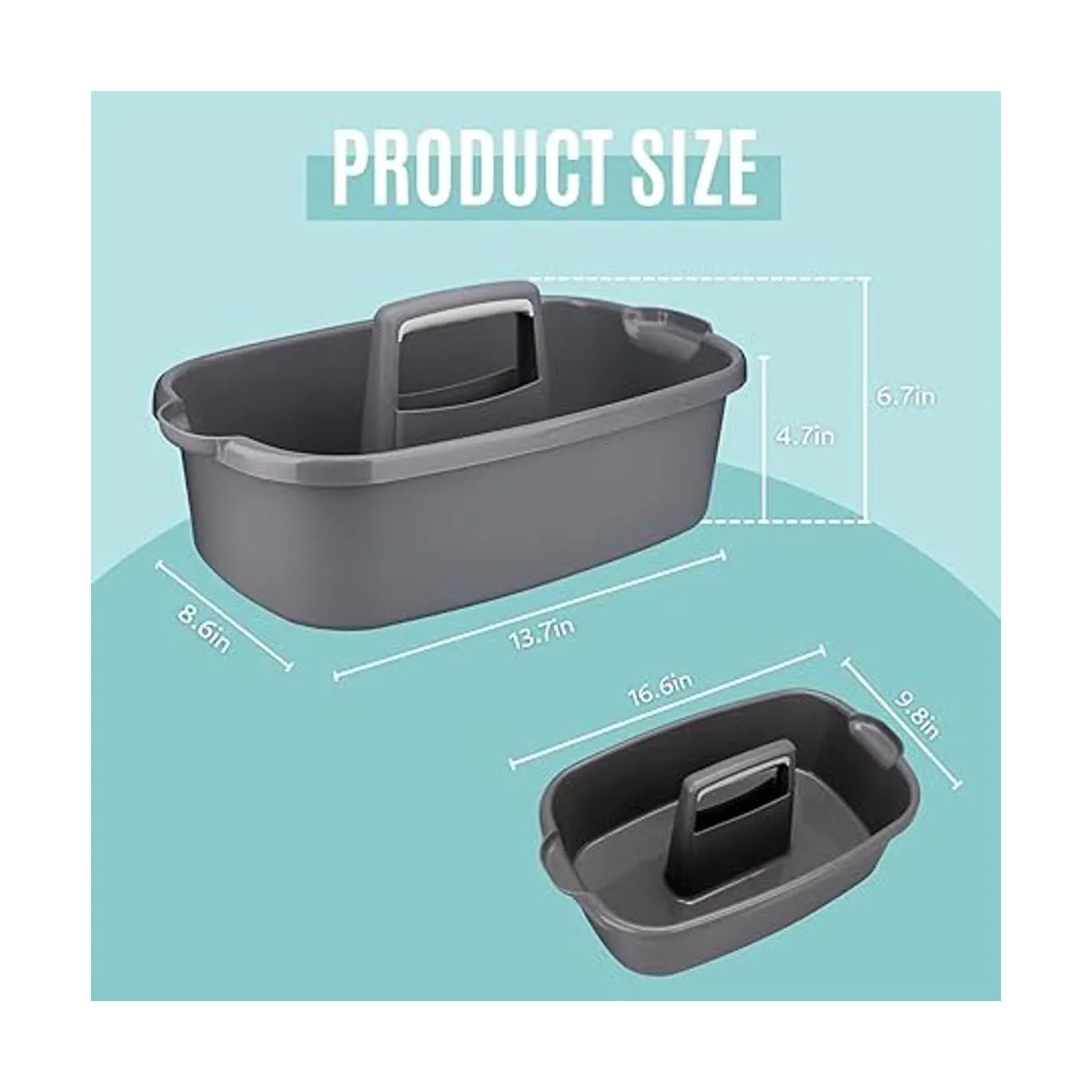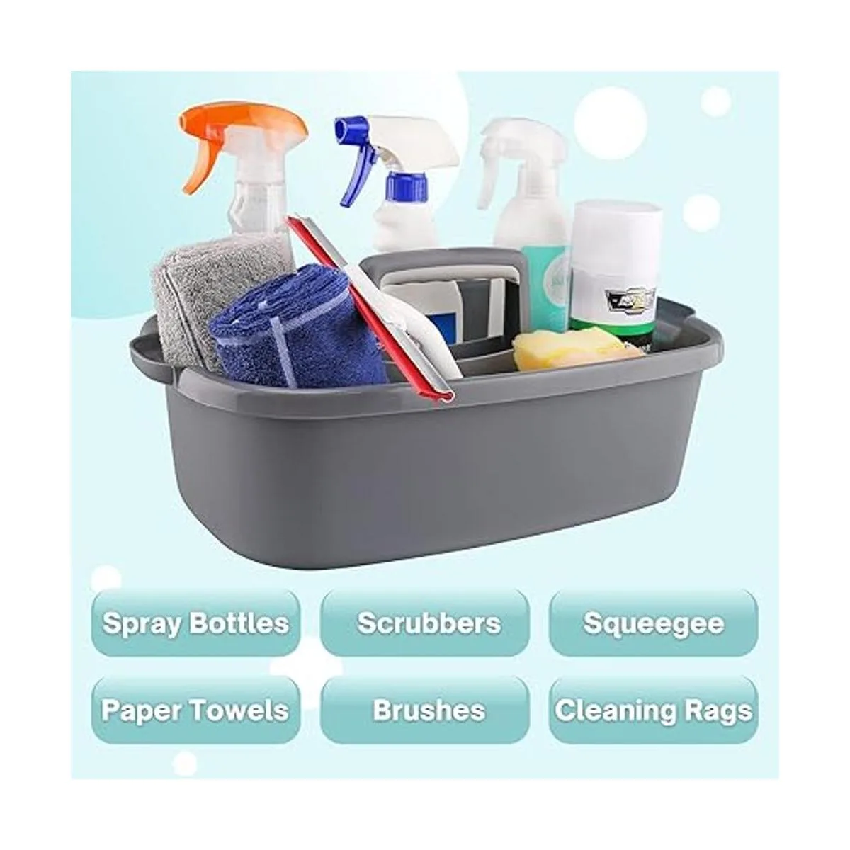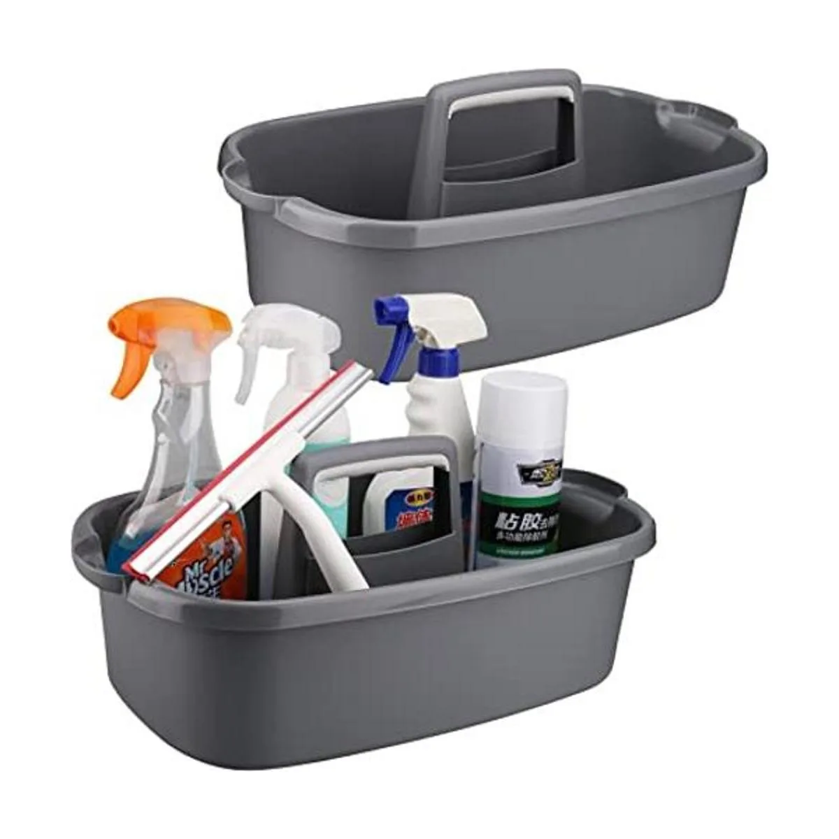 Organizador de organizador de limpieza con asa, organizador de plástico gris para productos de limpieza, bolsa de almacenamiento de herramientas de limpieza, paquete de 2