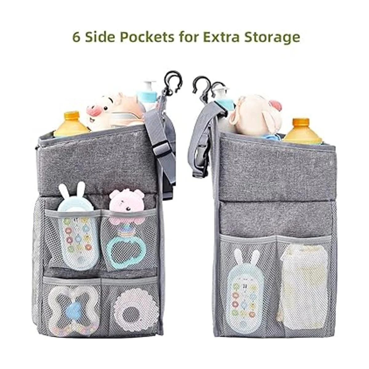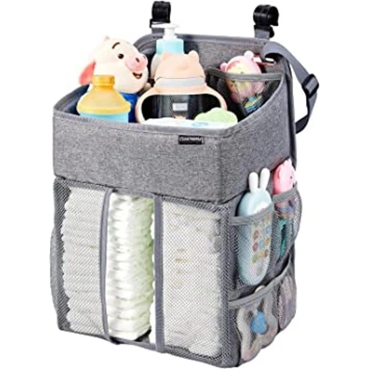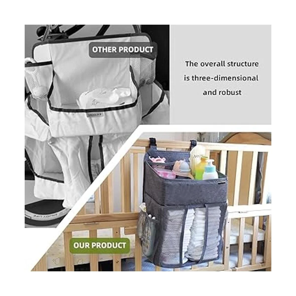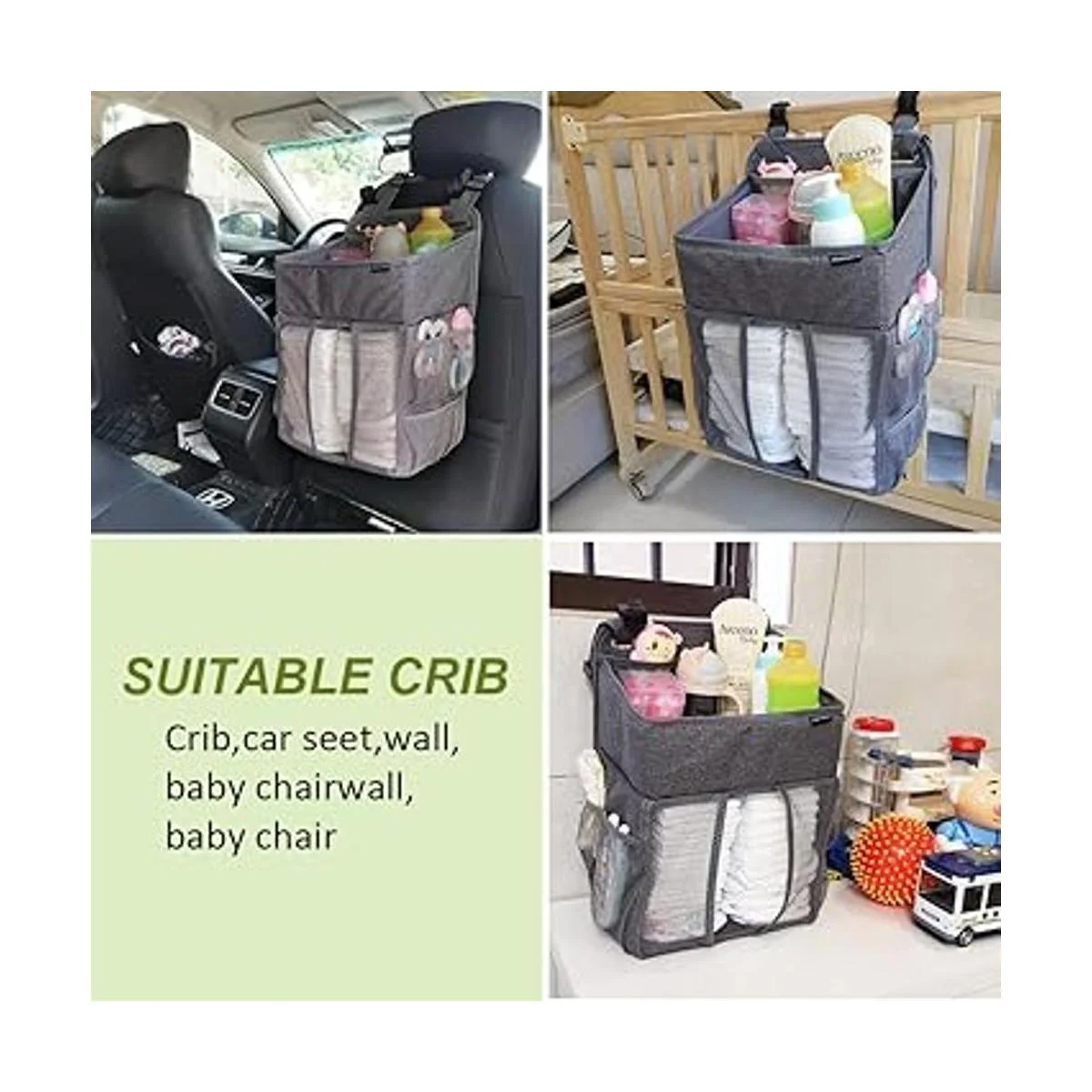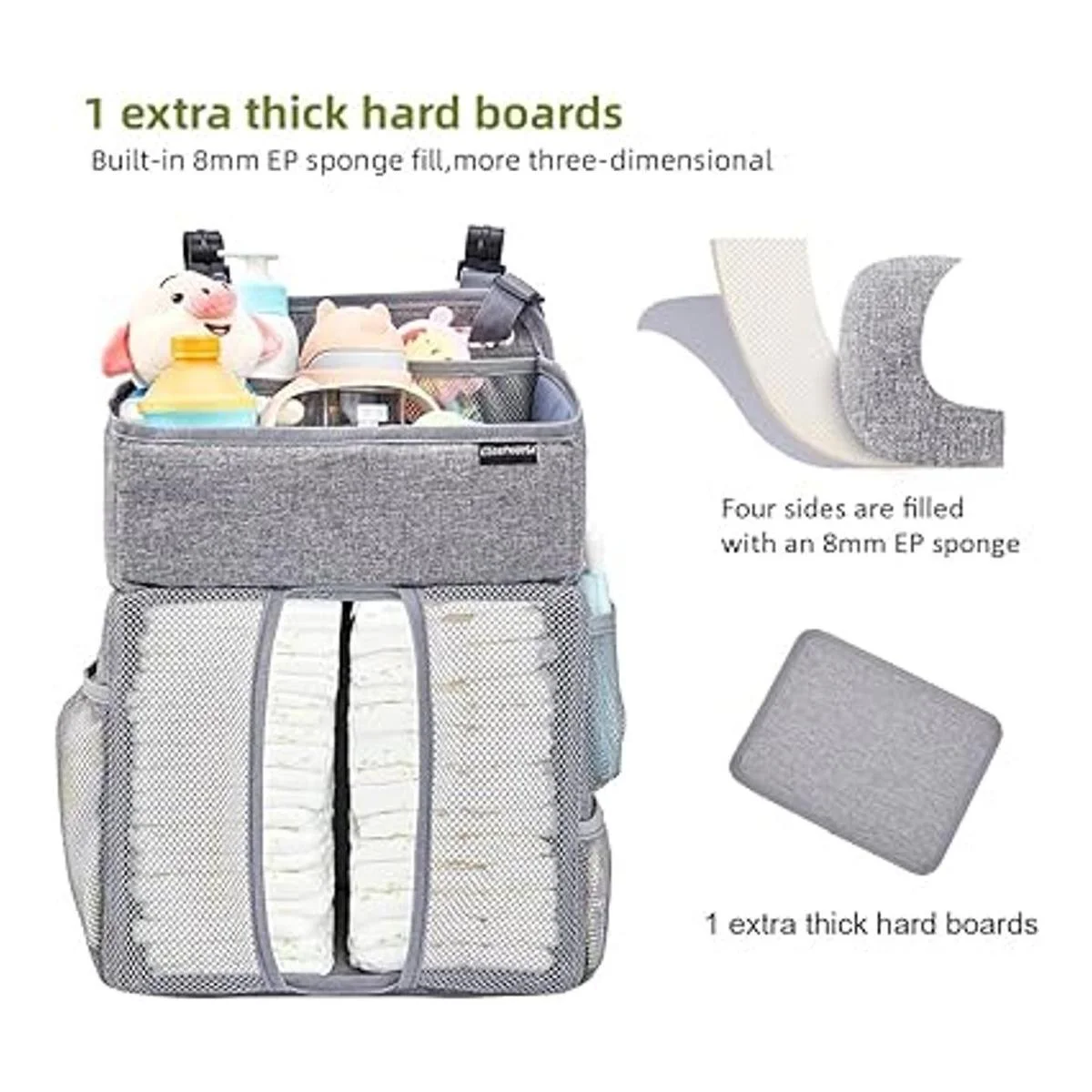 Organizador de pañales colgante, apilador de pañales y organizador de cuna, organizador de guardería grueso mejorado para cambiador, cuna, pared y moisés, almacenamiento esencial para bebé gris
