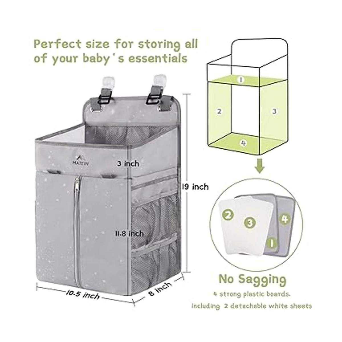 Gran capacidad: este organizador de pañales colgante MATEIN puede contener más de 52 pañales para tallas NB y S. El compartimento superior puede adaptarse al calentador de toallitas, 2 bolsillos superiores de malla y 6 bolsillos laterales de malla para guardar cremas, juguetes, ropa de bebé, biberones y otros artículos esenciales del bebé. Múltiples bolsillos hacen que sea fácil y rápido encontrar lo que estás buscando, especialmente no necesitas dejar el lado de tu bebé durante los cambios de pañales