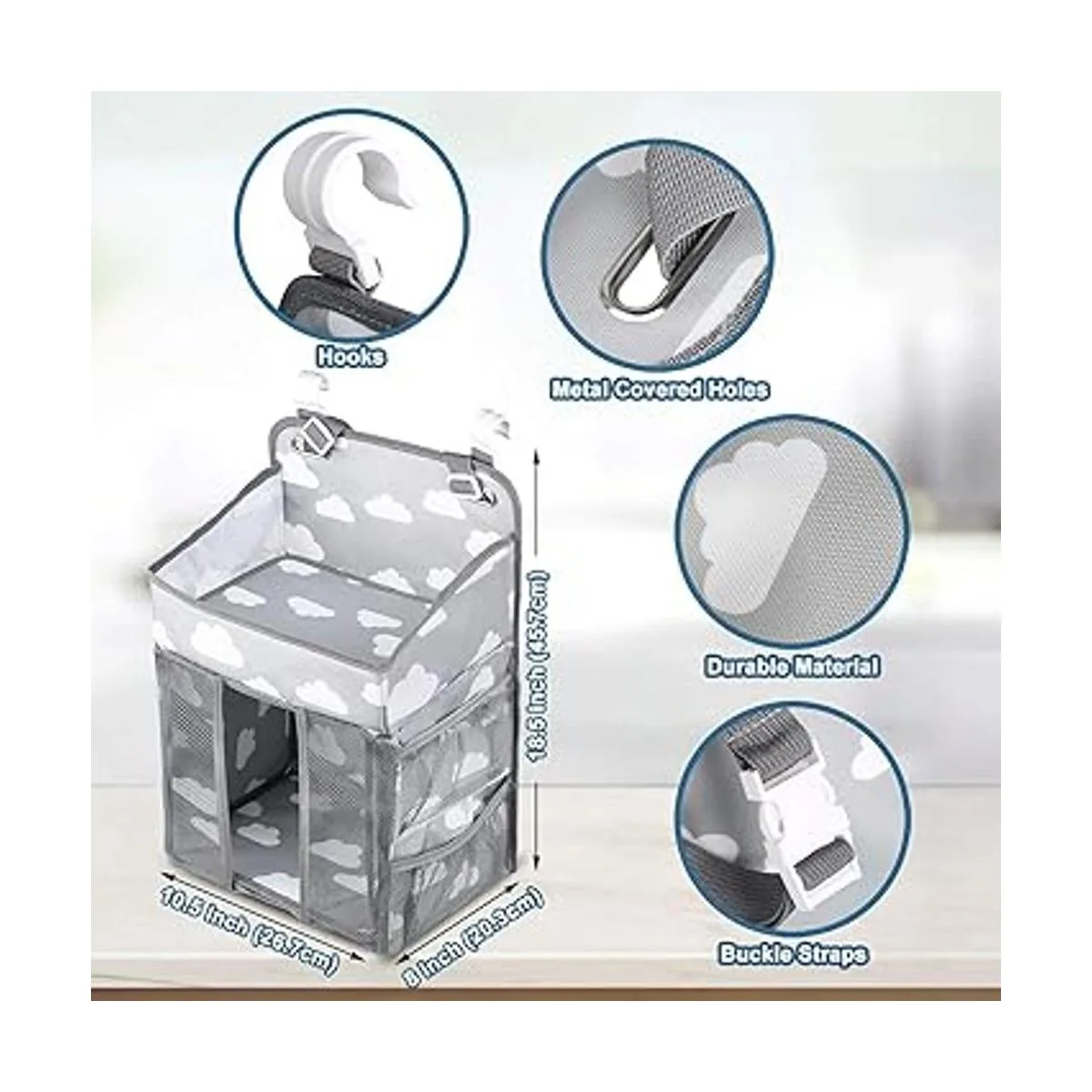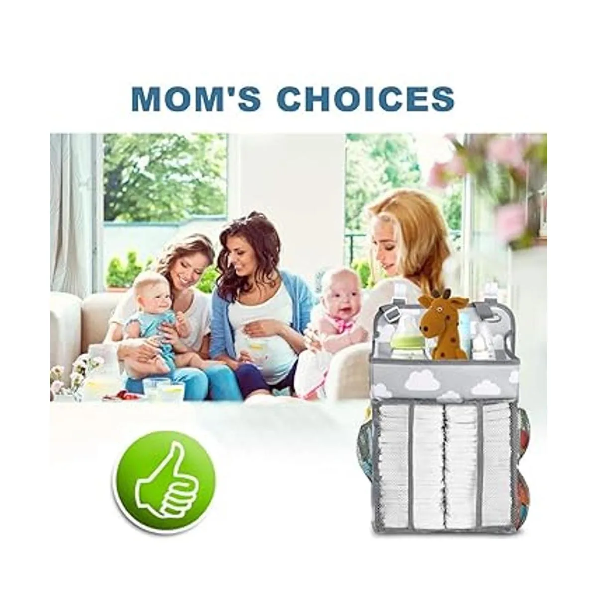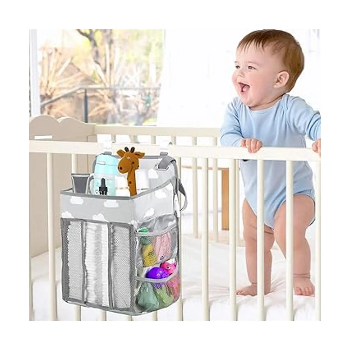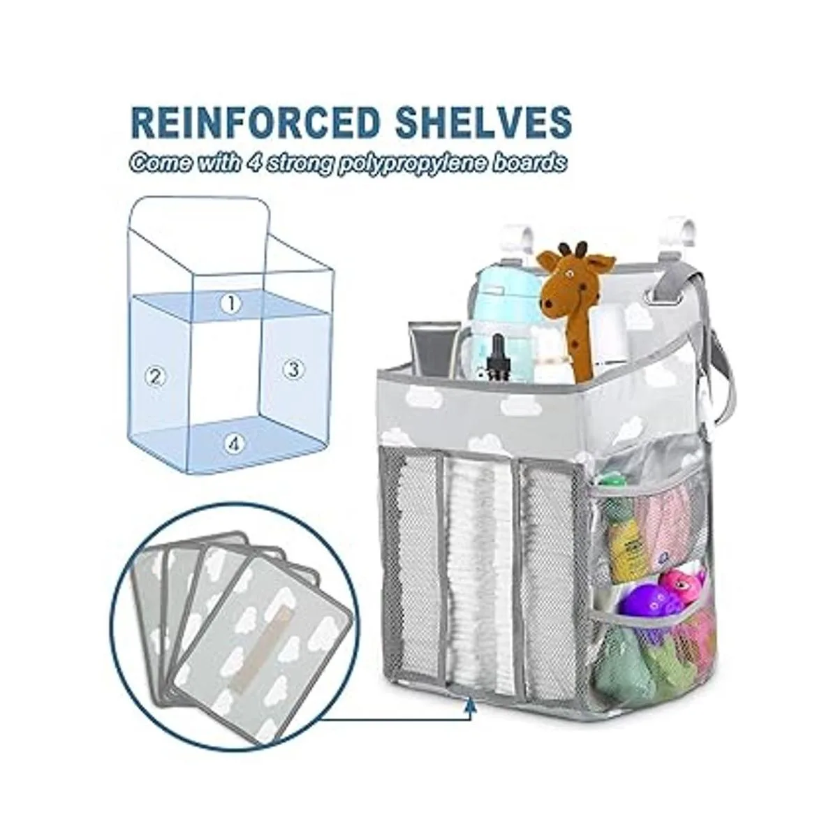 Organizador de pañales colgante seguro y resistente: la seguridad viene con puño. Cuna Caddy Stacker con material de poliéster seguro y respetuoso con la piel, escolta a tu bebé. Los estantes reforzados mantienen 4 particiones duras en posición vertical para garantizar la estabilidad.