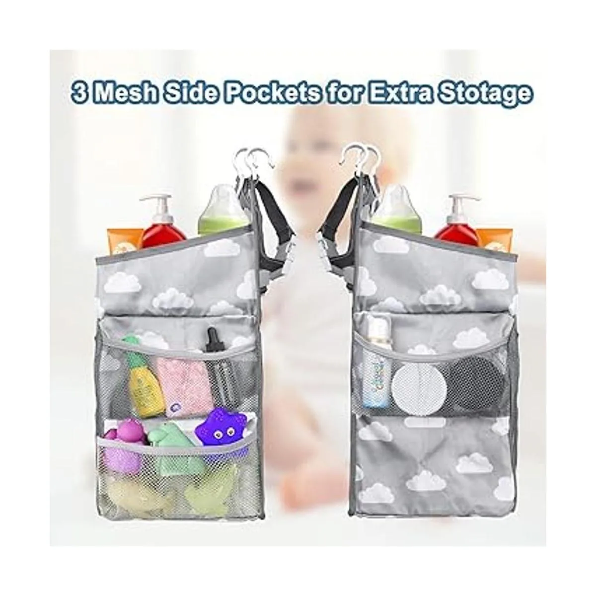 Diseño ergonómico humanizado: con dos ganchos resistentes, cuelga el organizador de pañales de bebé en la cuna, cambiador, puerta y pared, juego; dos correas ajustables duraderas, ajuste de altura libre de acuerdo a tus necesidades, hace la vida más fácil y cómoda.