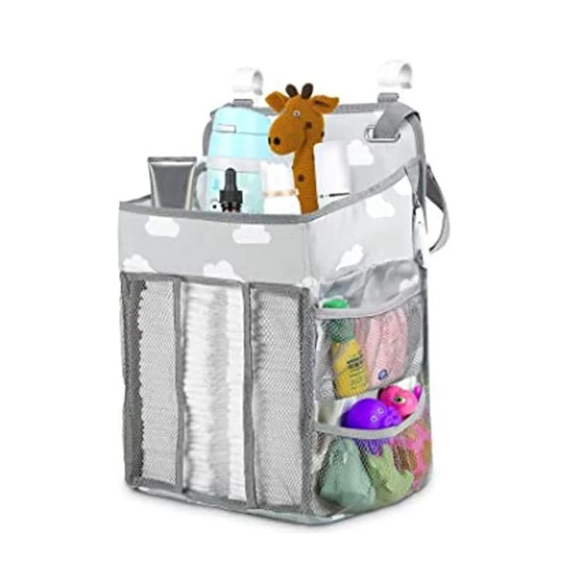 Organizador de pañales colgante, organizador de pañales, organizador de pañales, organizador de pañales para bebé, niña, niño, cuna, cambiador, mesa de juegos, pared, regalo de baby shower, bolsa de almacenamiento para mesita de noche, gris
