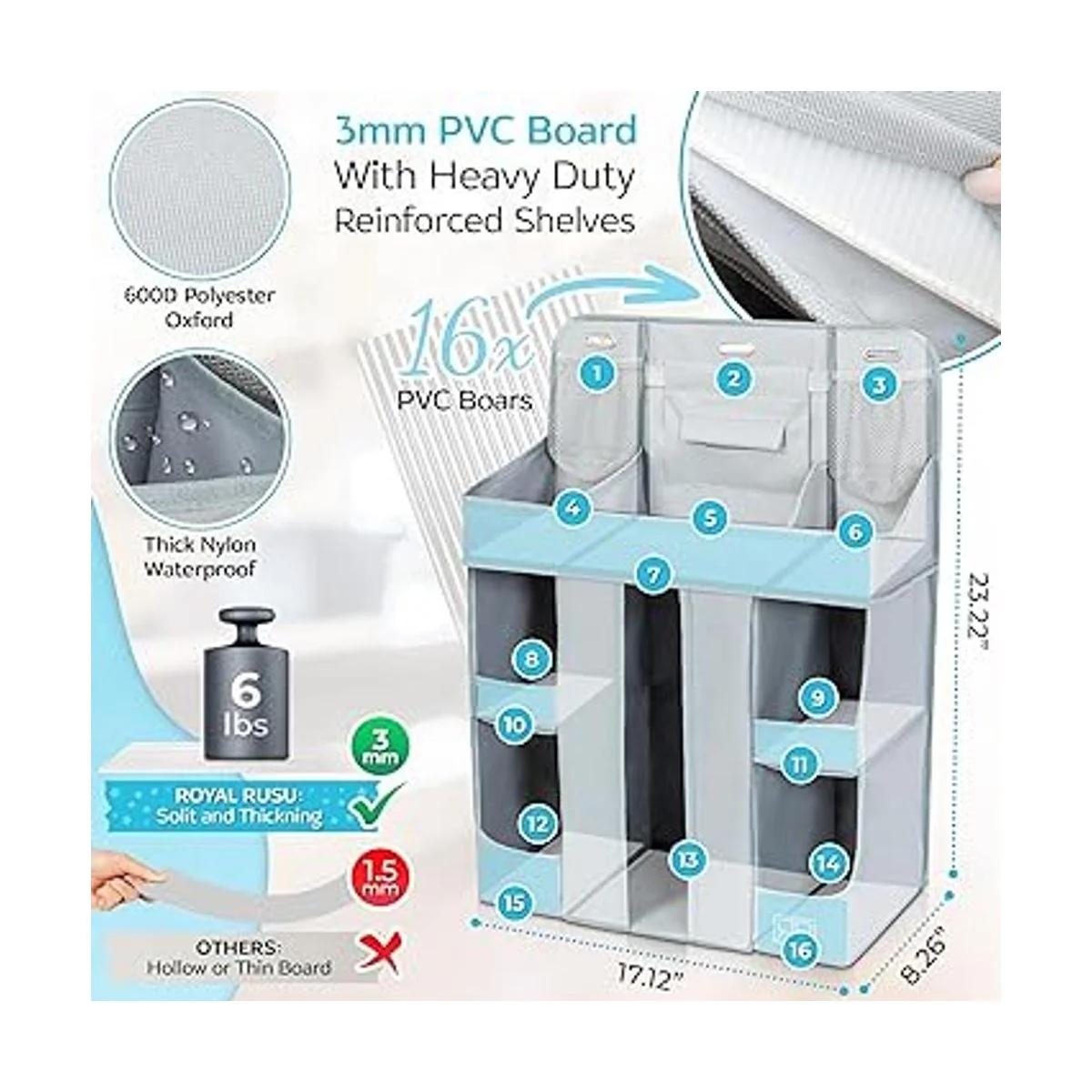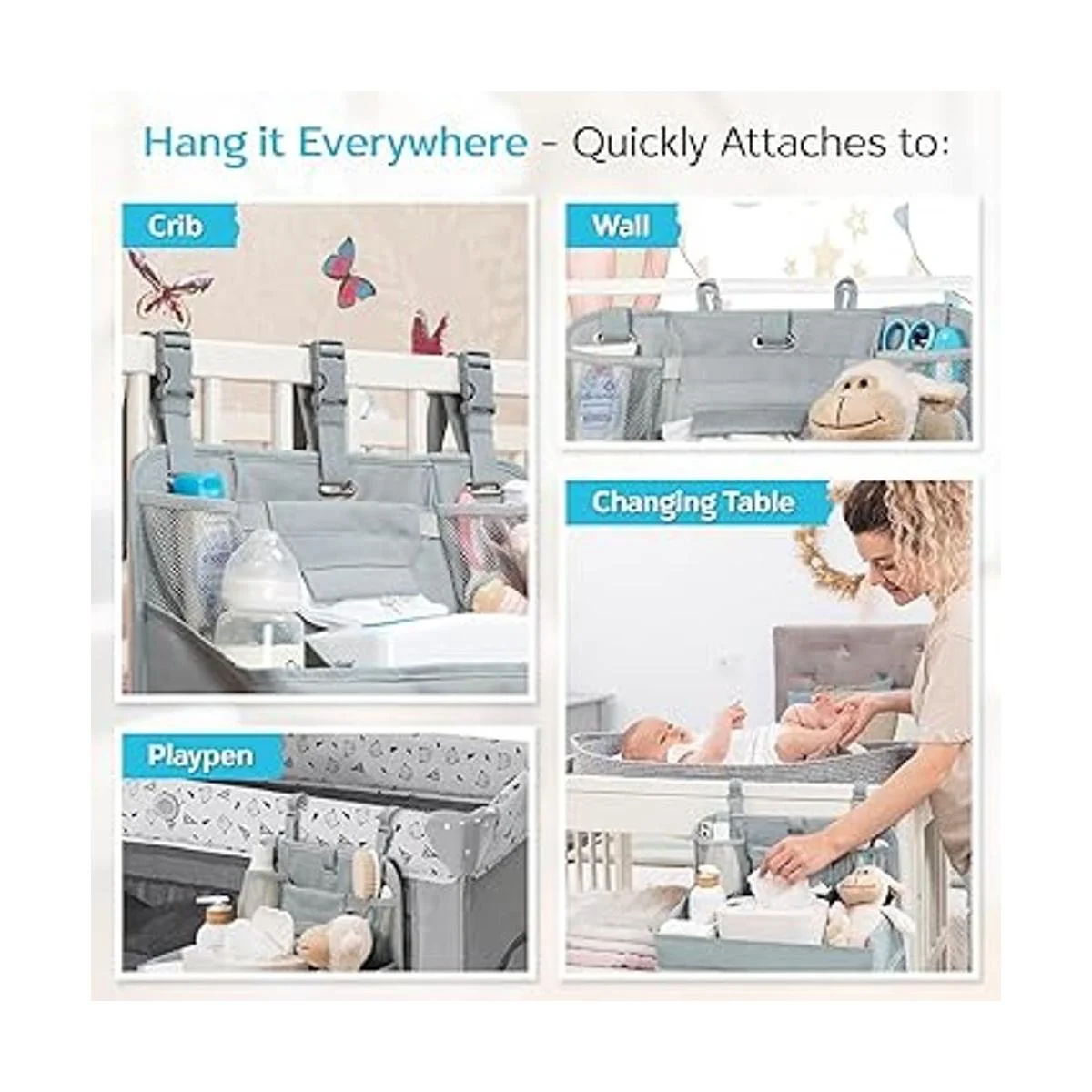 Qué hace que nuestro organizador de pañales para cuna sea único Hemos creado nuestro organizador de almacenamiento de pañales con un diseño estructural único para mayor estabilidad, manteniendo la forma en todo momento, ya sea completamente empaquetado o vacío. A diferencia de otros organizadores de mesa endebles que se caen y se doblan bajo el peso, nuestro organizador de cuna colgante para pañales está reforzado con tableros de PVC gruesos para cada estante y a medida innovadora, asegurando que se mantendrá vertical y soporta pesos altos