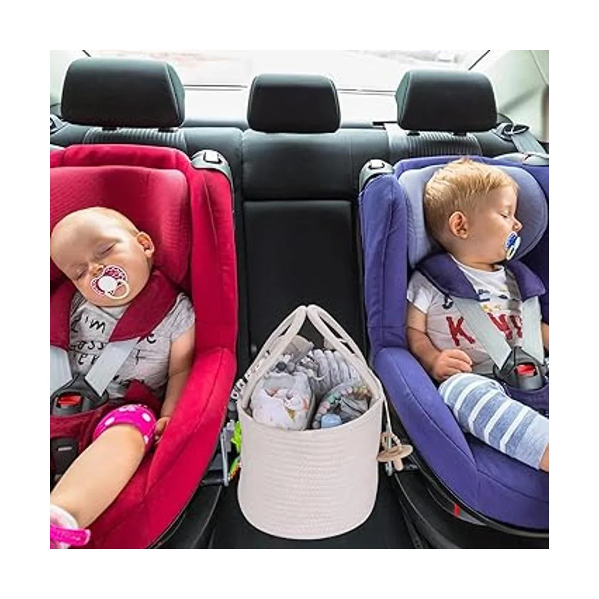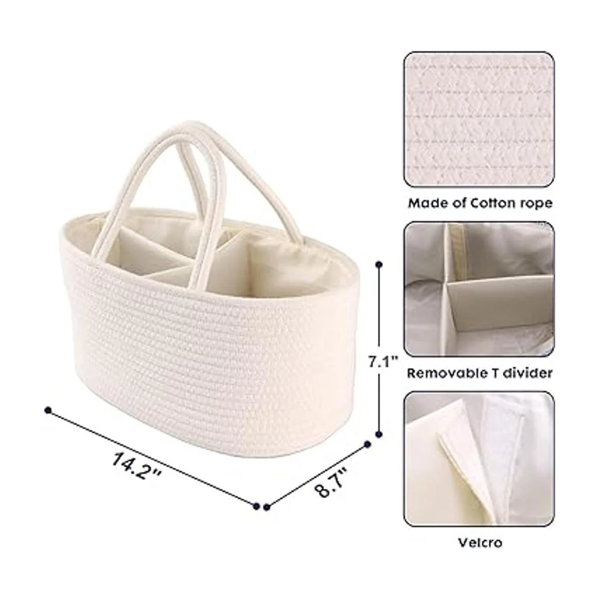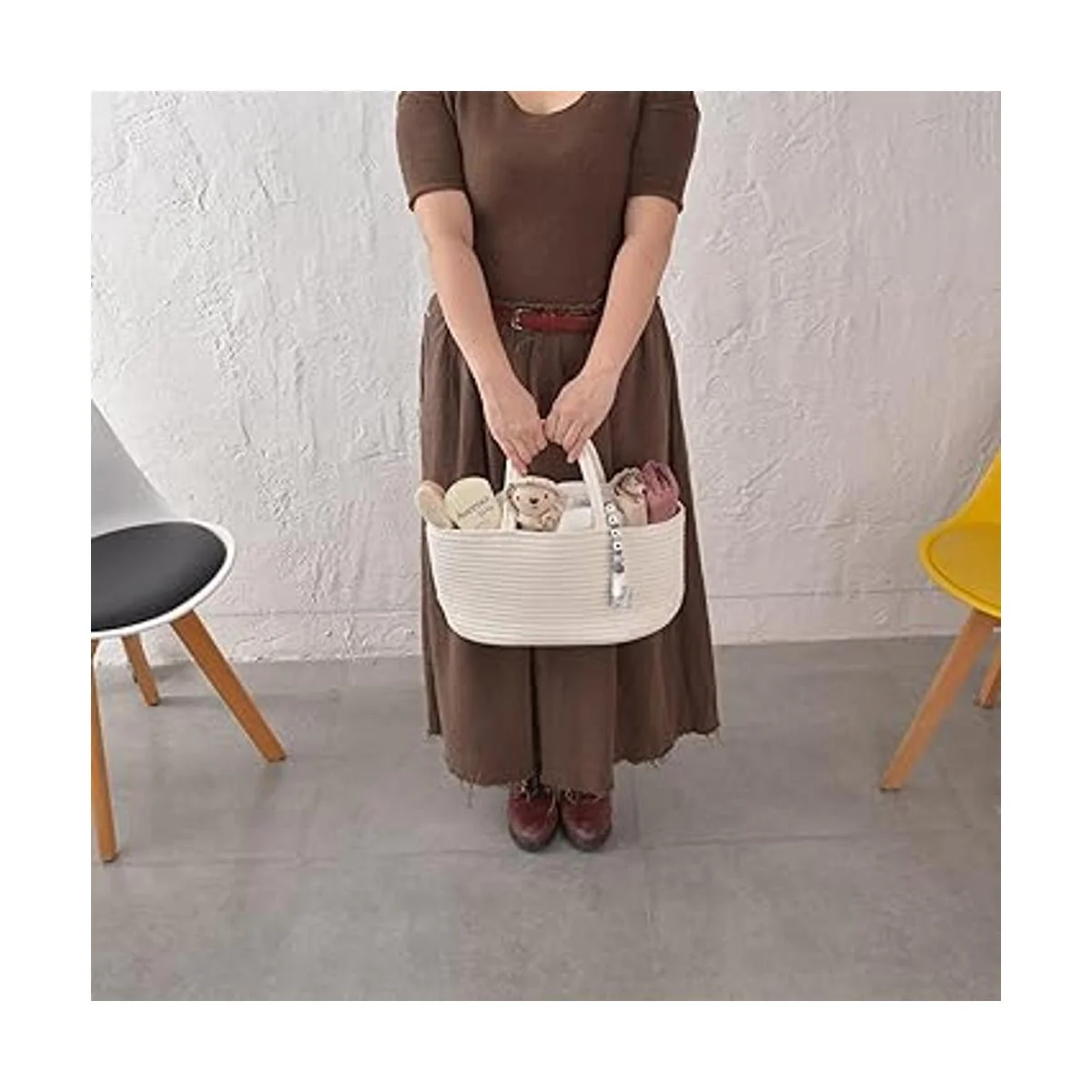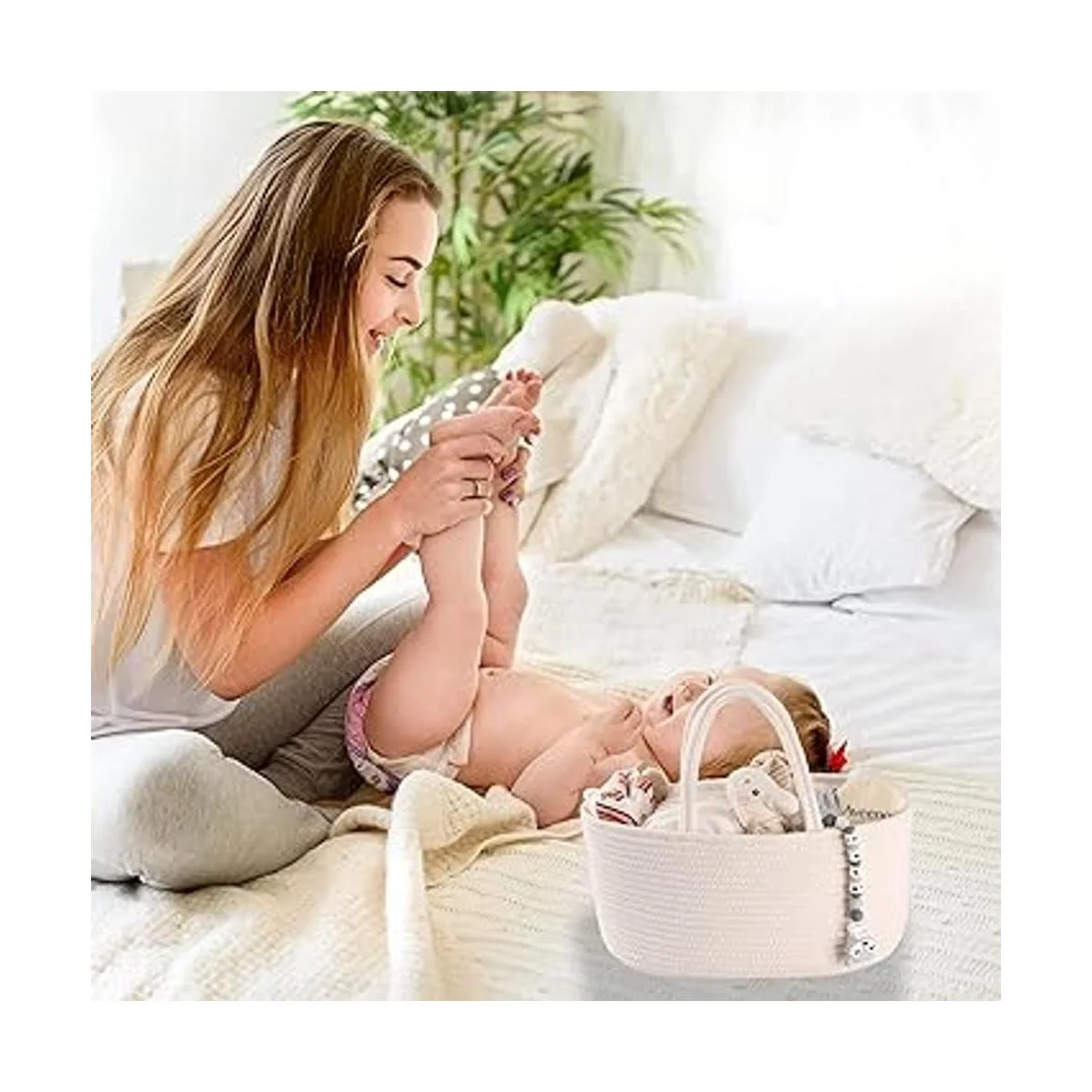 Organizador de pañales para bebé, cuerda de algodón, canasta de almacenamiento, portátil, para cambiadores, viajes, baby shower, regalos para recién nacidos, artículos esenciales para registro, color blanco