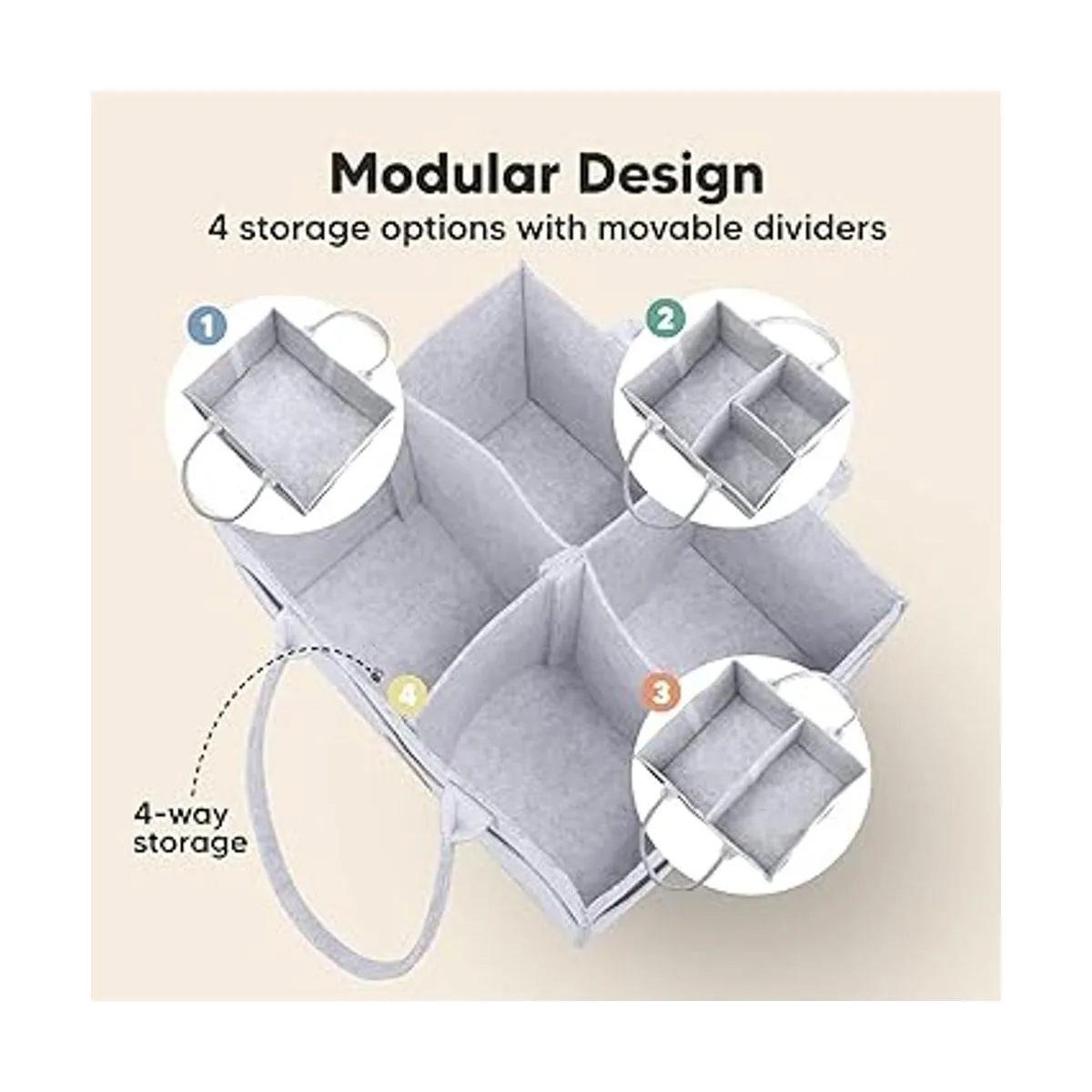 Diseño modular: Necesitas compartimentos o un gran espacio de almacenamiento para tu organizador de estación de pañales No te preocupes, puedes elegir usarlo como una gran cesta de almacenamiento para bebé o caber en el organizador modular de mesa cambiador para una mejor organización de compartimentos.