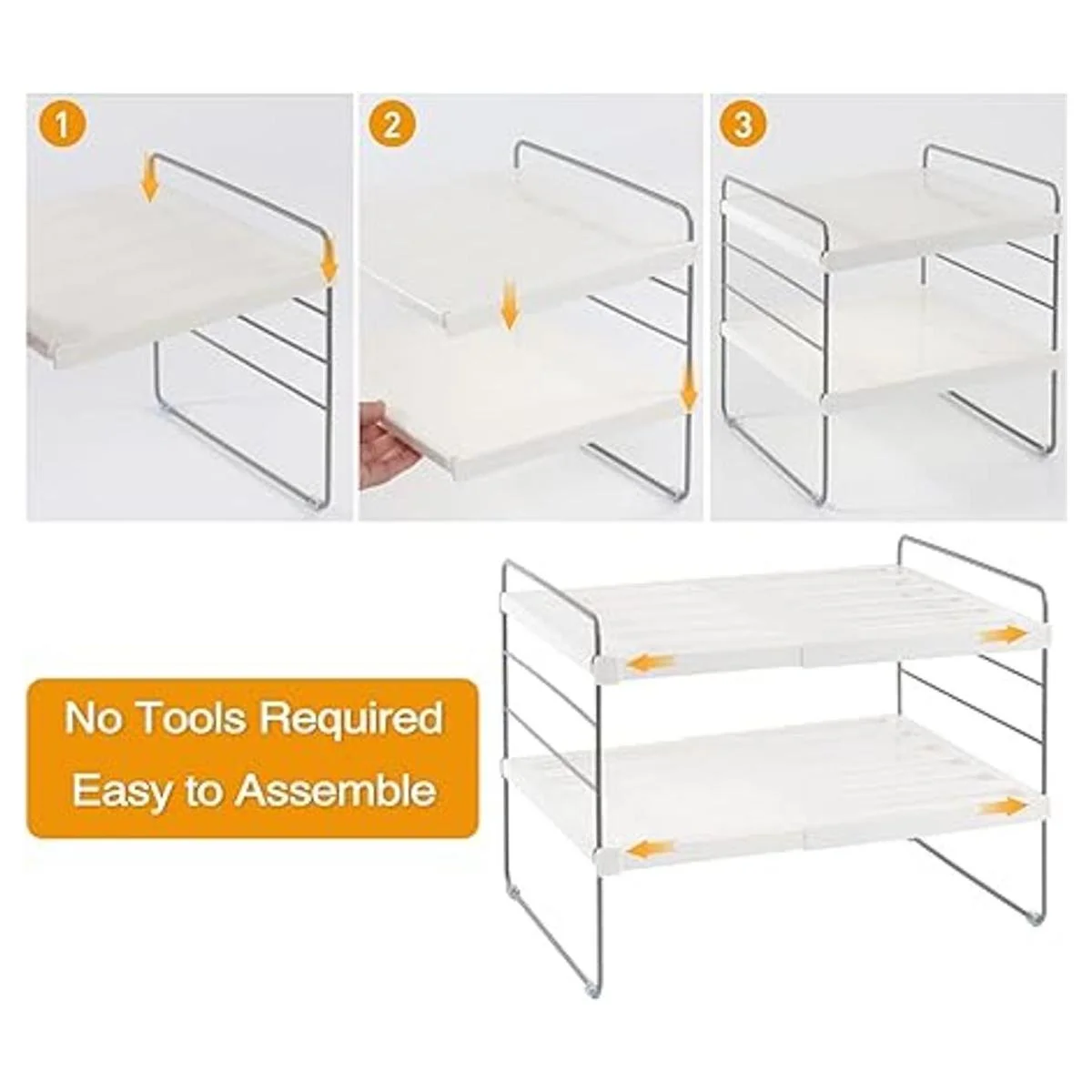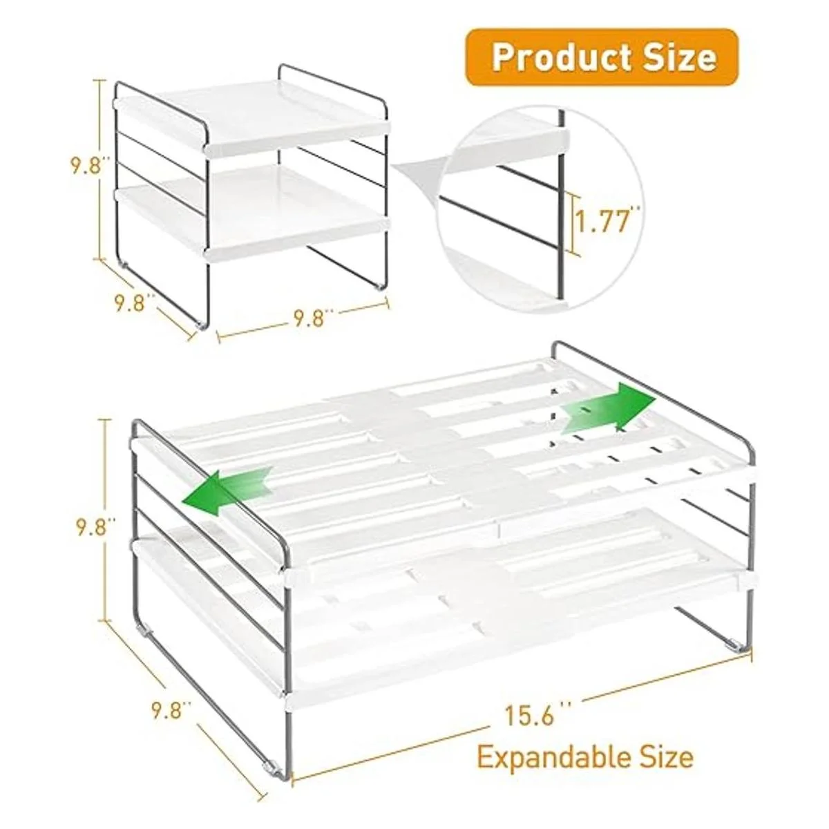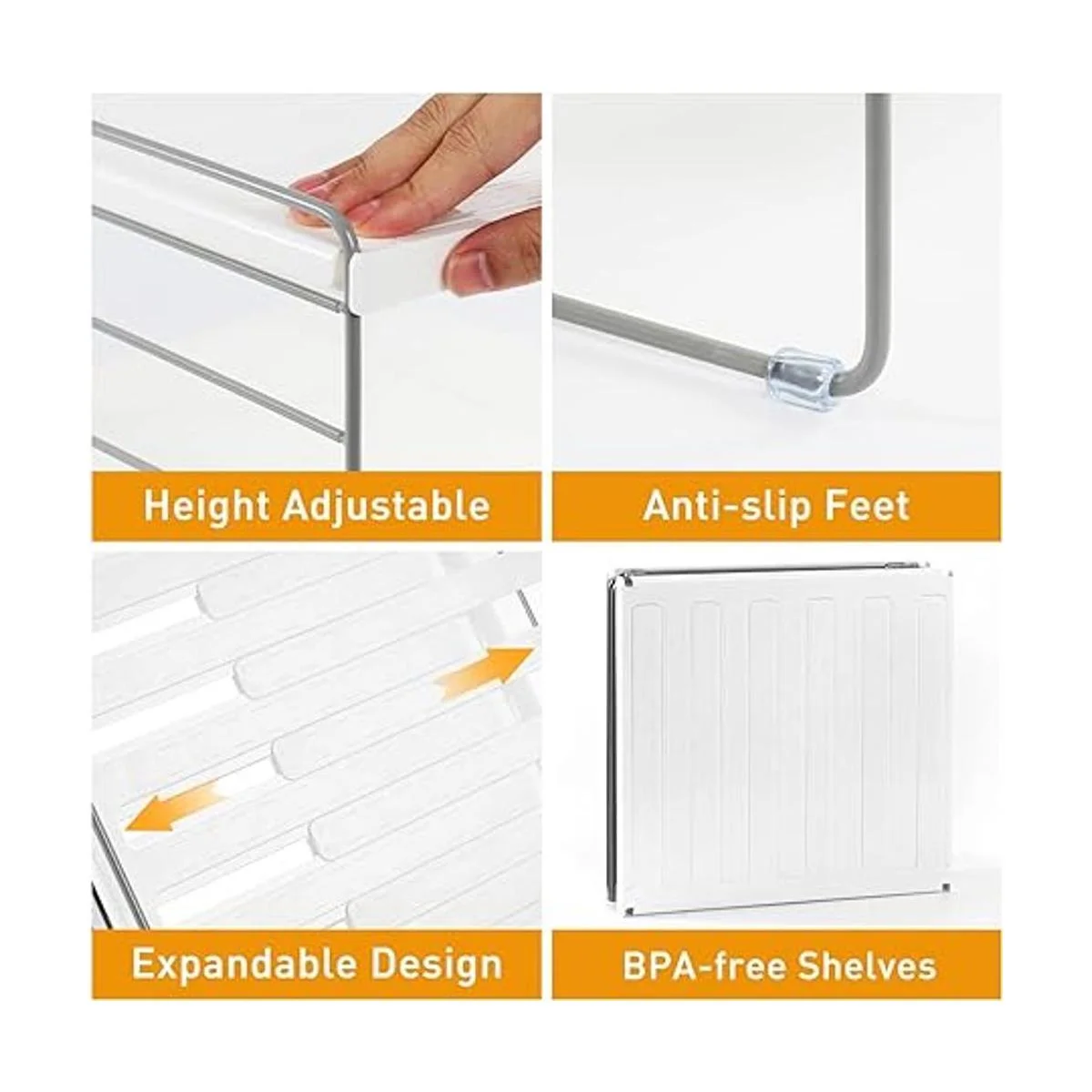 Organizador expandible de papel de aluminio y plástico: la longitud de este estante organizador de alimentos se puede ajustar a tu deseo. Puede variar de 9.8 a 15.6 pulgadas de longitud dependiendo de cómo quieras organizar tu espacio. Dimensiones del estante organizador: 9.8 a 15.6 x 9.8 x 9.8 pulgadas