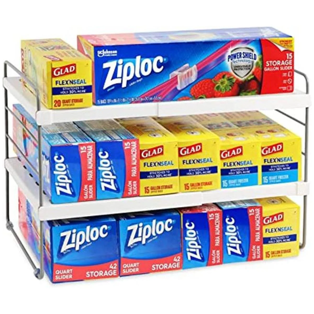 Organizador de papel de aluminio para gabinete, organizador de envoltura de cocina expandible, organización de papel de aluminio ajustable y organizador de caja de almacenamiento para despensa, soporte de envoltura Saran para bolsas de sándwich, envoltura de plástico