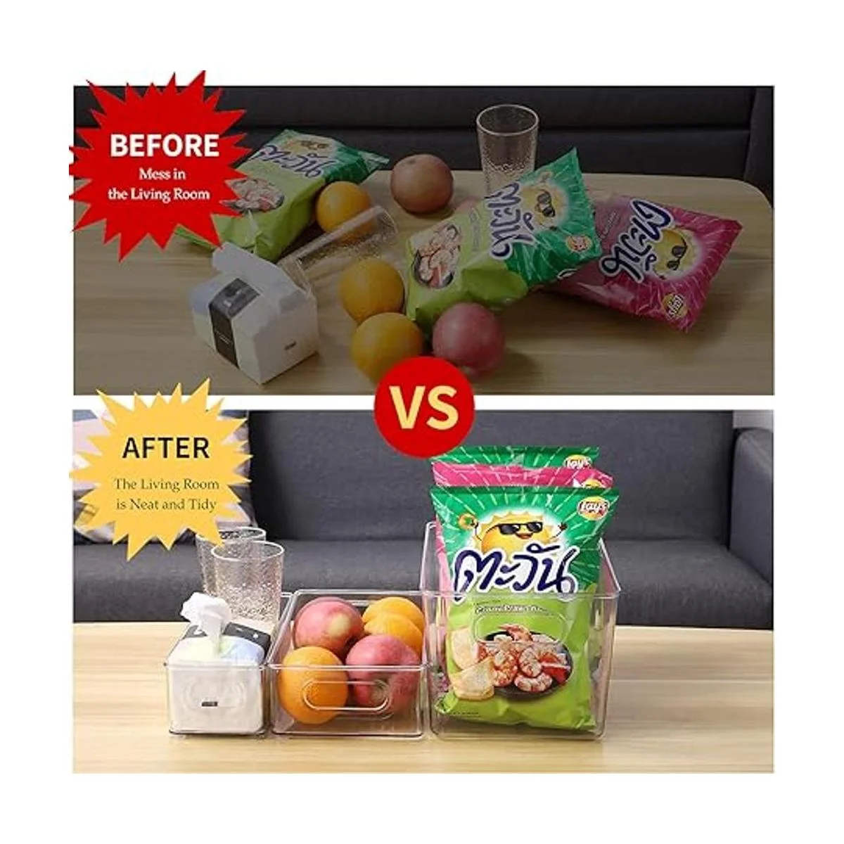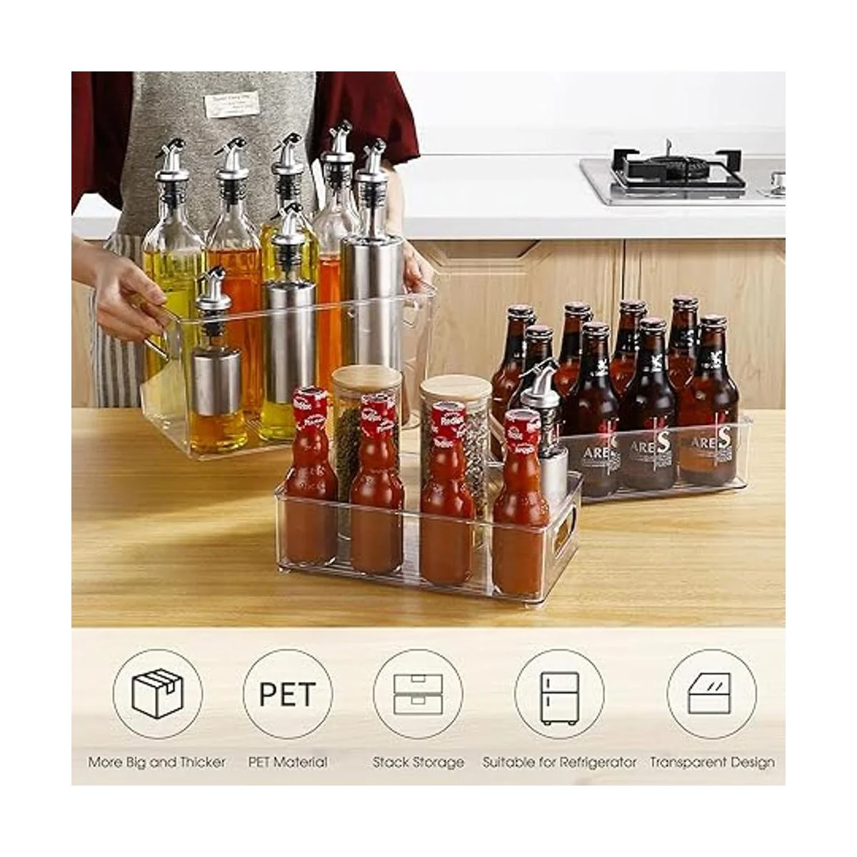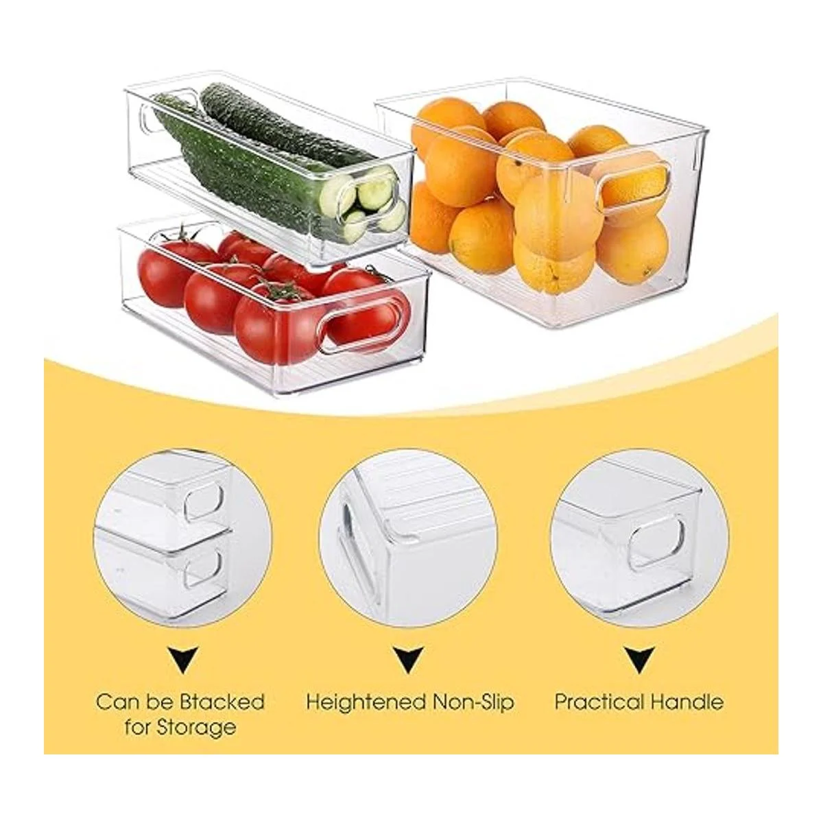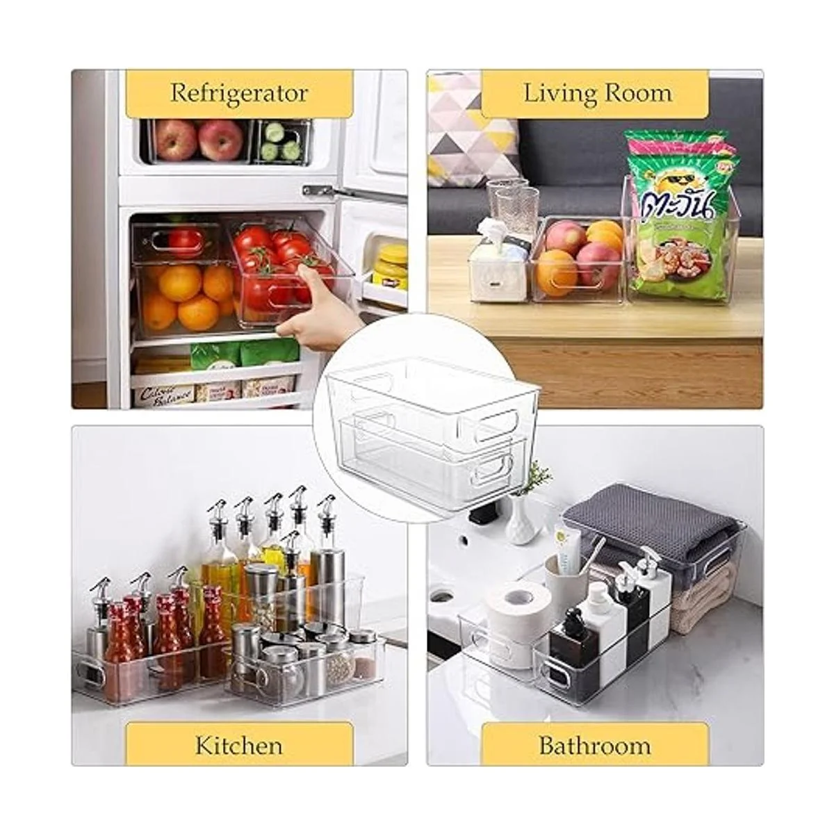Tamaño ideal: los contenedores de almacenamiento se adaptan a bolsas, paquetes de alimentos, cajas de jugo, tarros, comida para bebés, botellas, productos enlatados, frutas, yogures, queso y mucho más. También es bueno para guardar productos secos en la despensa. Ideal para cocinas, encimeras, estantes de despensa, refrigeradores, congeladores, armarios o como organizadores de cajones.