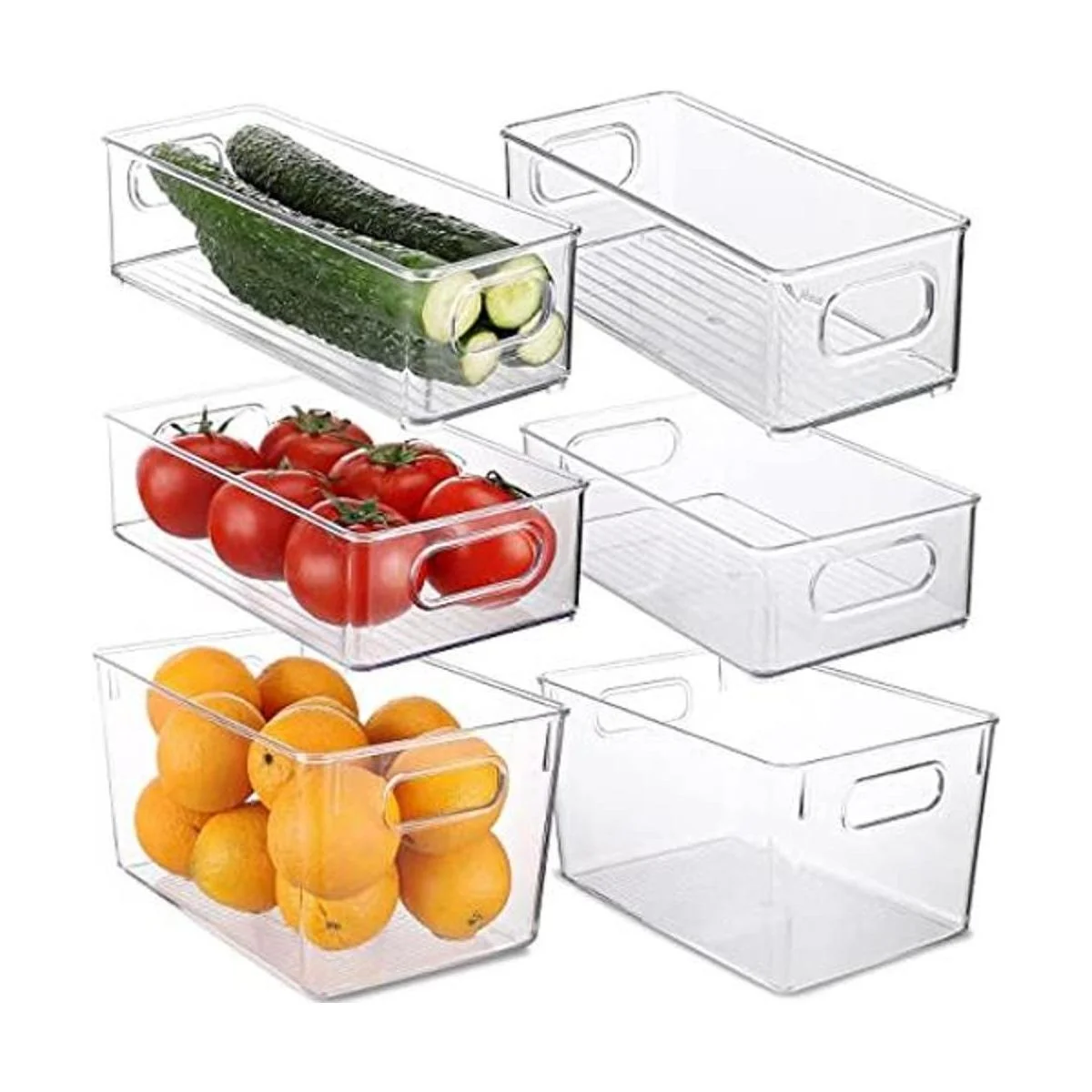 Organizador de refrigerador, organizador de despensa transparente y almacenamiento con asas recortadas, juego de 6 contenedores organizadores de plástico apilables para nevera, gabinete, encimeras de cocina, sin BPA