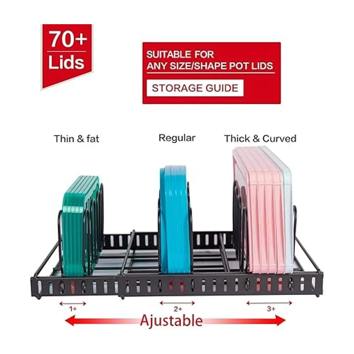 Diseño duradero y sencillo: hecho de acero al carbono resistente, muy resistente y fácil de limpiar, estilo simple pero práctico, el mejor organizador de tapas adecuado para ti