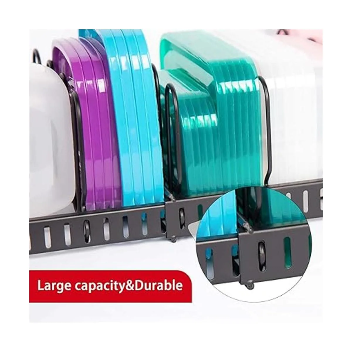 11 compartimentos ajustables Este organizador de tapas para contenedores de alimentos incluye 10 separadores ajustables, fácil de instalar y sin necesidad de herramientas, mide 11.8 22.4 pulgadas de ancho x 10.2 pulgadas de largo x 5.3 pulgadas de alto, 4.6 lbs, el divisor se puede ampliar de acuerdo con el espacio que desees