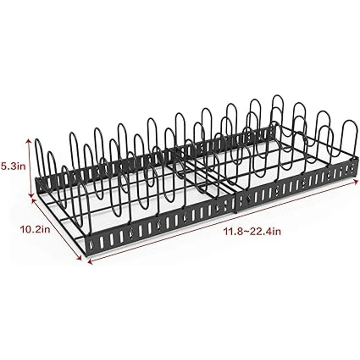 Organizador de tapa de recipiente de alimentos expandible, ajustable de gran capacidad, 10 divisores, organizador de tapa desmontable para armarios, armarios, estantes de despensa, cajones para mantener la cocina ordenada, negro patente pendiente