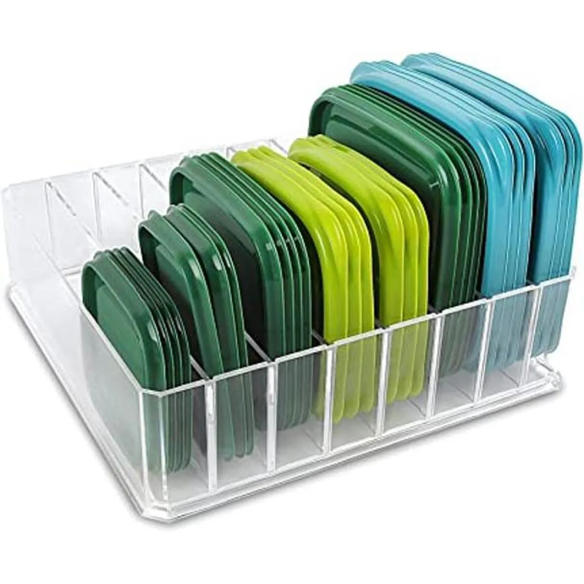 No requiere montaje ni herramienta: los separadores ajustables y extraíbles te permiten configurar el organizador de la tapa en cuestión de minutos. Una manera fácil de organizar todas tus tapas de contenedores de almacenamiento de alimentos o tapas de Tupperware.