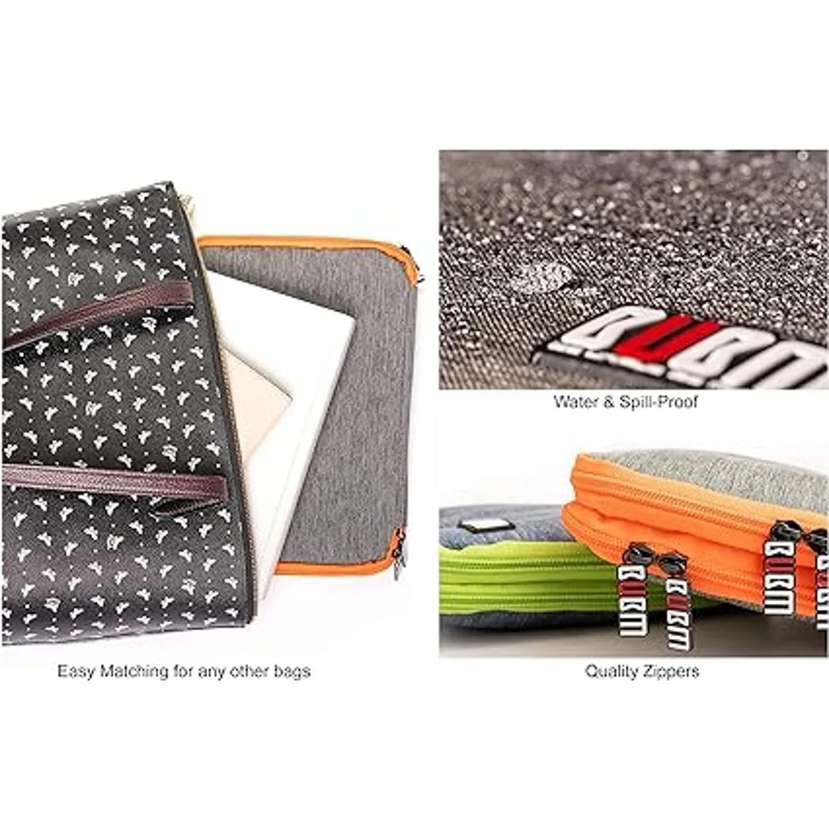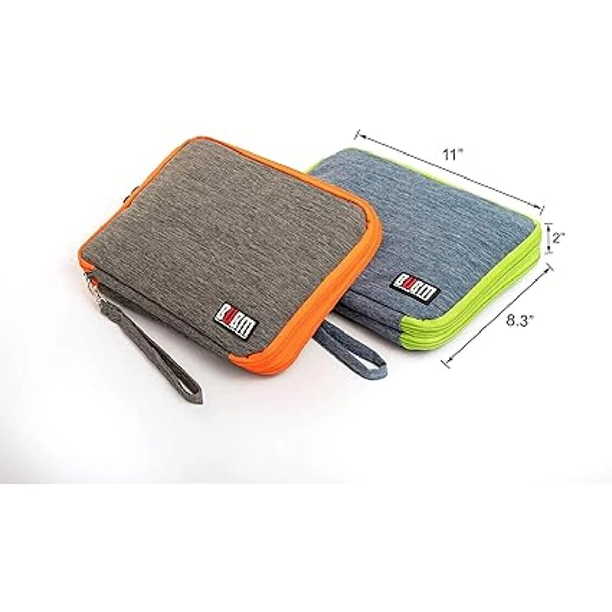 Gran capacidad. Se adapta a iPad Mini, iPad, iPad Air y otras tabletas de hasta 10 pulgadas. El iPad Pro de 11 pulgadas puede ajustarse sin fundas. Tres capas de bolsas proporcionan suficiente espacio y ranuras para organizar todos tus cables, tarjetas y accesorios.
