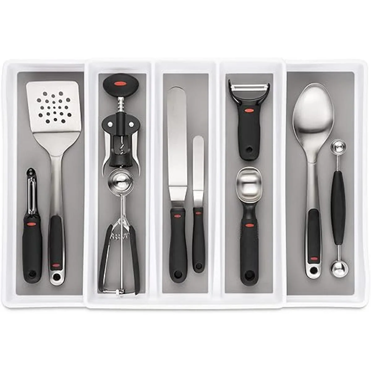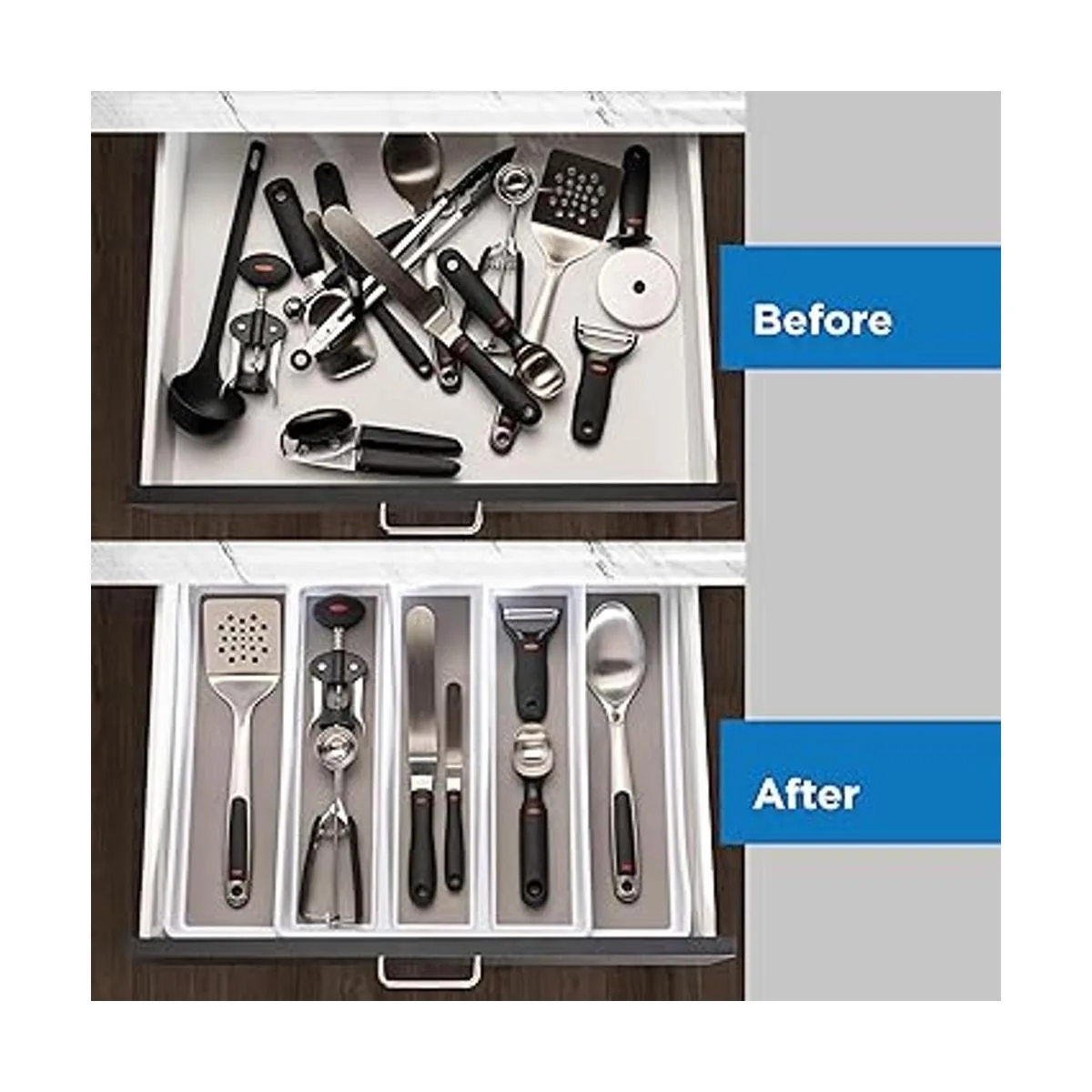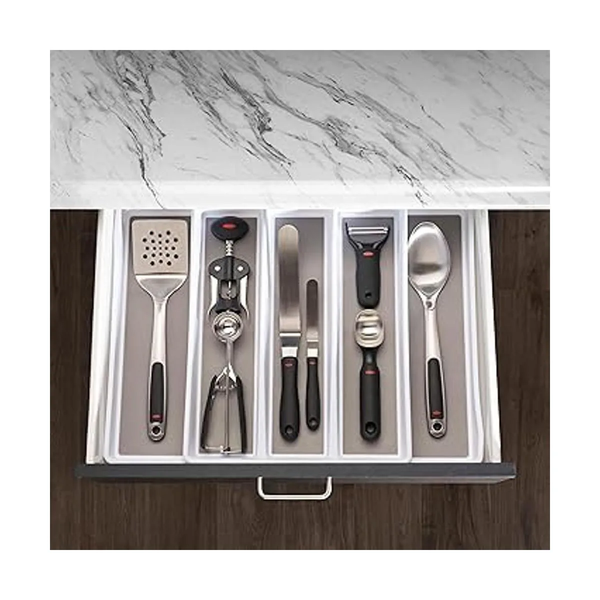 Organizador expandible para cajones de utensilios de cocina, 5 compartimentos ajustables, almacenamiento multiusos para cocina, oficina, suministros de baño