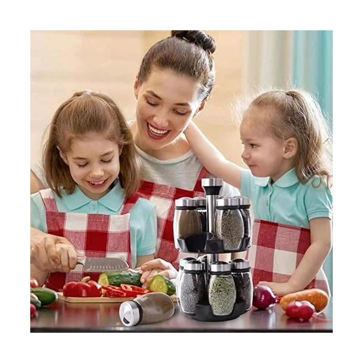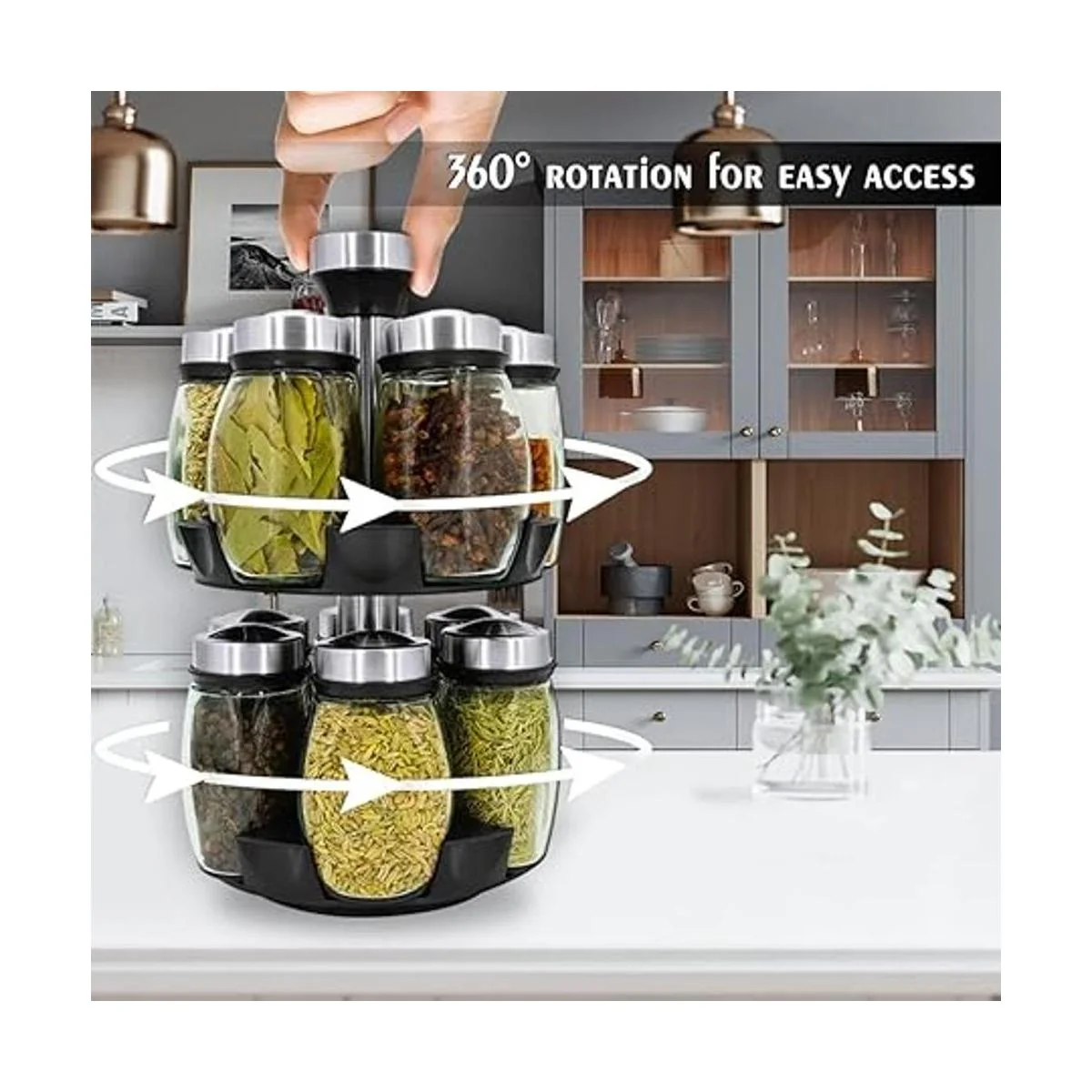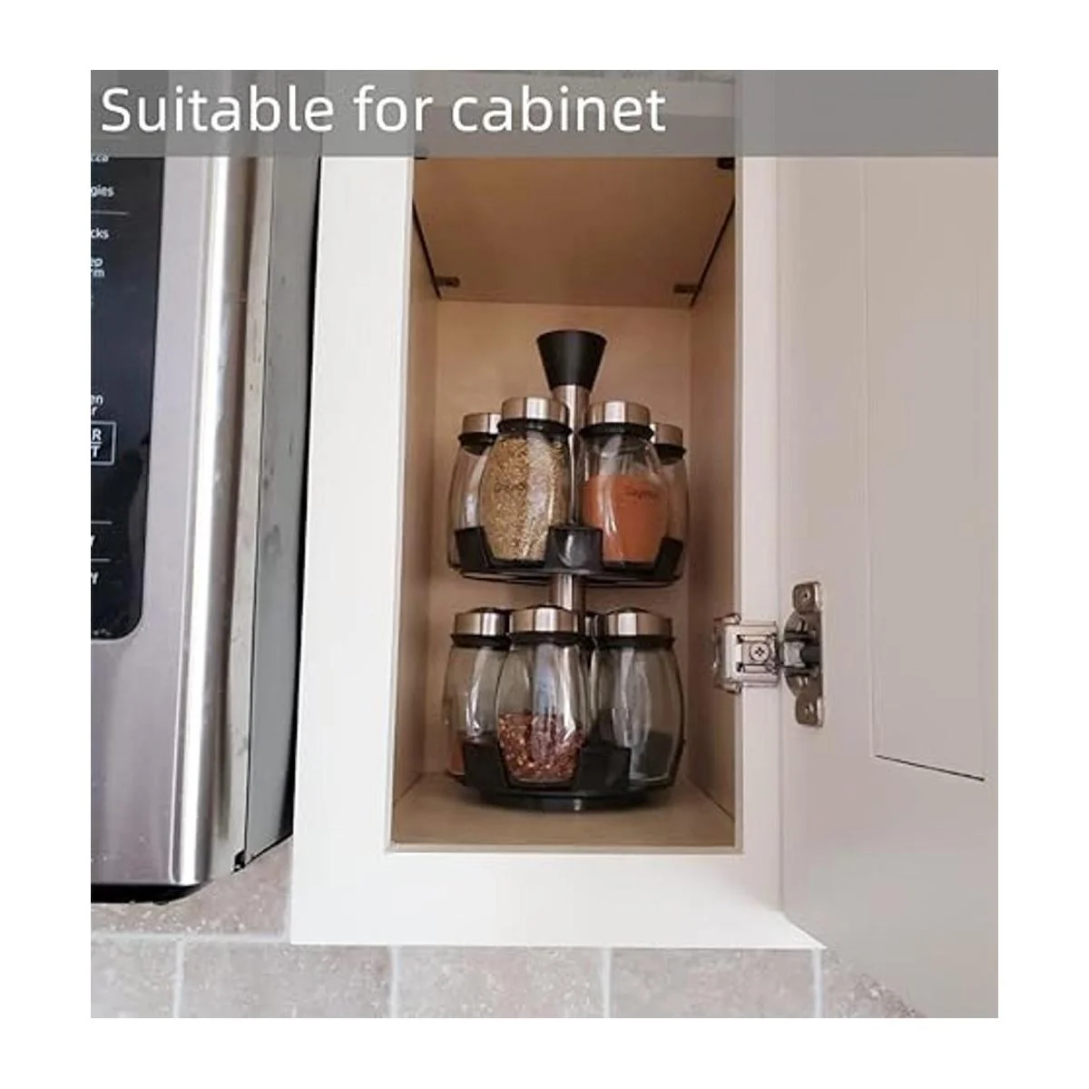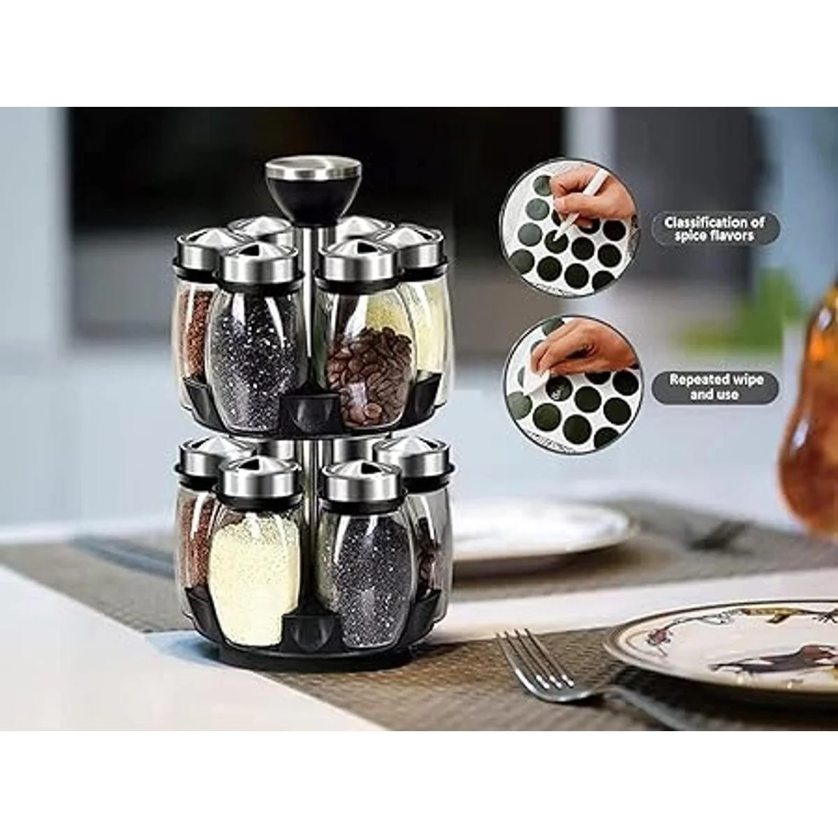 Rotación de 360 grados: es importante contar con un diseño giratorio, ahorra más espacio y es fácil de usar mientras cocinas y mantiene las especias frescas. Perfectamente proporcionado para caber en espacios estrechos. Consejos: nuestro especiero no contiene especias.