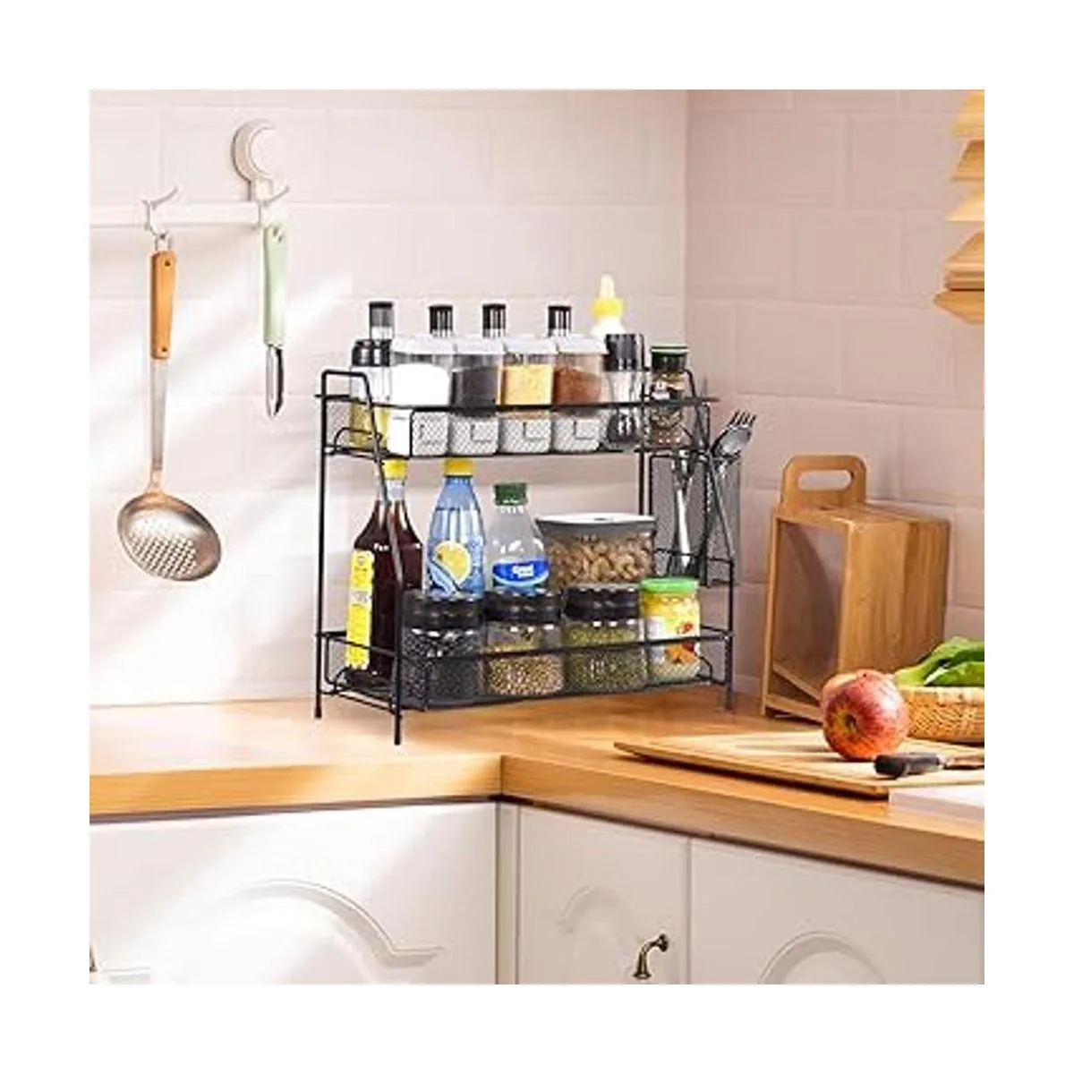 Antideslizante y antioxidante: está hecho de aleación de acero, impermeable y resistente al óxido. La parte inferior del estante de almacenamiento está equipada con patas de goma antideslizantes colocadas en cualquier mesa sin deslizarse.
