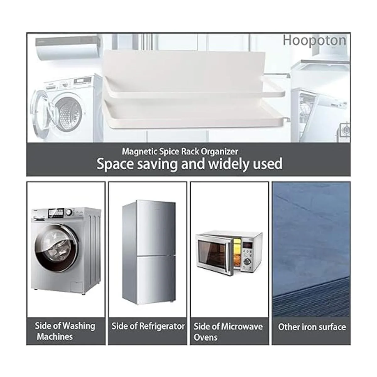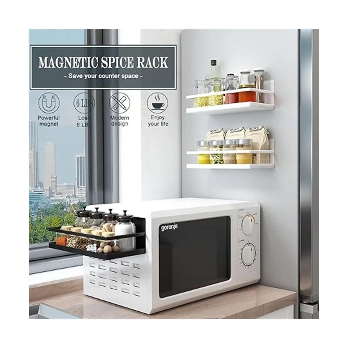 Organizador magnético para especias de un solo nivel para refrigerador, estante de almacenamiento de especias, fácil de instalar, el lado del refrigerador puede contener especias, tarro de aceite de oliva blanco, paquete de 2