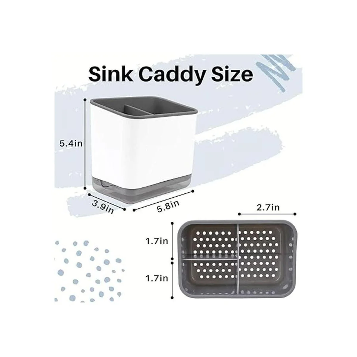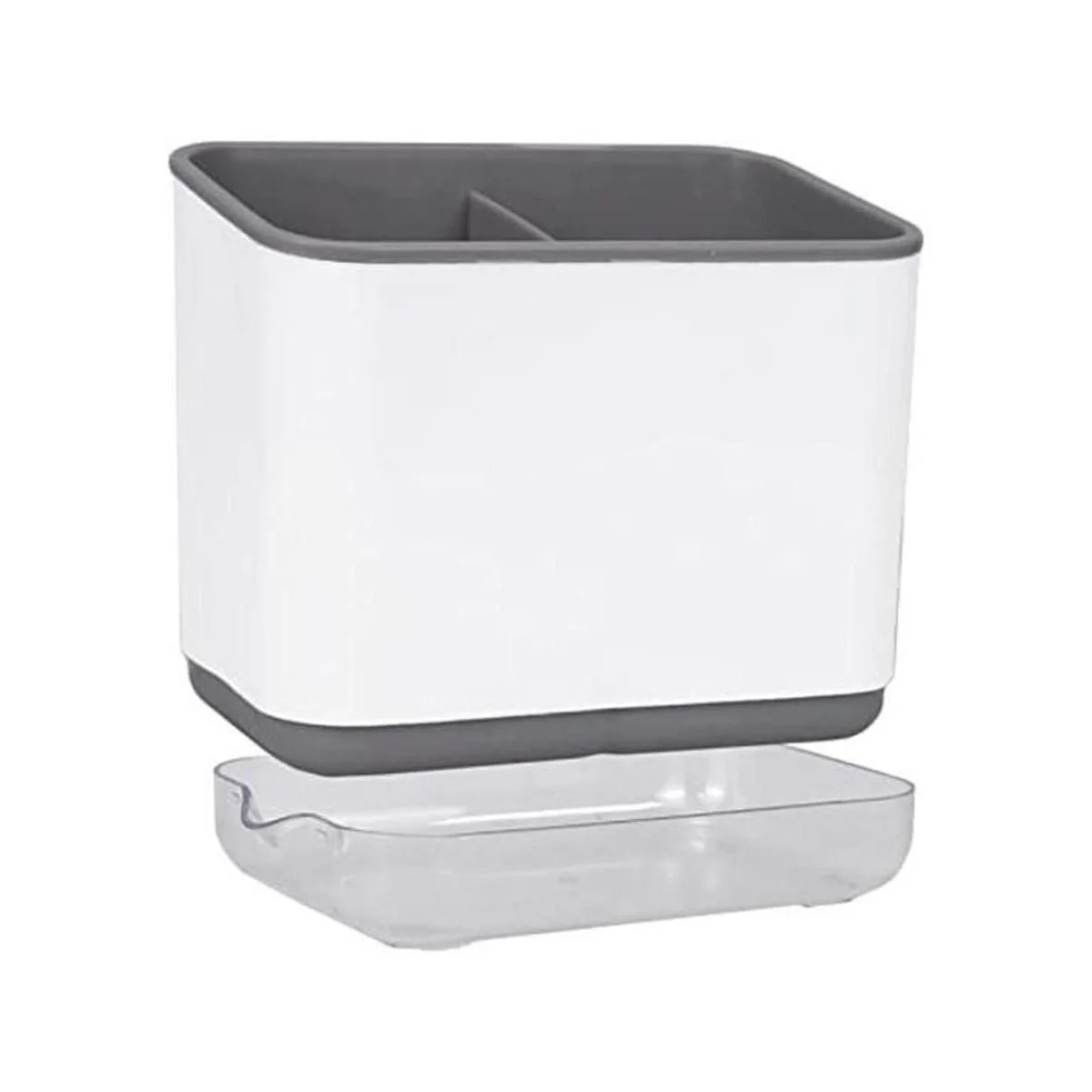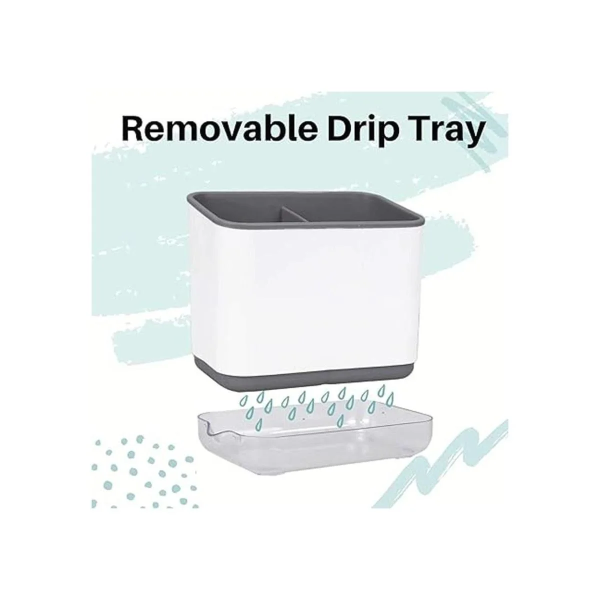 Organizador para encimera de fregadero, soporte de esponja para platos, esponja para fregadero de cocina y soporte para cepillo, organizador de plástico con bandeja de drenaje, color blanco