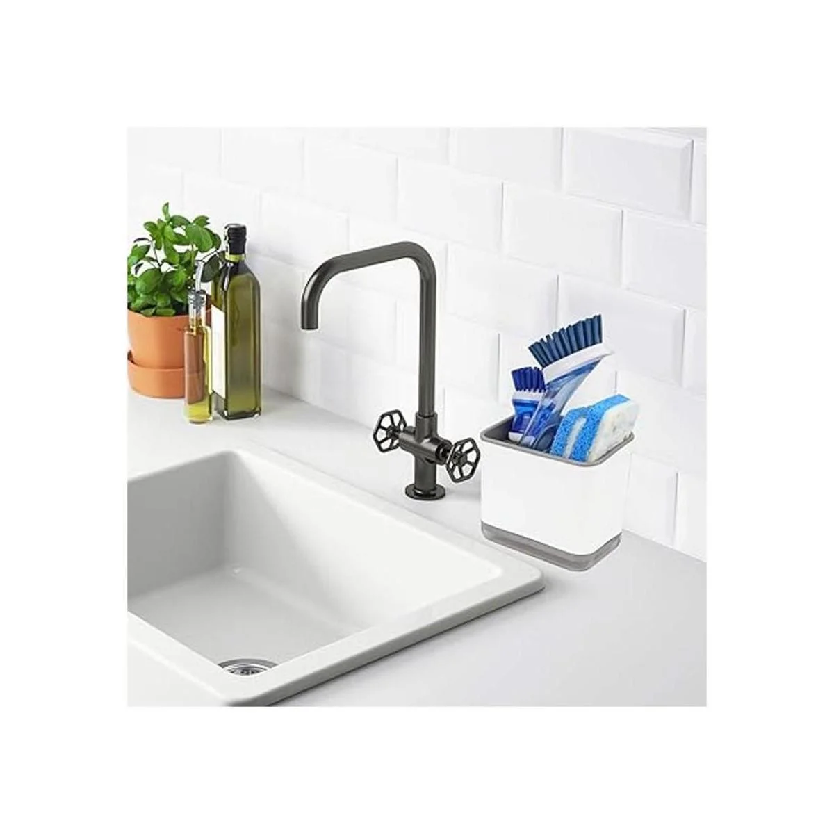 Diseño compacto y práctico: el soporte de esponja organizador para fregadero de cocina hace que el lavado de platos sea fácil manteniendo todas las herramientas de lavado de platos a tu alcance sin ocupar demasiado valioso espacio en la encimera, el elegante color de este soporte para cepillo de botellas hace que sea igualmente bueno para sostener cepillos de dientes y pasta de dientes en el baño.