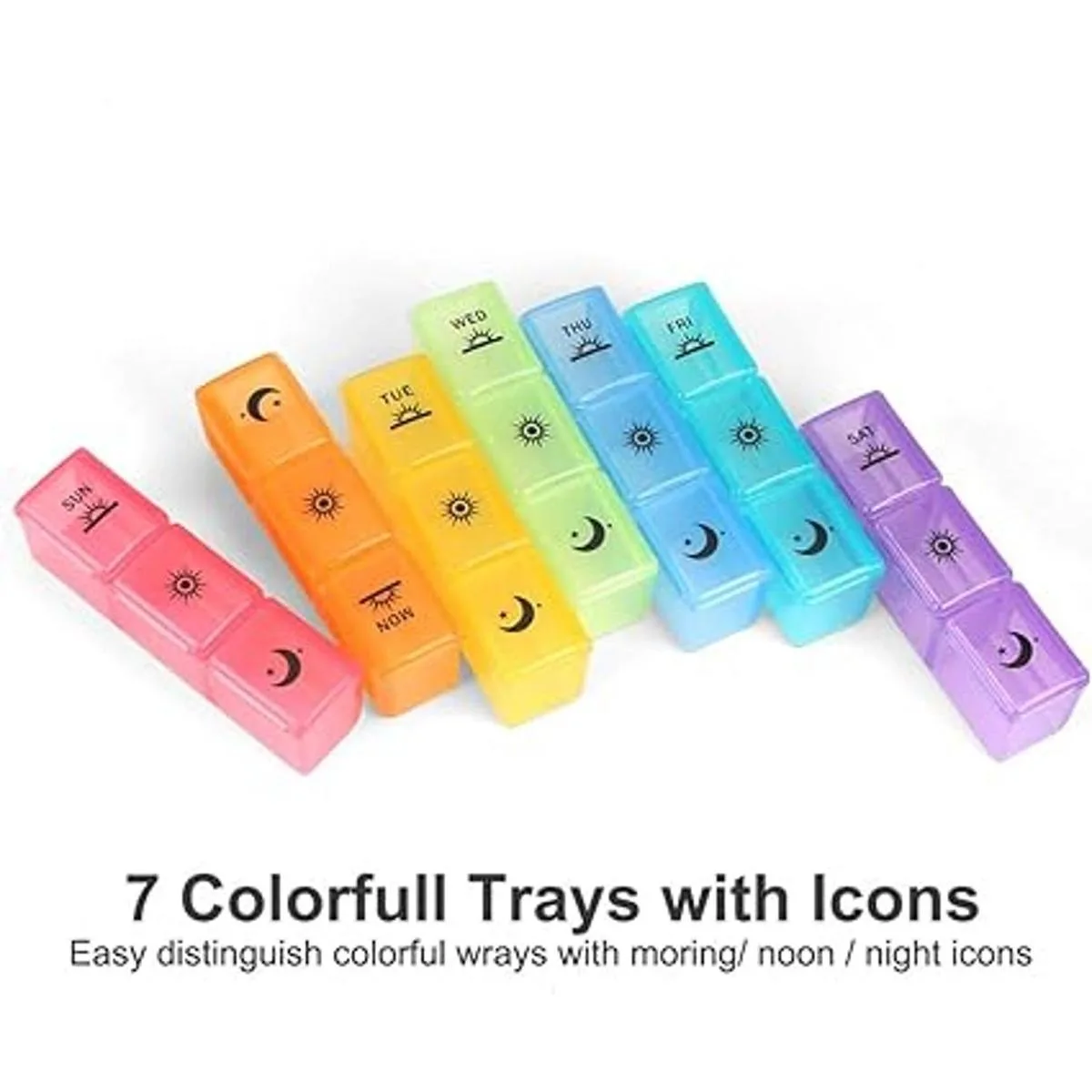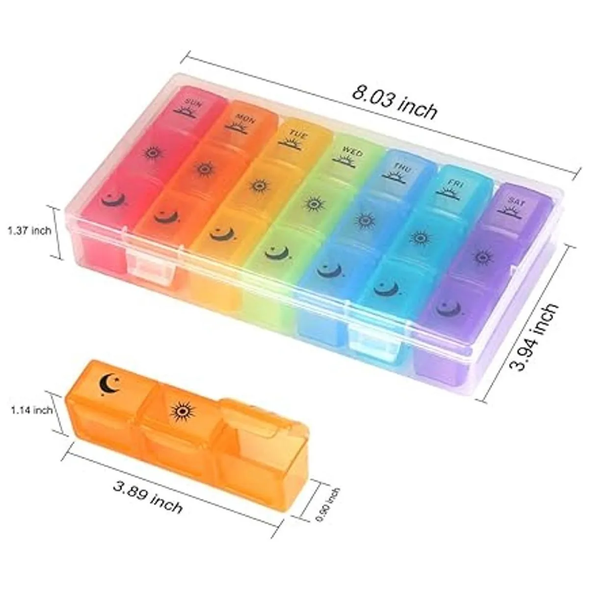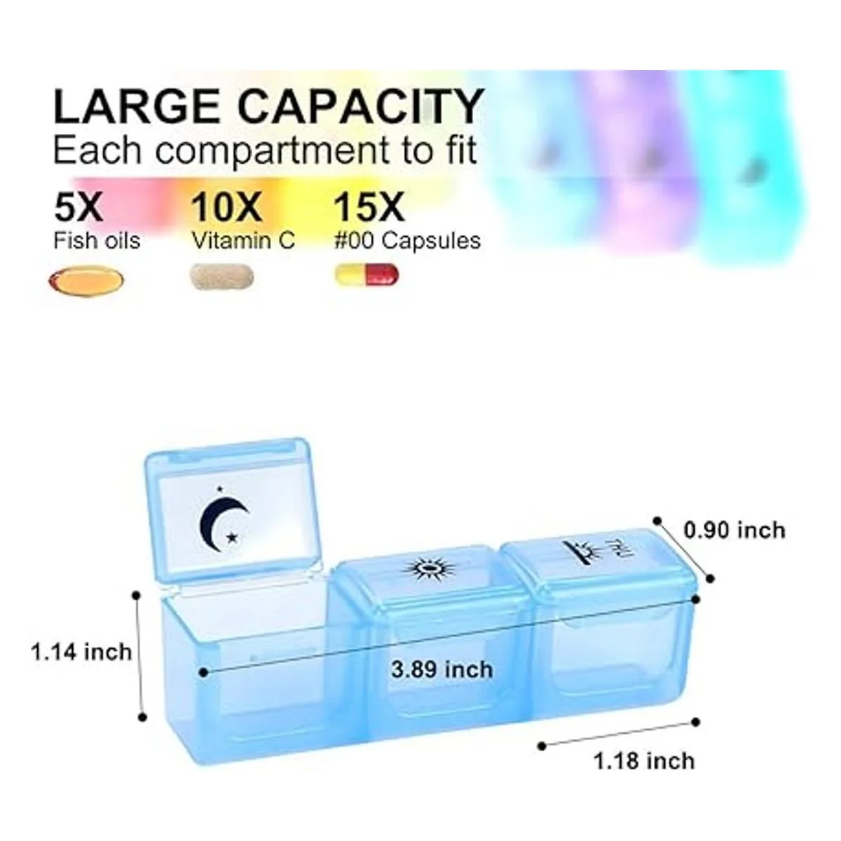 Organizador semanal de píldoras, 3 veces al día, 7 días, caja de píldoras, compartimentos grandes, a prueba de humedad, recordatorio de medicamentos, contenedor de viaje portátil para vitaminas y compartimentos de aceite de pescado, suplementos
