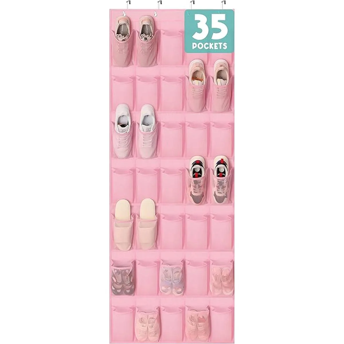 Organizadores de zapatos para colocar sobre la puerta, color rosa, con 35 bolsillos de malla duraderos, organizador de zapatos para colgar en la habitación de las niñas pequeñas, habitación de bebé, habitación de manualidades, dormitorio, despensa, baño, armario